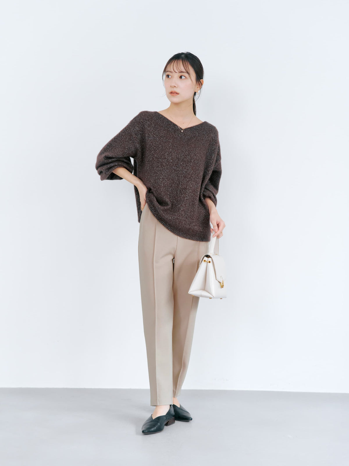 パンツやタイトスカートと合わせればキレイめなオフィススタイルに。シンプルながらもふんわり素材が女性らしさをプラスしてくれます。