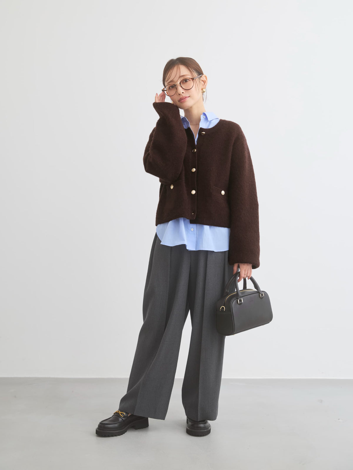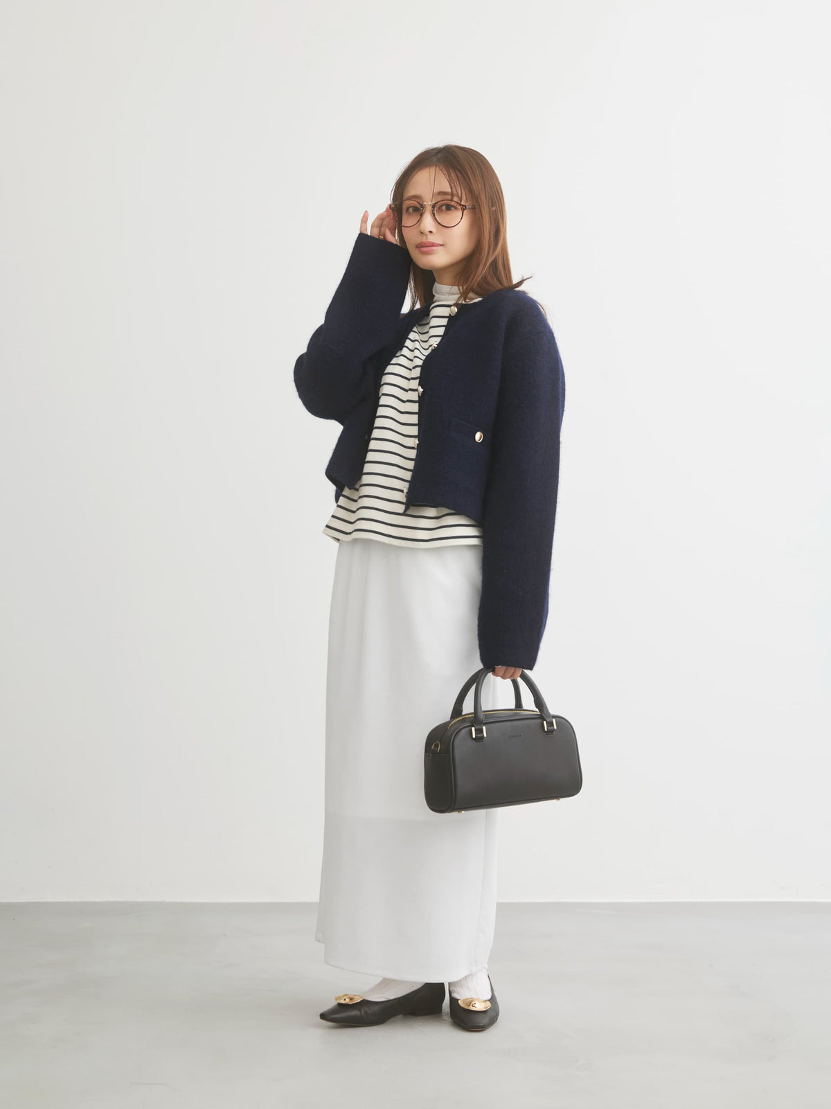 コンパクトな丈感はボリュームのあるスカートやワイドパンツとも相性良く、スタイルアップ効果があります。