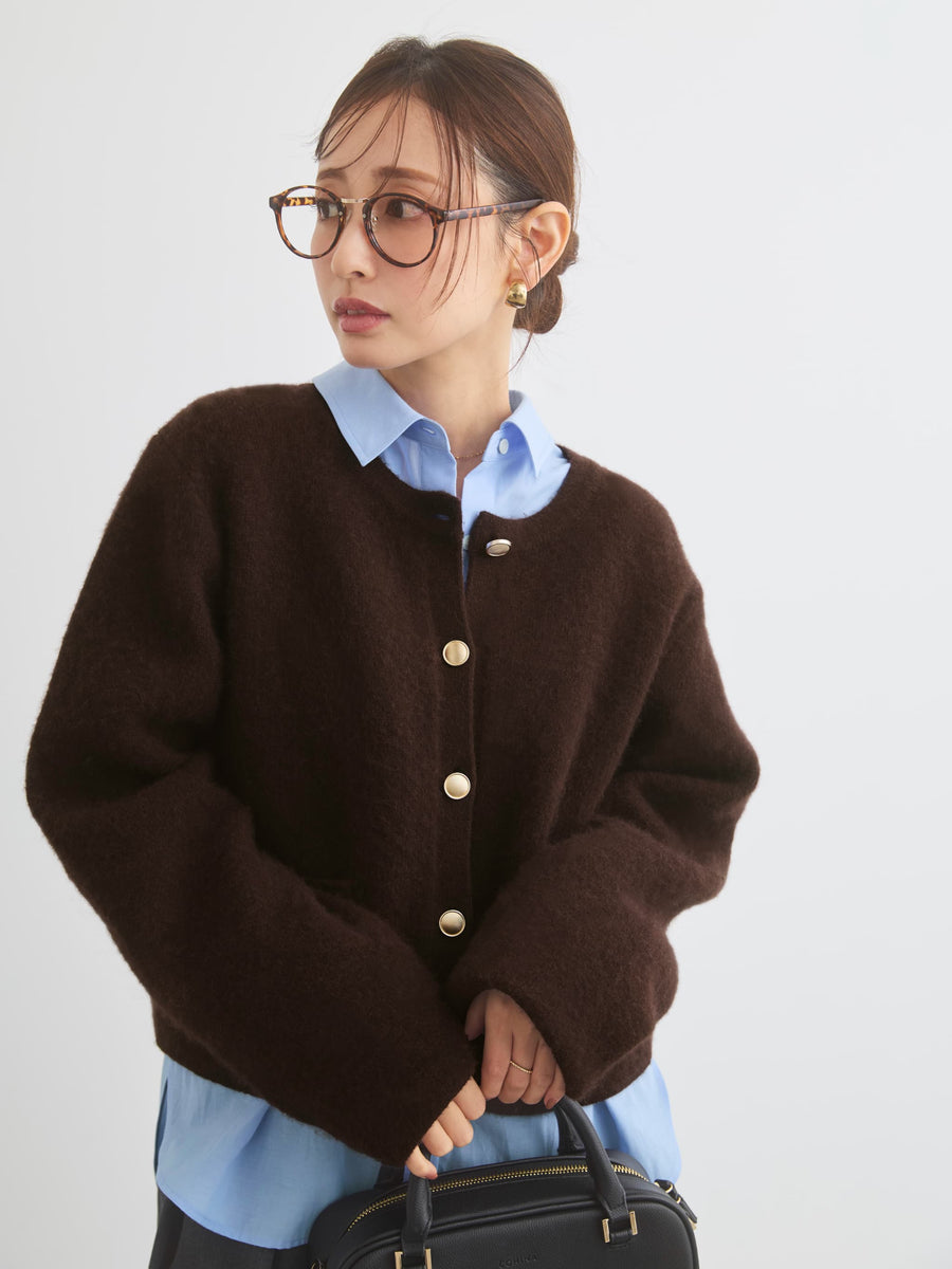 ふんわりとしたフォックスアンゴラの柔らかな風合いが魅力のニットジャケット。