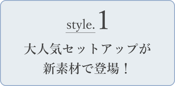 ダブルジャケットのセットアップでハンサムなスタイリングに。落ち感のある素材でスッキリと綺麗めな印象に仕上げてくれます♪