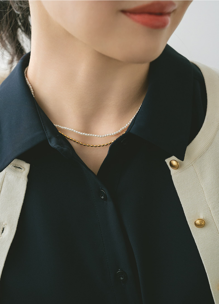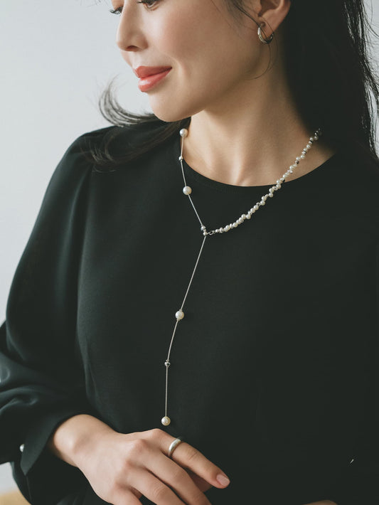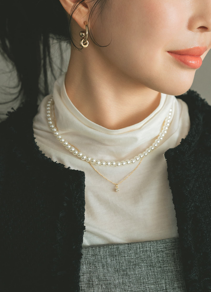 3WAYタイプはレイヤード着用はもちろん単品使いもでき、シーンやスタイリングに合わせて楽しめます。煌めくストーンと上品なパールの連なりが、首元を美しく華やかに演出。パールとチェーンを組み合わせたレイヤードネックレスは、華やかさがありながらもすっきりとしたバランスで、重ねるだけでコーディネートのアクセントになり、華やぎが生まれます。