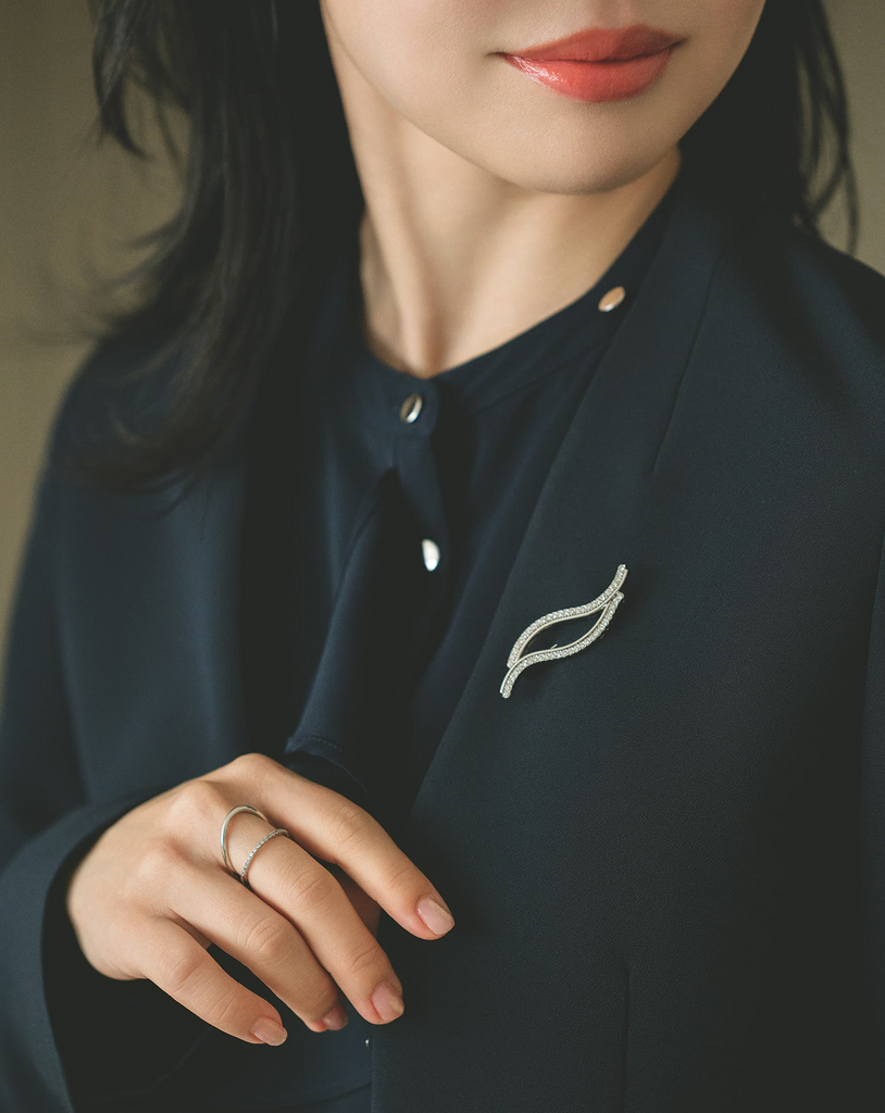 長さ調整ができるトレンドのラリエットネックレスは、スタイルに合わせて表情の変化を楽しめる一本。パールとメタルビーズの連なりが動くたびに揺れ、装いに奥行きをプラス。ラインストーンが煌めくブローチは、小ぶりながらも上品な輝きで、ジャケットやワンピースに華やかさを添えます。お好みに合わせて選べるシルバーとゴールドの2色展開です。