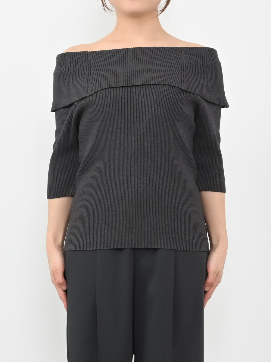 トレンドのオフショルダーのリブニットが登場です。