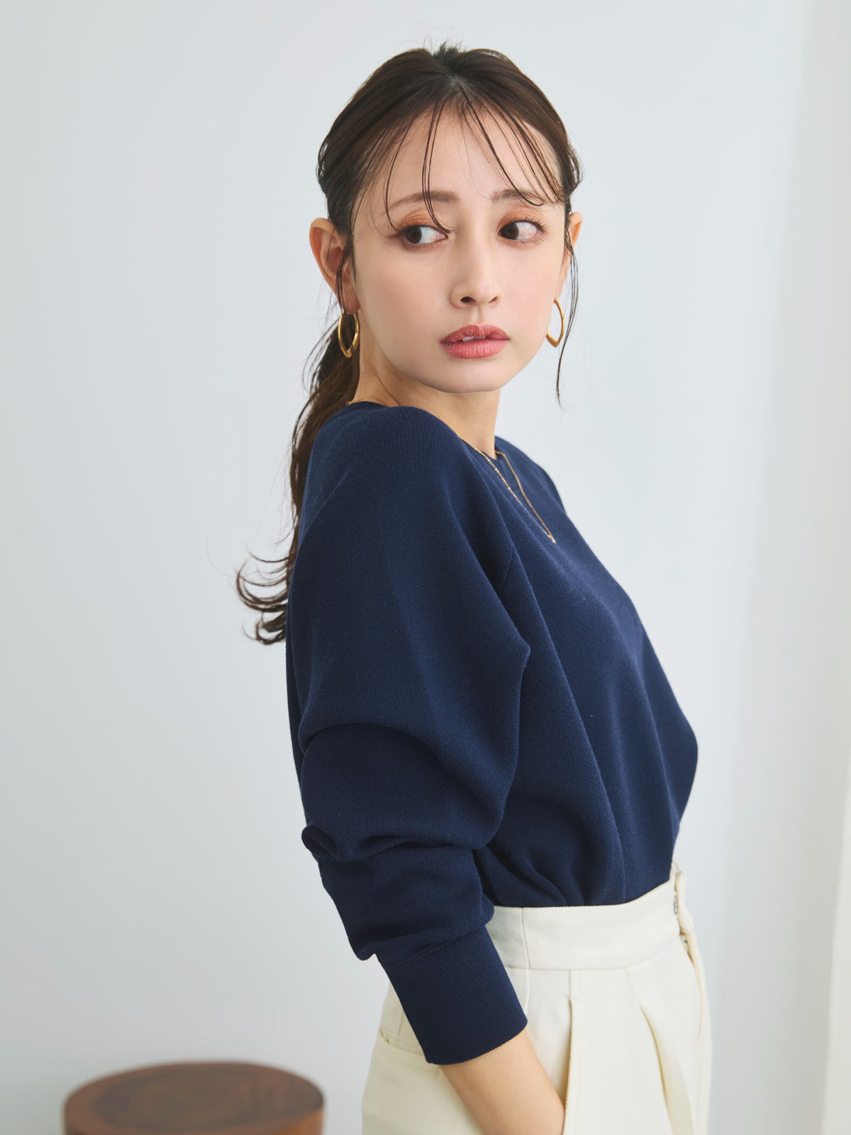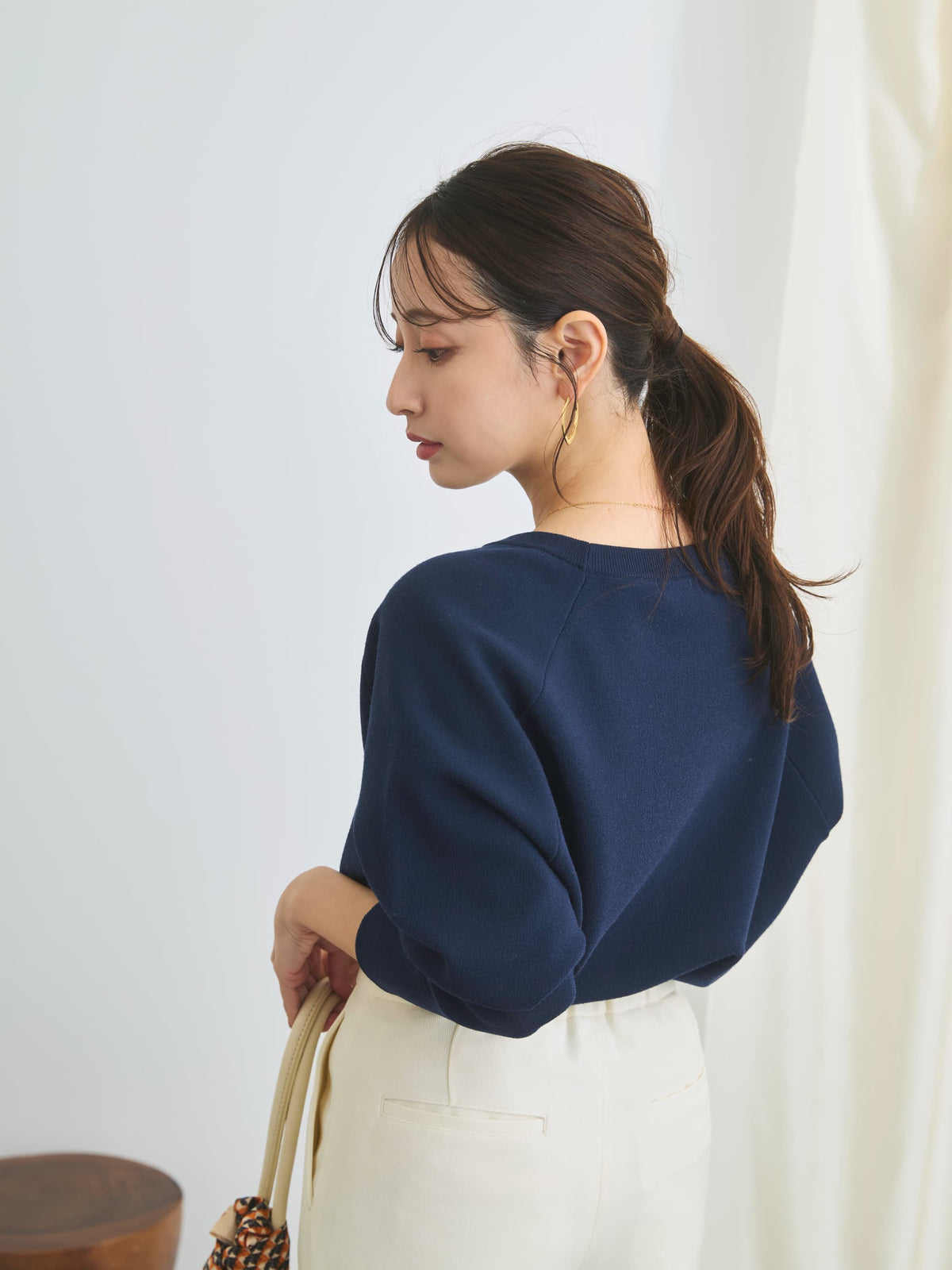 ベーシックなニットトップスは、スカートからパンツまでどんなボトムスとも好相性。スウェットよりもカジュアルになり過ぎないため、幅広いシーンで着回していただけます。
