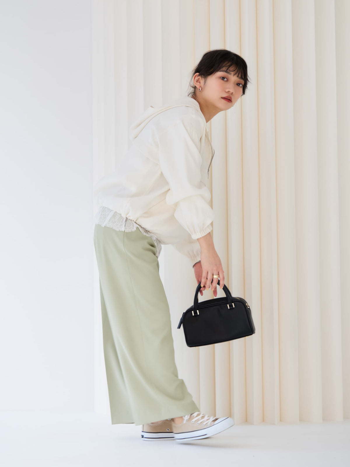 レイヤードすることでトレンド感のある着こなしを楽しめます。ニットやスウェットのインナーに着用すると裾のレースがアクセントになり女性らしさを引き立てます。