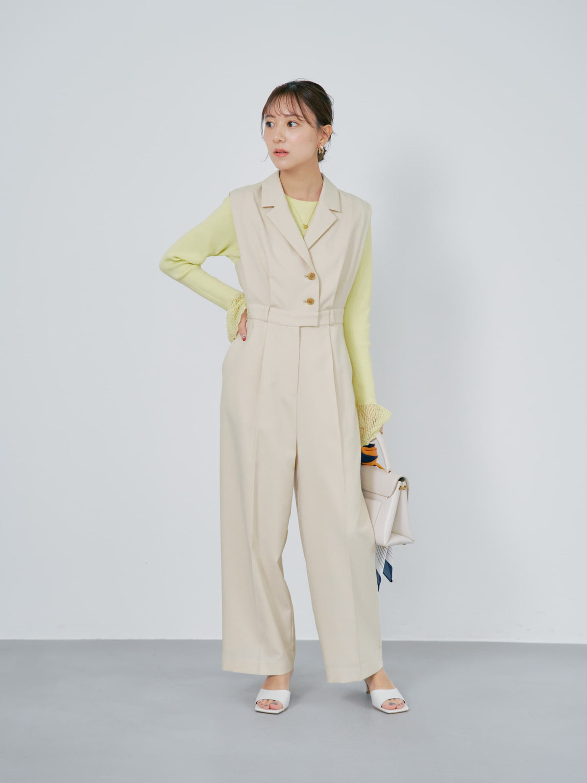 品よく縦のラインを強調するシルエットで、ボディラインをすっきりと華奢に見せてくれます。
