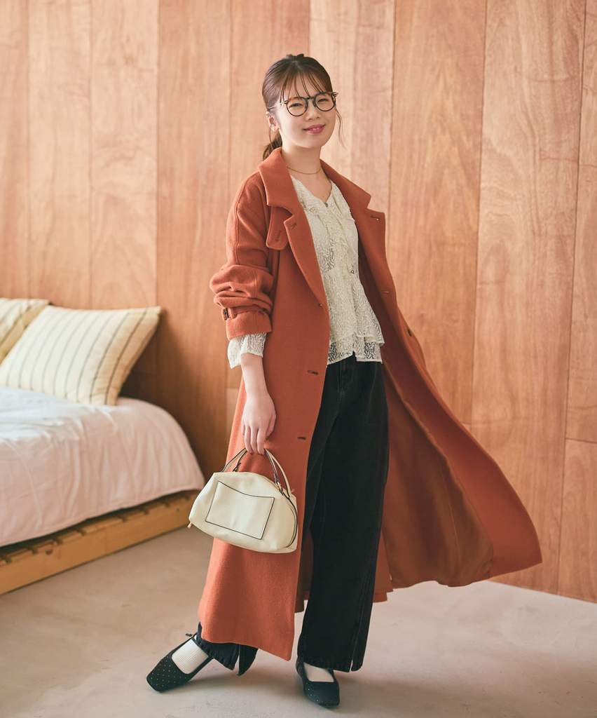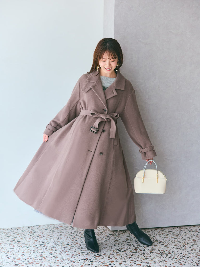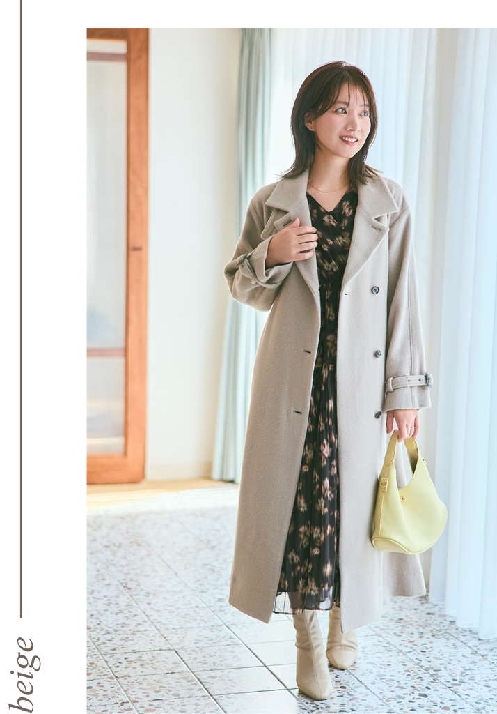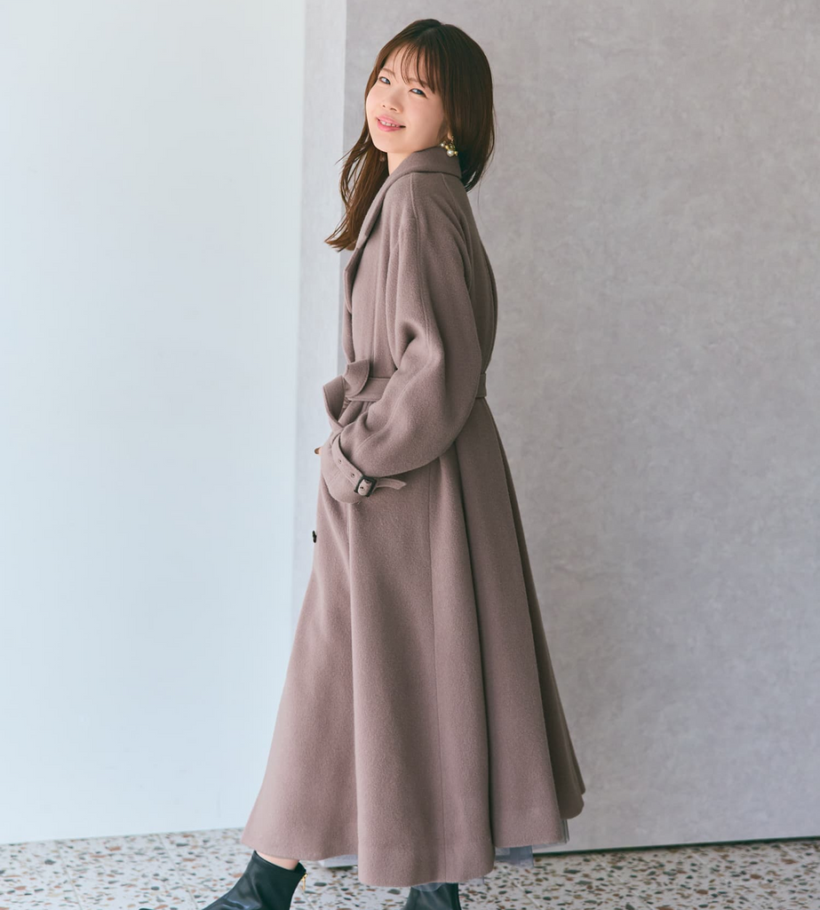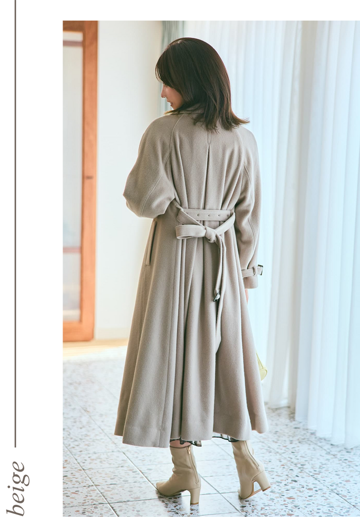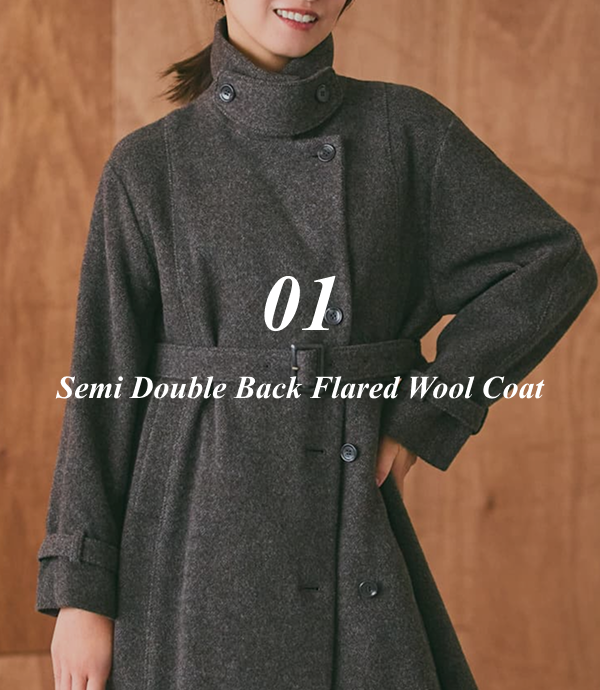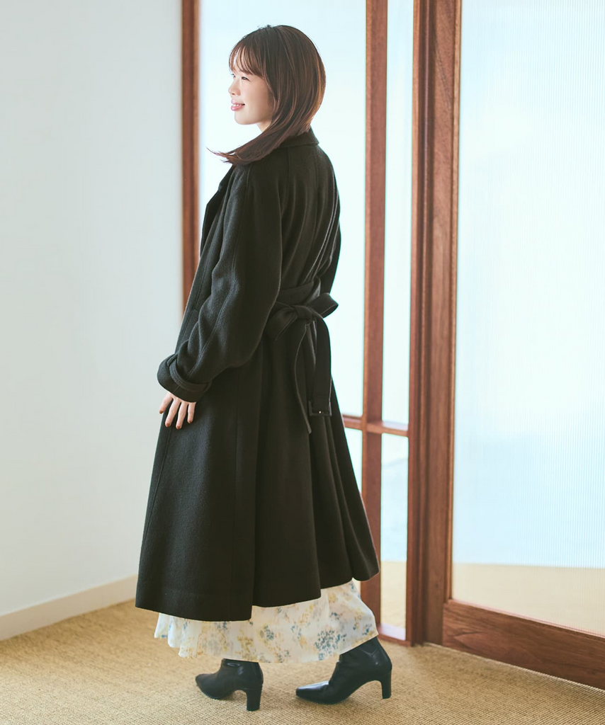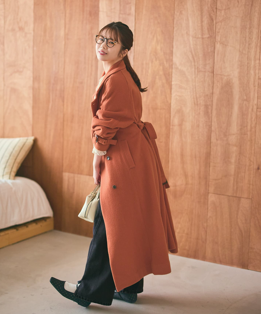 COHINAロングセラーのバックフレアウールコートは小柄さんのために計算されたベストバランスが最大の魅力。動くたびにドラマティックな揺れを生む分量感。 それでいて、軽やかさと暖かさも兼ね備えた素材で仕立てました。前を閉じるとアシンメトリーなフロントデザインで今年は少しのかっこよさもプラス。また、カラー展開は6色と豊富にご用意しました。定番のベージュ系はお仕事と合わせやすい色味です。一着で主役級のオレンジはカジュアルにデニム合わせもおすすめ。