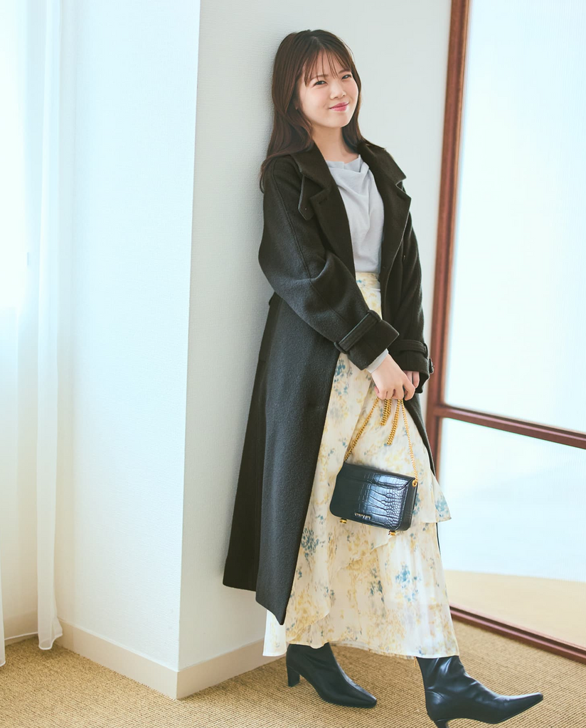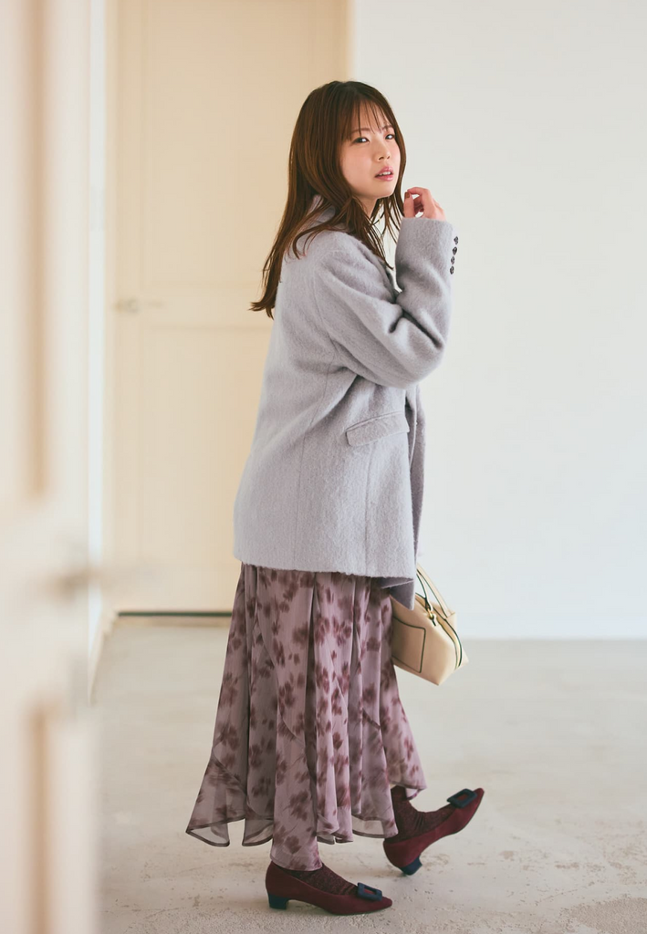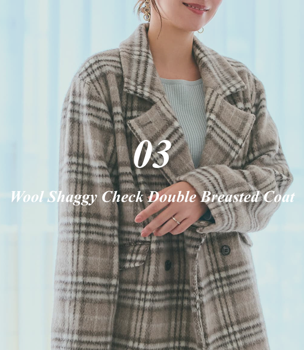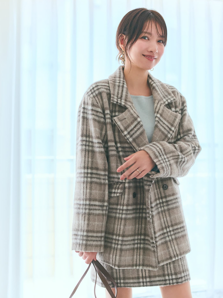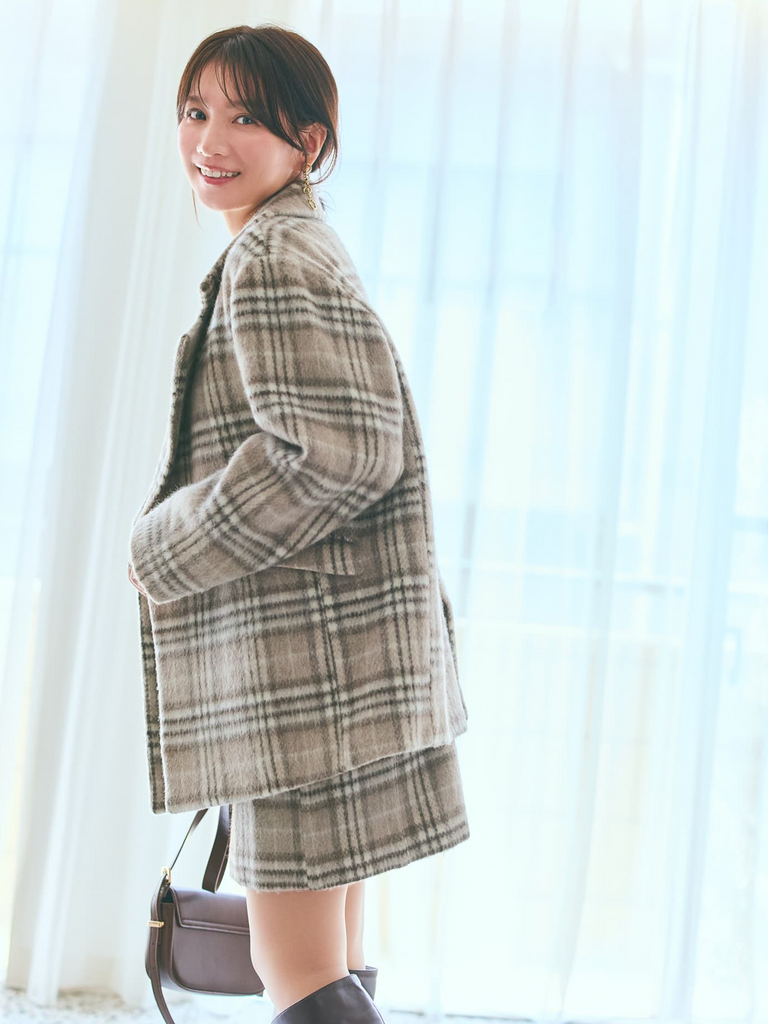 ふわふわと高級感があるウールシャギーで、COHINAオリジナルのチェック柄を作成。小柄さんに合わせて甘さと大人っぽさの両方を楽しめるようなチェックを一から組み上げたファブリックはこのアウターの最大の魅力の一つ。軽くてあたたかなスペシャル感たっぷりの素材が魅力的なアイテムです。同日発売の「ウールシャギーチェックミニスカート」とセットアップでの着用も可能。秋冬の着映えが叶うおすすめコーデです。