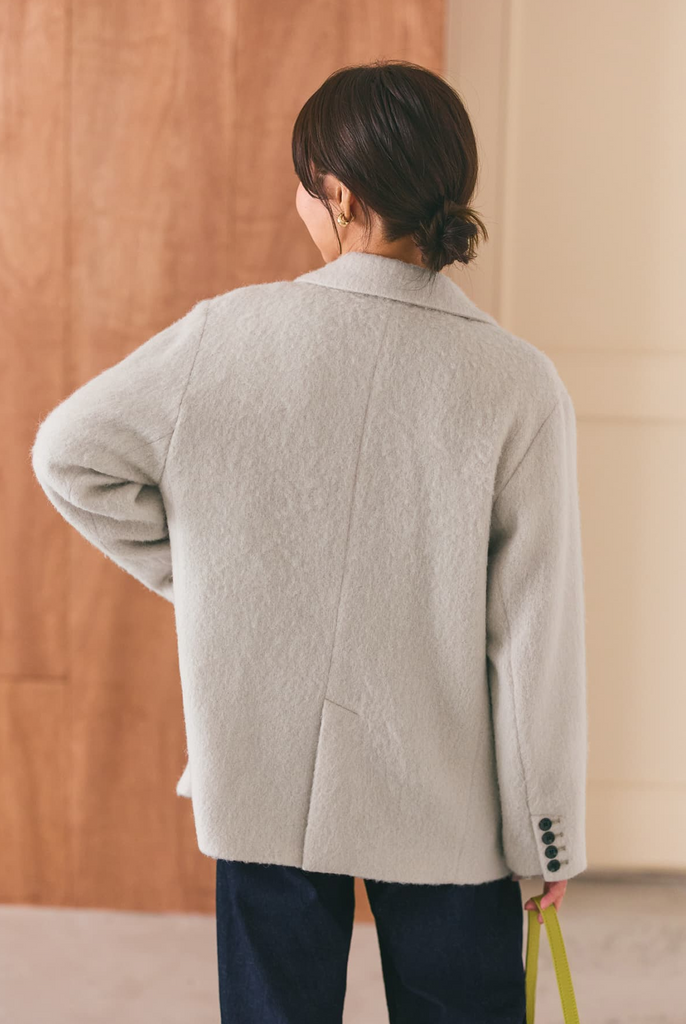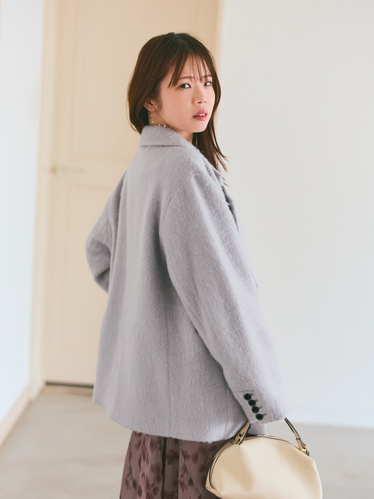 羽織っただけでやわらかな雰囲気をもたらしてくれるジャケットコート。ふわふわの毛並みでしっかりとした着映えを叶えます。こなれ感を出すためのゆとりを加えながら着膨れ感が出ない小柄さんにぴったりのサイズ感に仕上げました。襟元は2wayでジャケットとコートの良いとこどりで暖冬でもロングシーズン着用可能です。