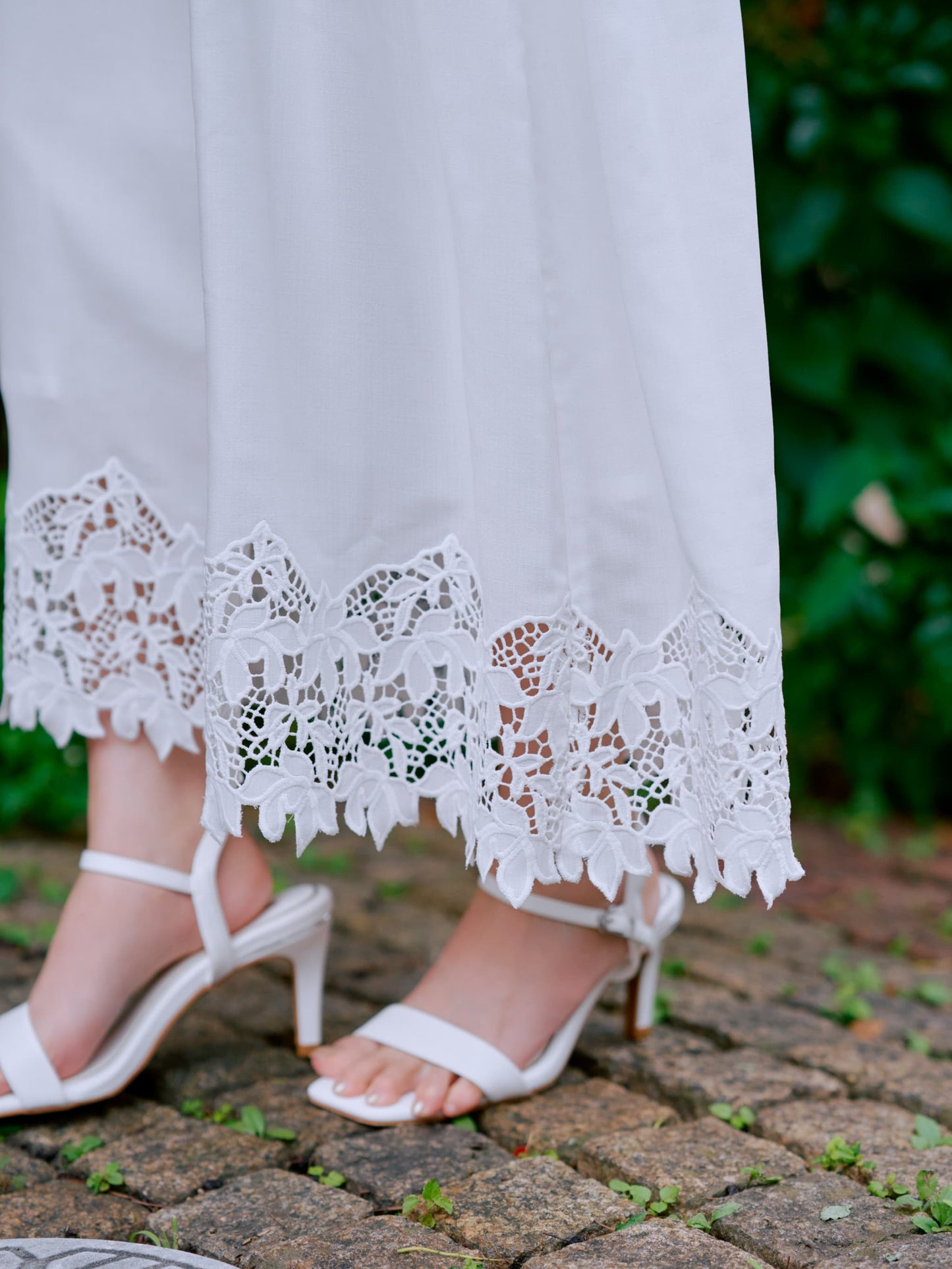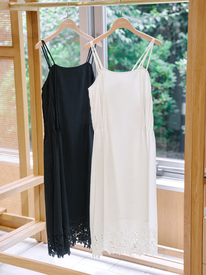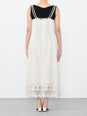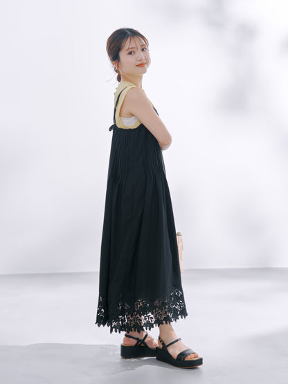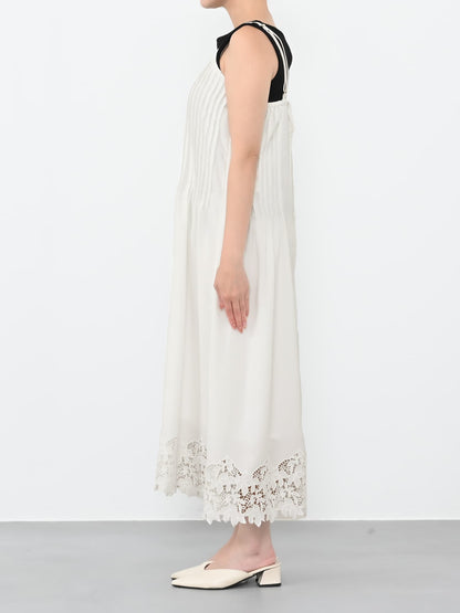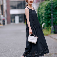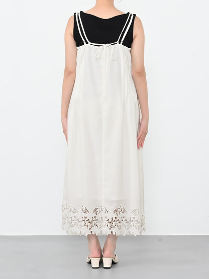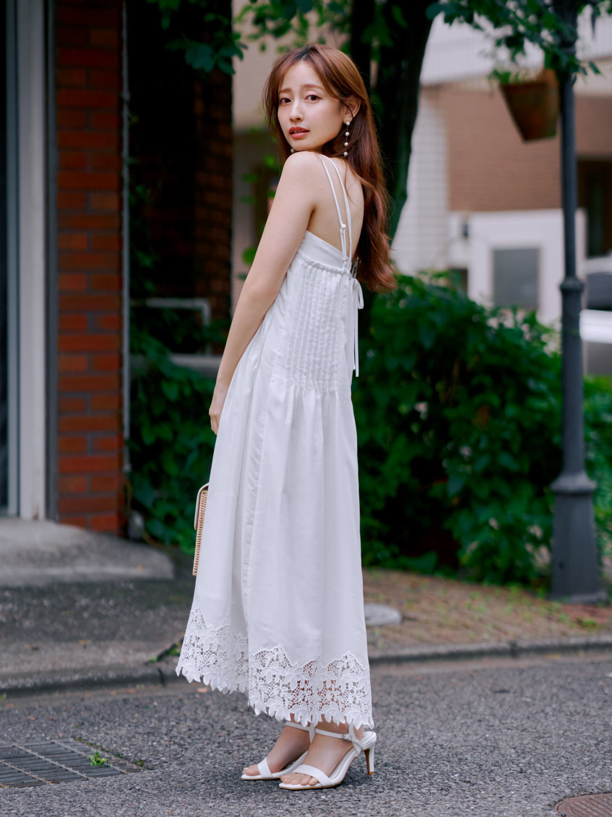 涼しげなカットワークが夏らしいワンピース。甘すぎず大人の方にも安心のデザインで、インナーを変えたりジャケットを羽織ったりコーディネートもしやすい1枚。