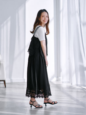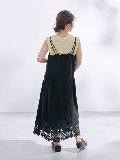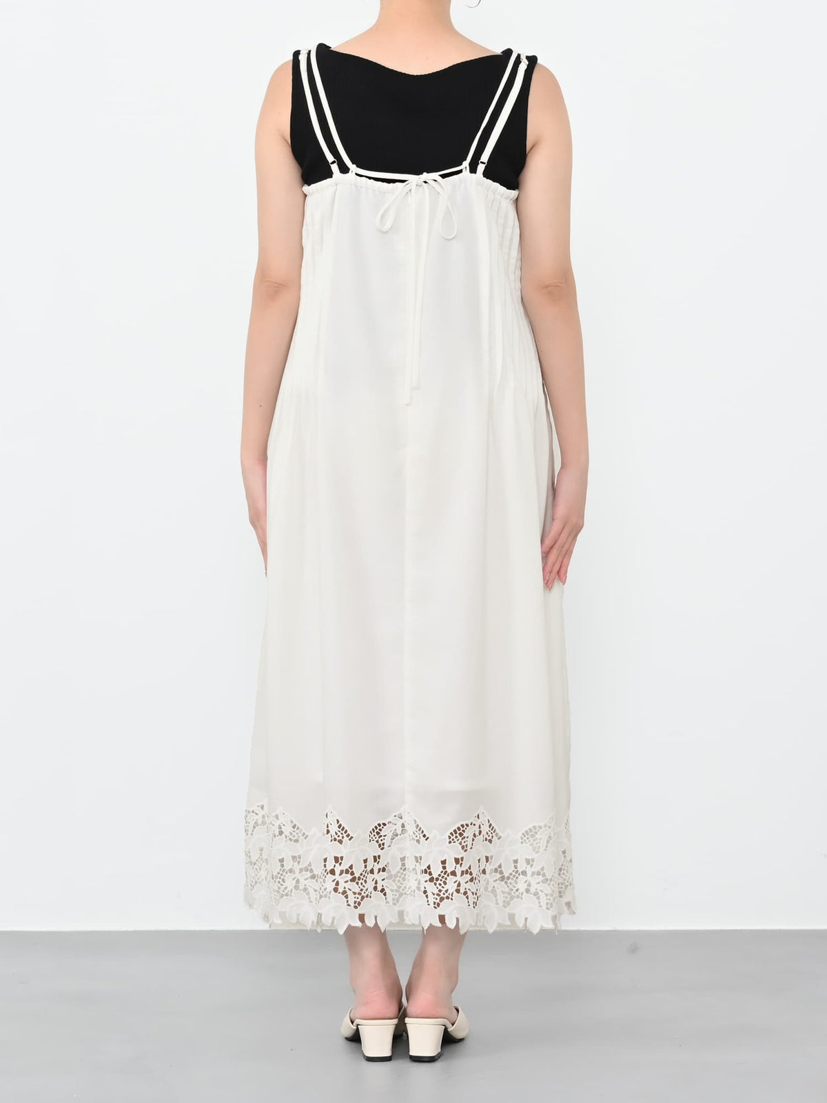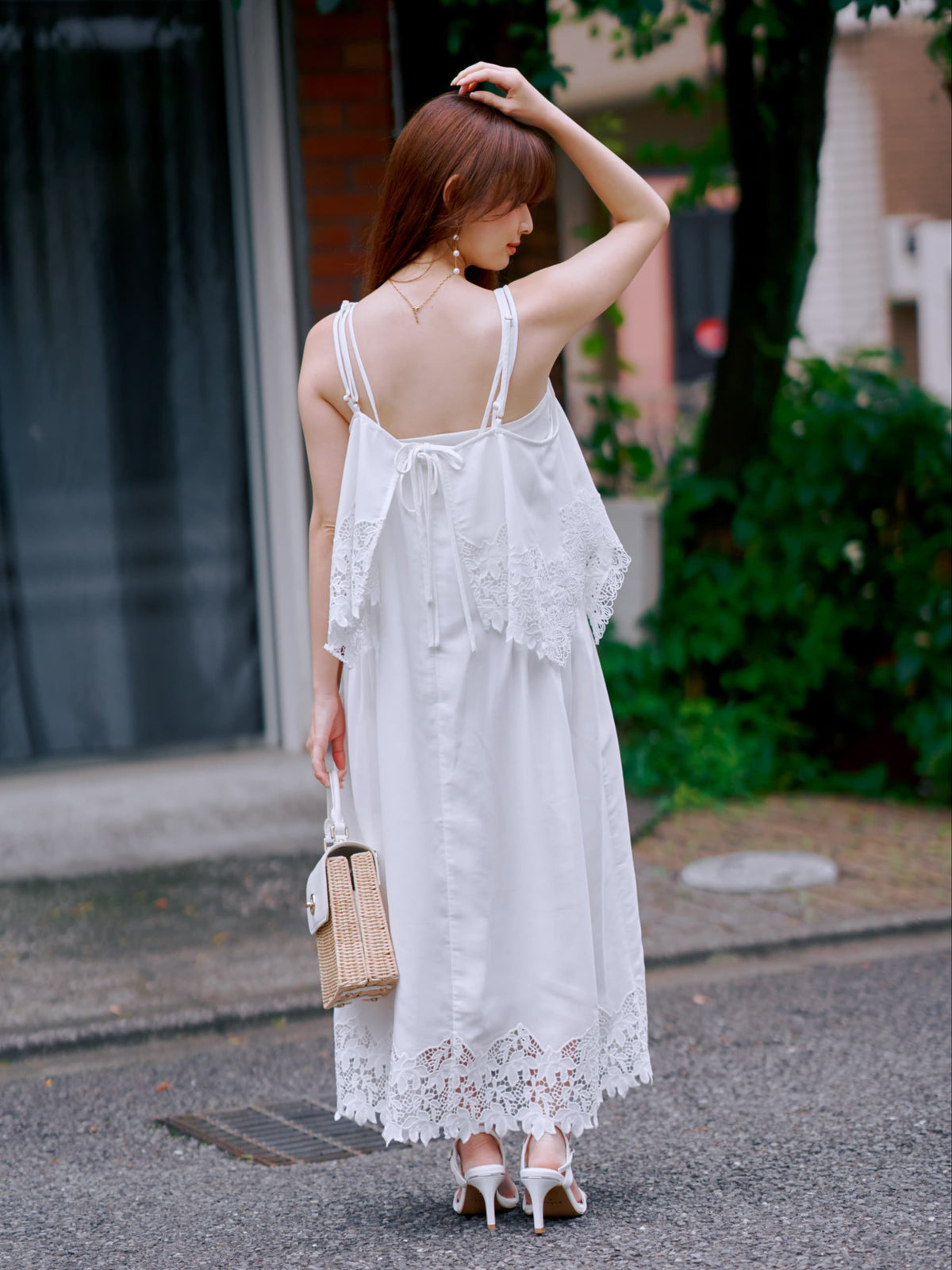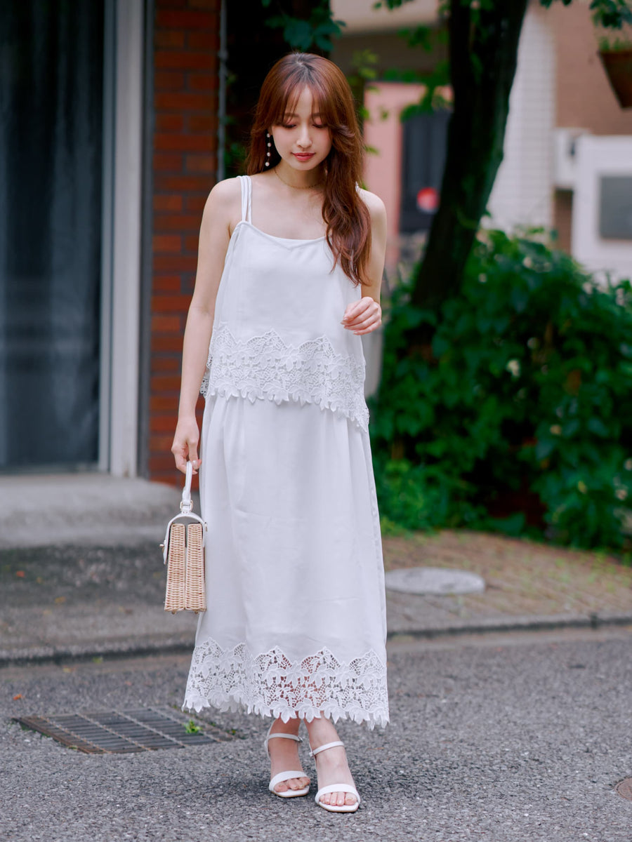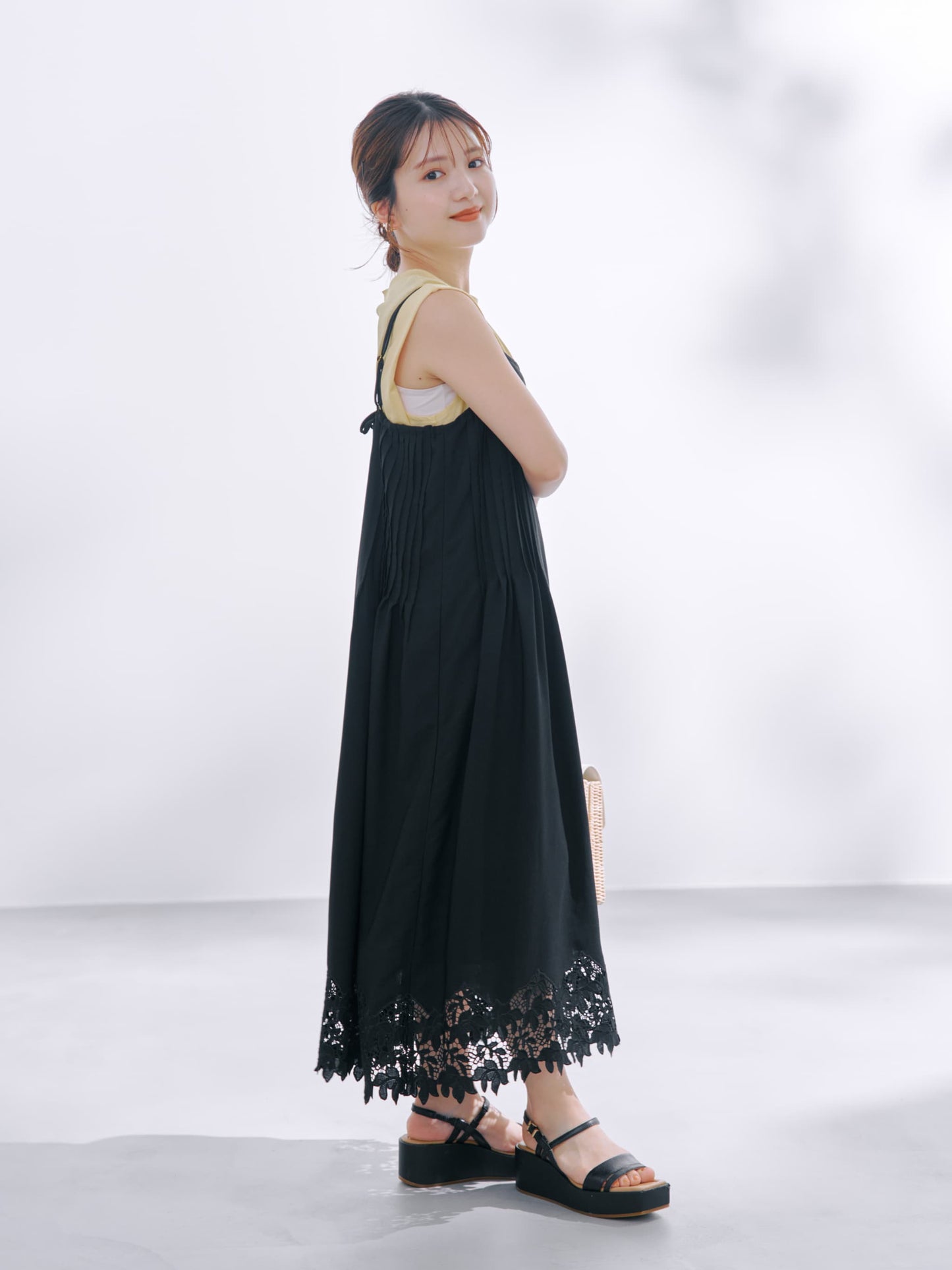 1枚でも華やかに着映えしてくれるワンピースです。合わせるアイテム次第で色んなシーンに活躍してくれます。シンプルなリブタンクトップやTシャツをレイヤードさせたりシアーシャツを羽織ってカジュアルフェミンなスタイルに。ジャケットやカーディガンを合わせて大人なシックスタイルにも◎