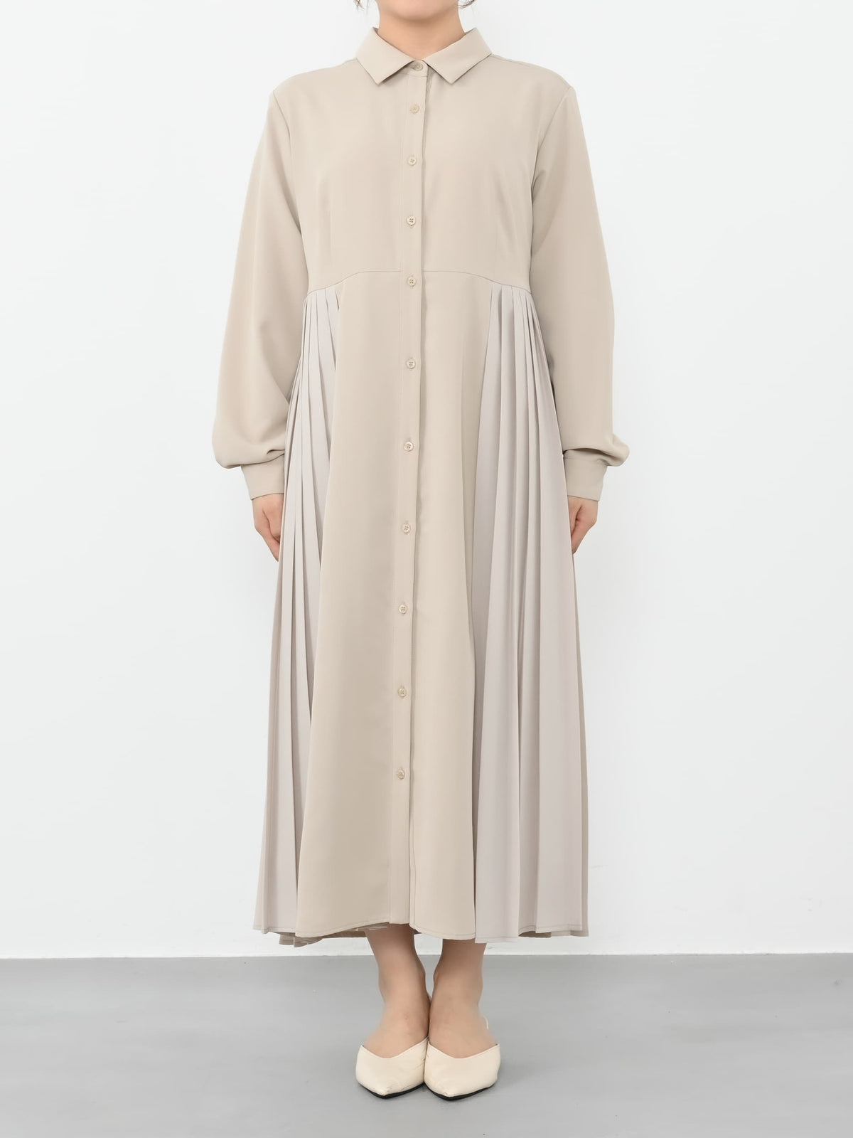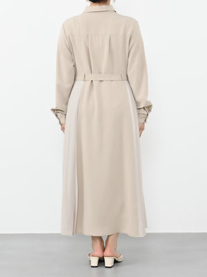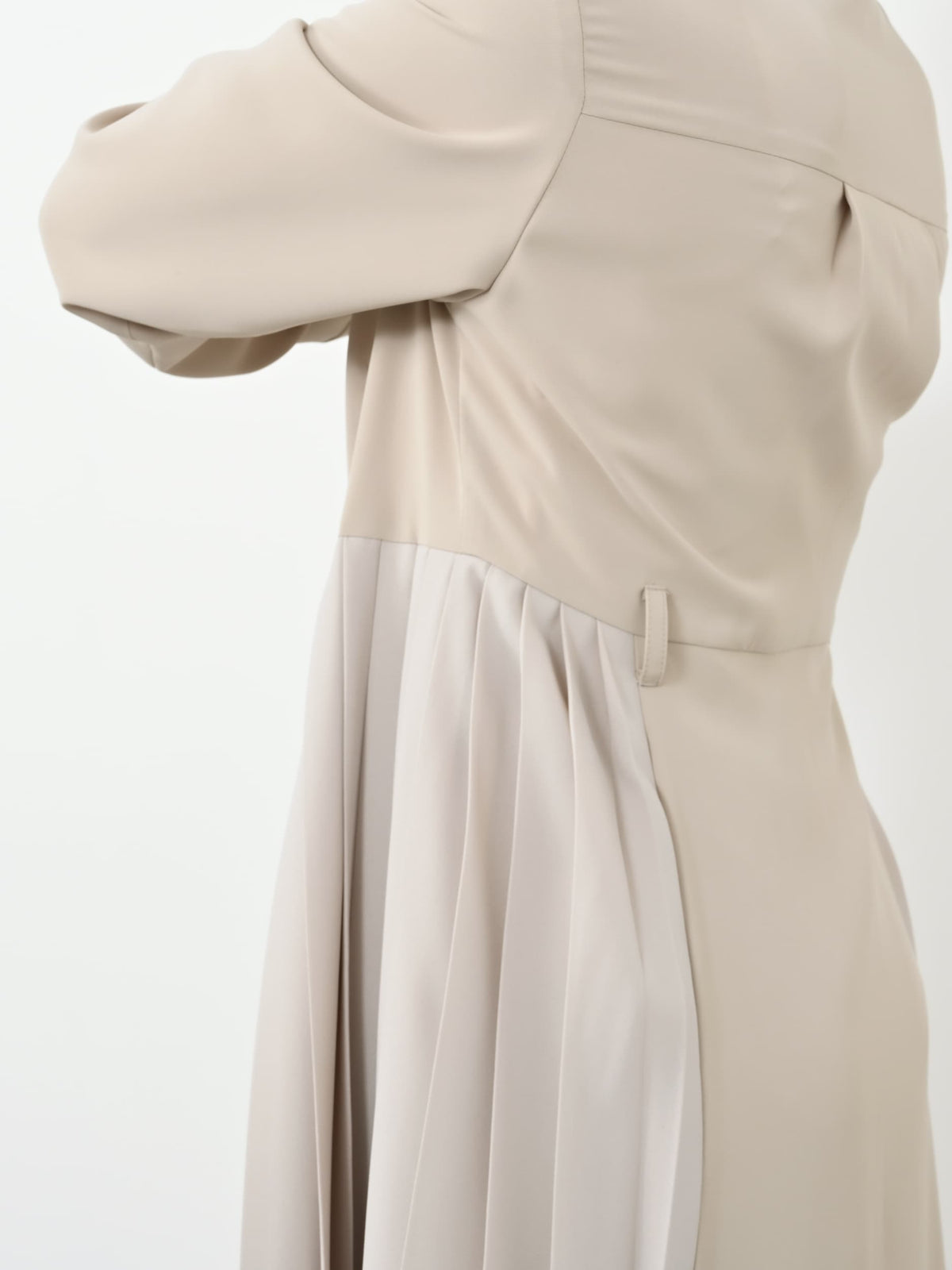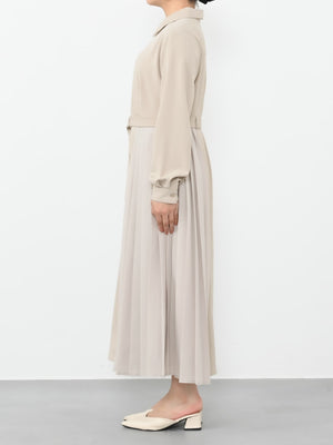プリーツの生地を異素材にすることで、プリーツの軽やかさとシルエットが際立ち、上品で華やかな雰囲気に。