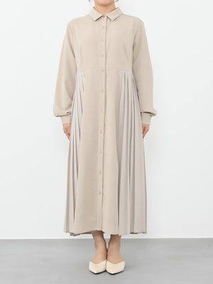 歩くたびに揺れるサイドの軽やかなプリーツが女性らしさを演出してくれるワンピース。