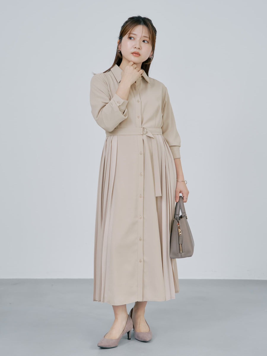 ベルト付きでメリハリのあるシルエットがポイントのワンピース。