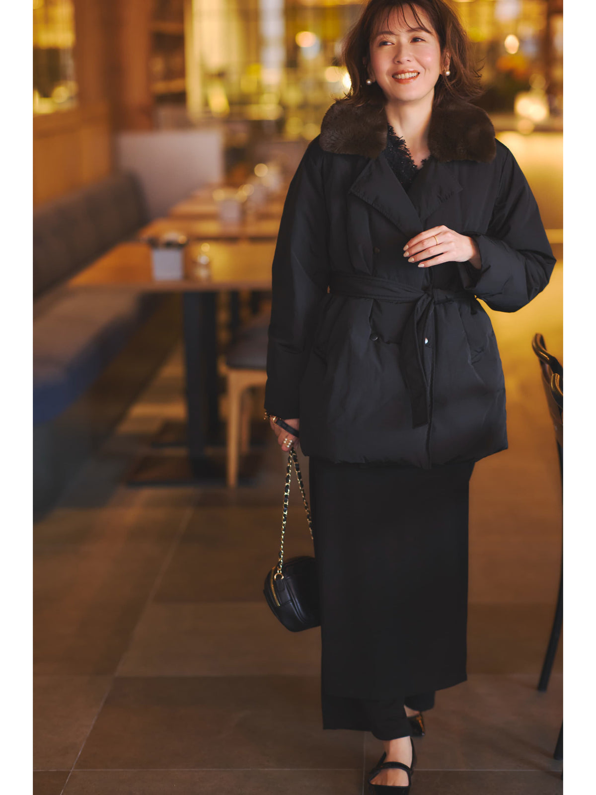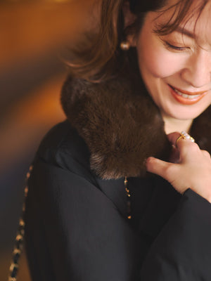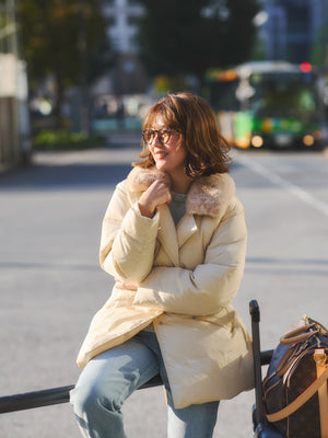 取り外しファーで華やか、軽くて暖かい大人のための冬アウター
