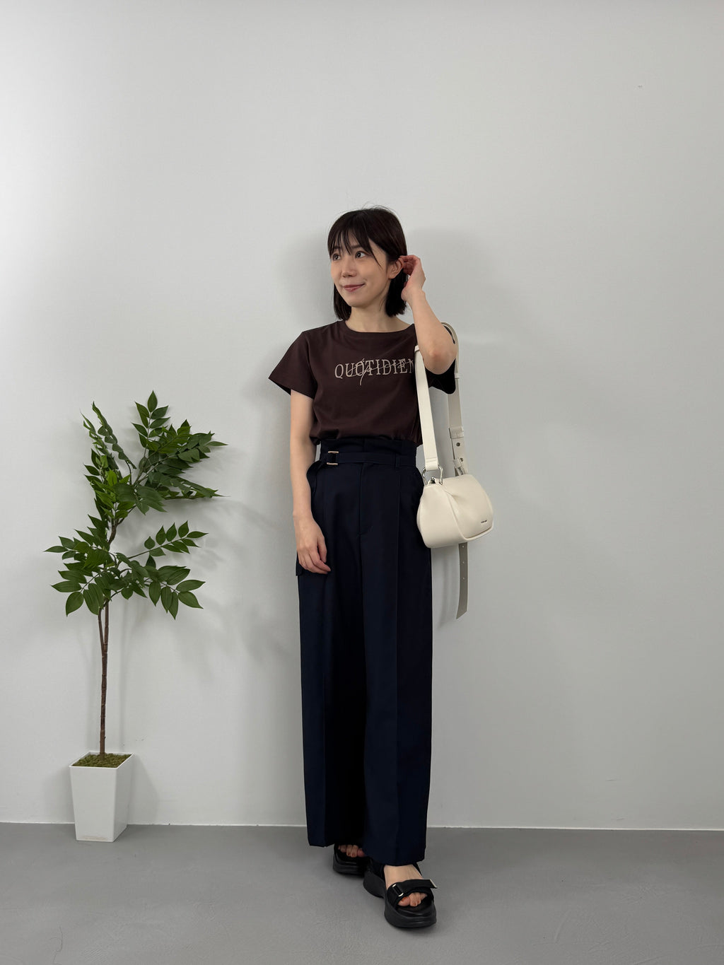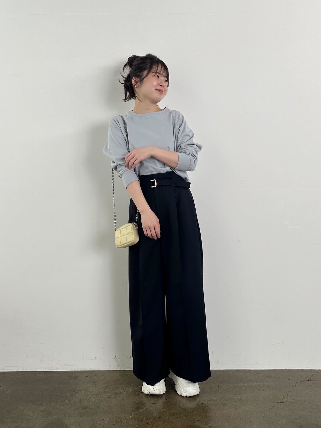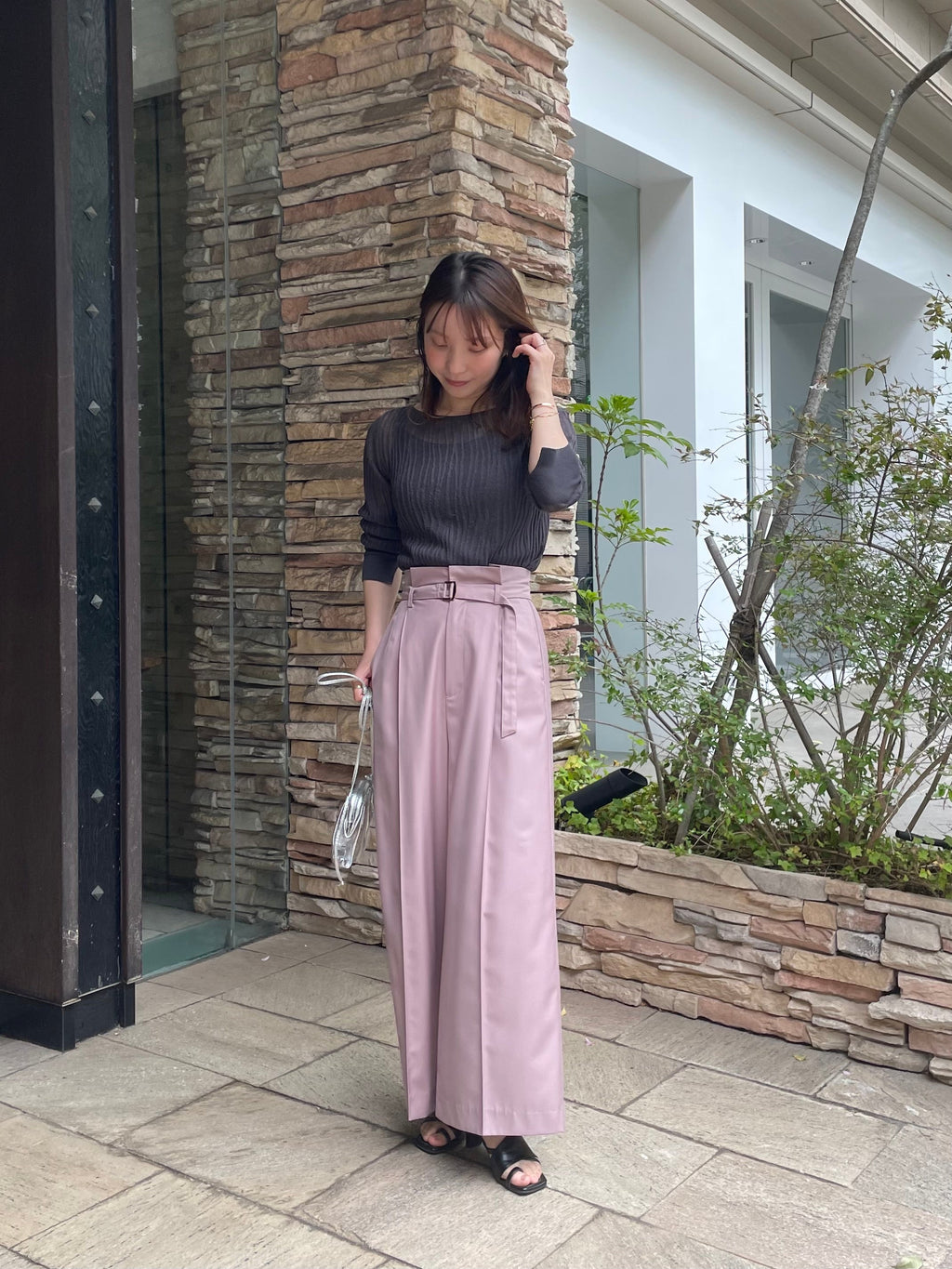 ブラウスやジャケット合わせの綺麗めスタイリングはもちろん、カジュアルトップス合わせの綺麗めカジュアルスタイルにも。 ウエストのバックルを生かしたインスタイルがおすすめです。