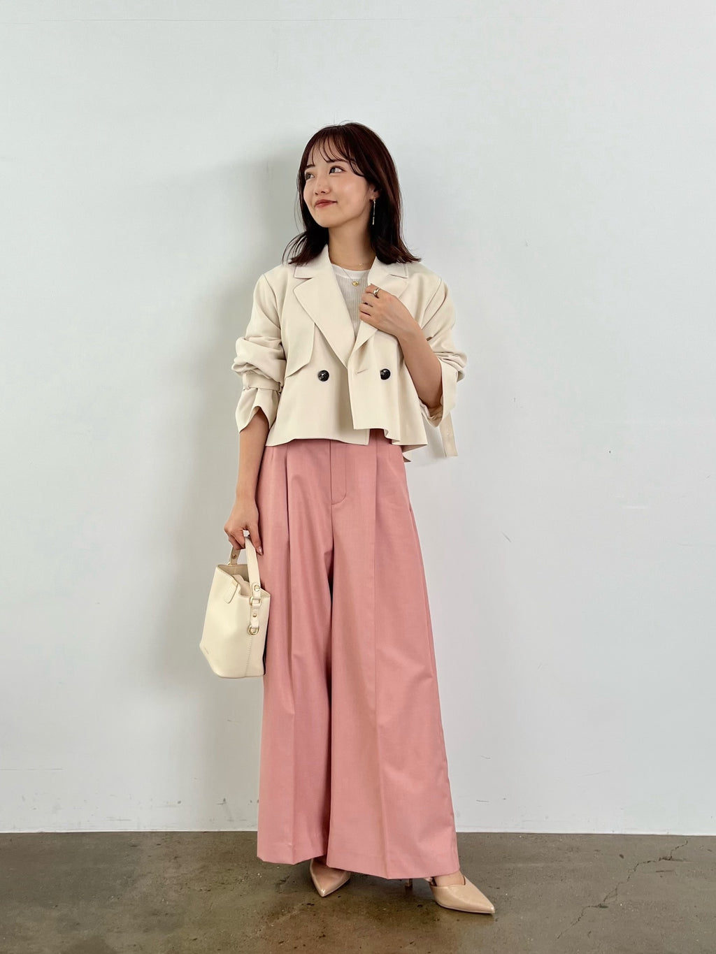 ウエストはインをしてピッタリくらいでしたが、ウエストのベルトで調節ができるので安心です。ピンクのカラーは差し色にもぴったりなので、夏のコーデを盛り上げてくれます。(regular-XS着用)