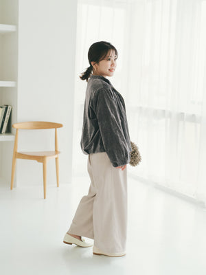 たっぷりとした筒幅ですがタックが入っており、すっきりと見せてくれます。