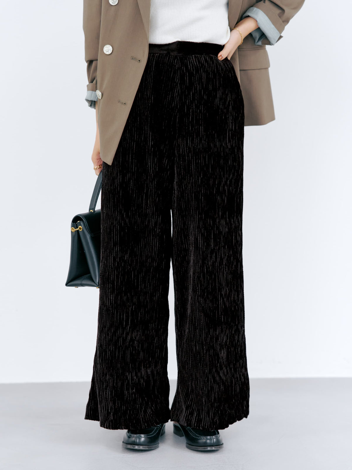 縦ラインで脚長効果◎リラックス感も叶える大人のベロアパンツ