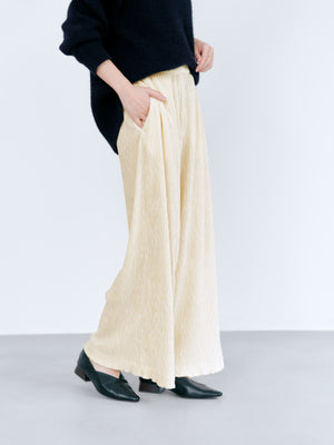 縦長ラインで脚がまっすぐ見えるプリーツ加工生地を使用。軽く、歩きやすい着心地が魅力的。