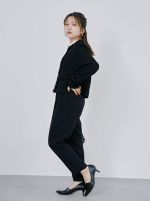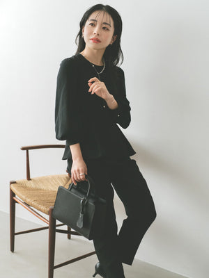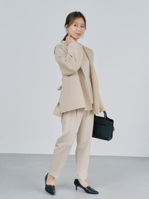 同素材で展開しているトリアセジョーゼットペプラムブラウストリアセジョーゼットノーカラージャケットとセットアップとしても着用できます。