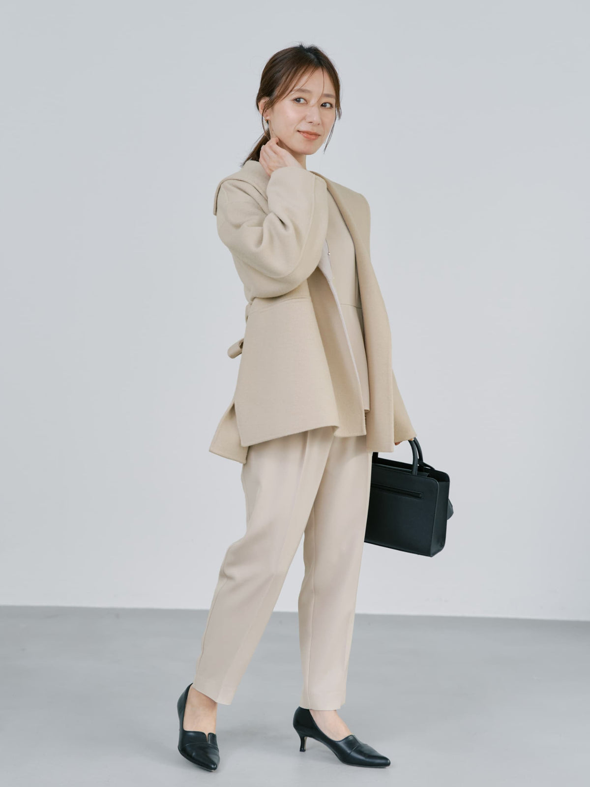 合わせるスタイリングによってオフィスシーンからカジュアルシーンまで幅広く活躍するアイテムです。