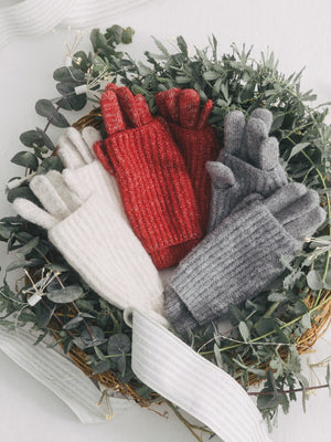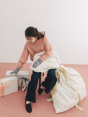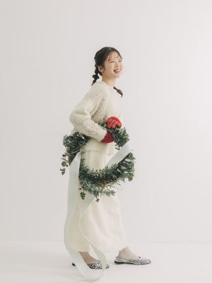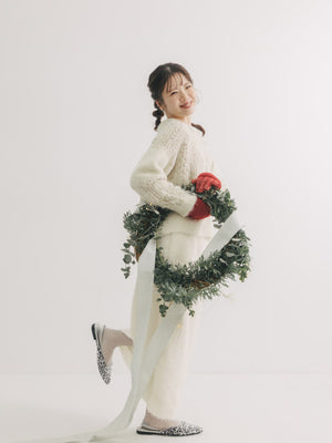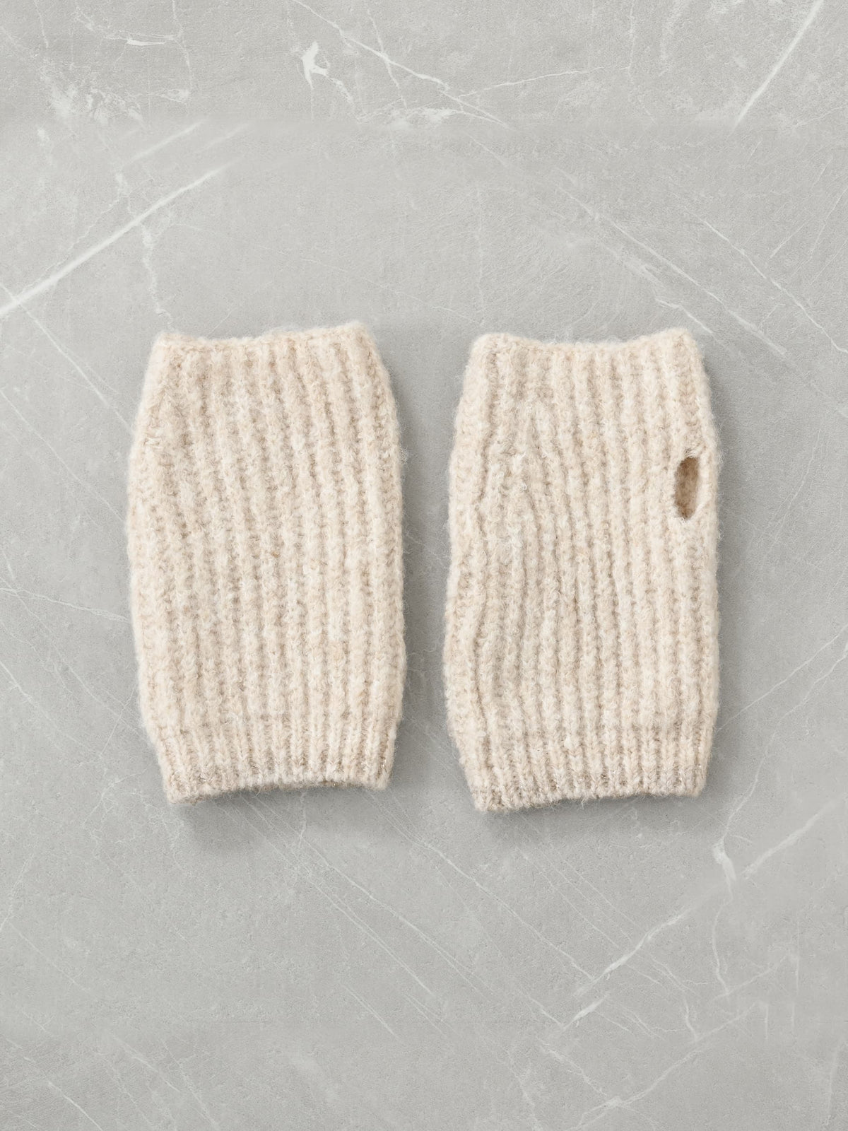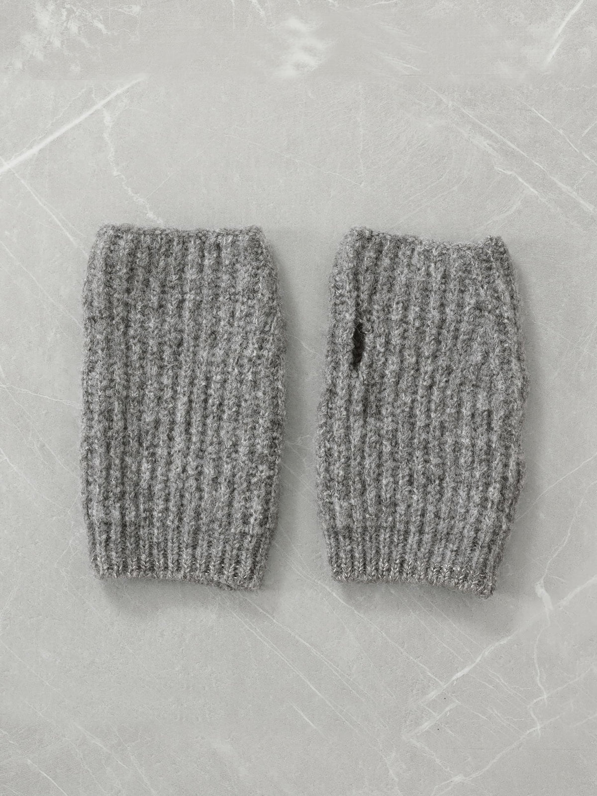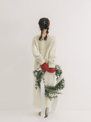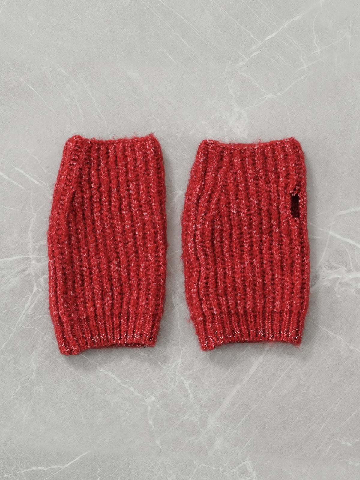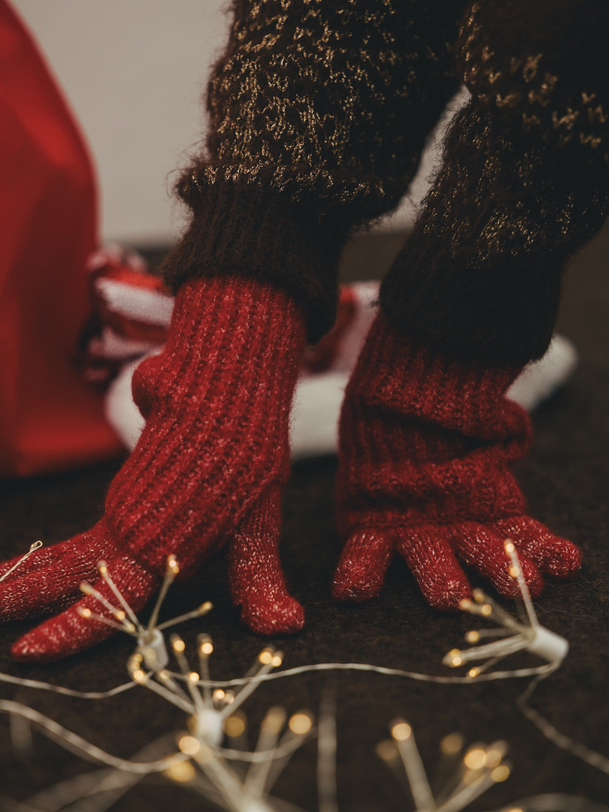 グローブはフラットな編み地で、アームウォーマーは立体感のある畦編みに仕上げて重ねた時のコントラストもデザインにしました。優しく光を纏うデイリートーンのキャンドルベージュ、コーデの主役になるジュエルストロベリー、クリーンで都会的なムードのミスティーシルバーの3色展開。冬の街に出たくなる、気分を上げてくれるアクセサリーです。