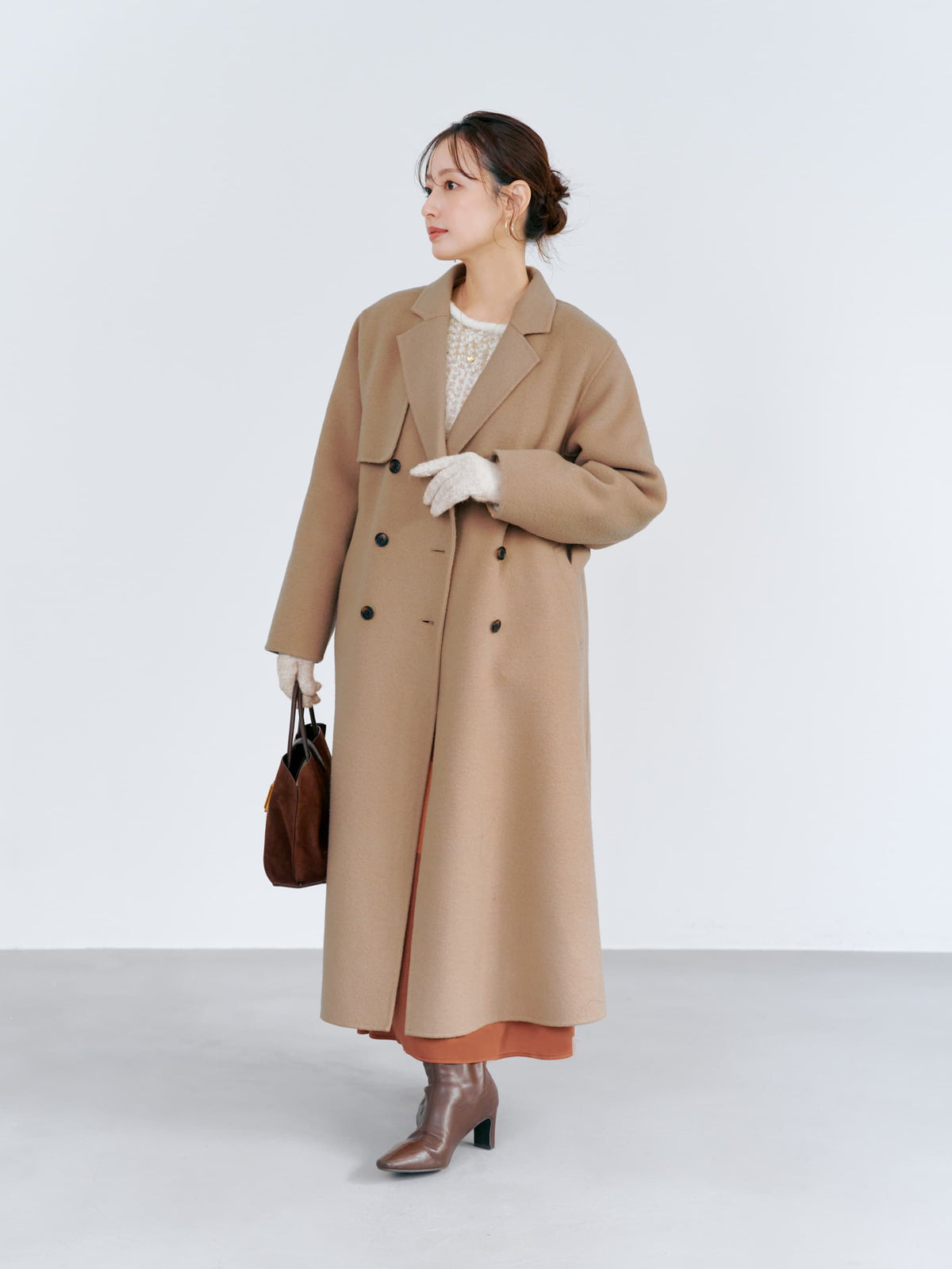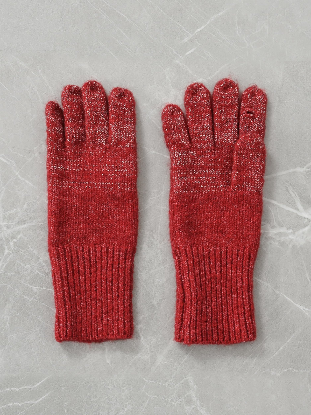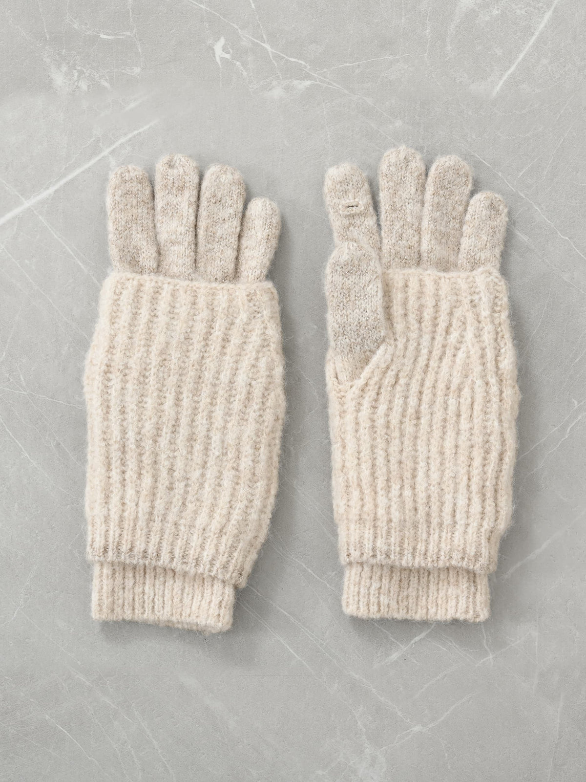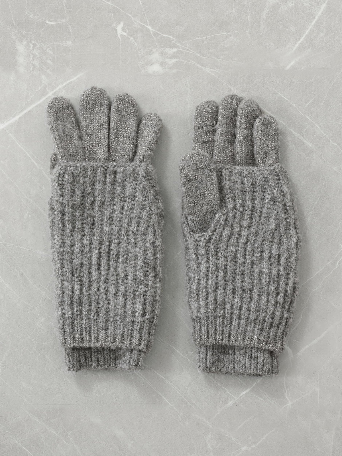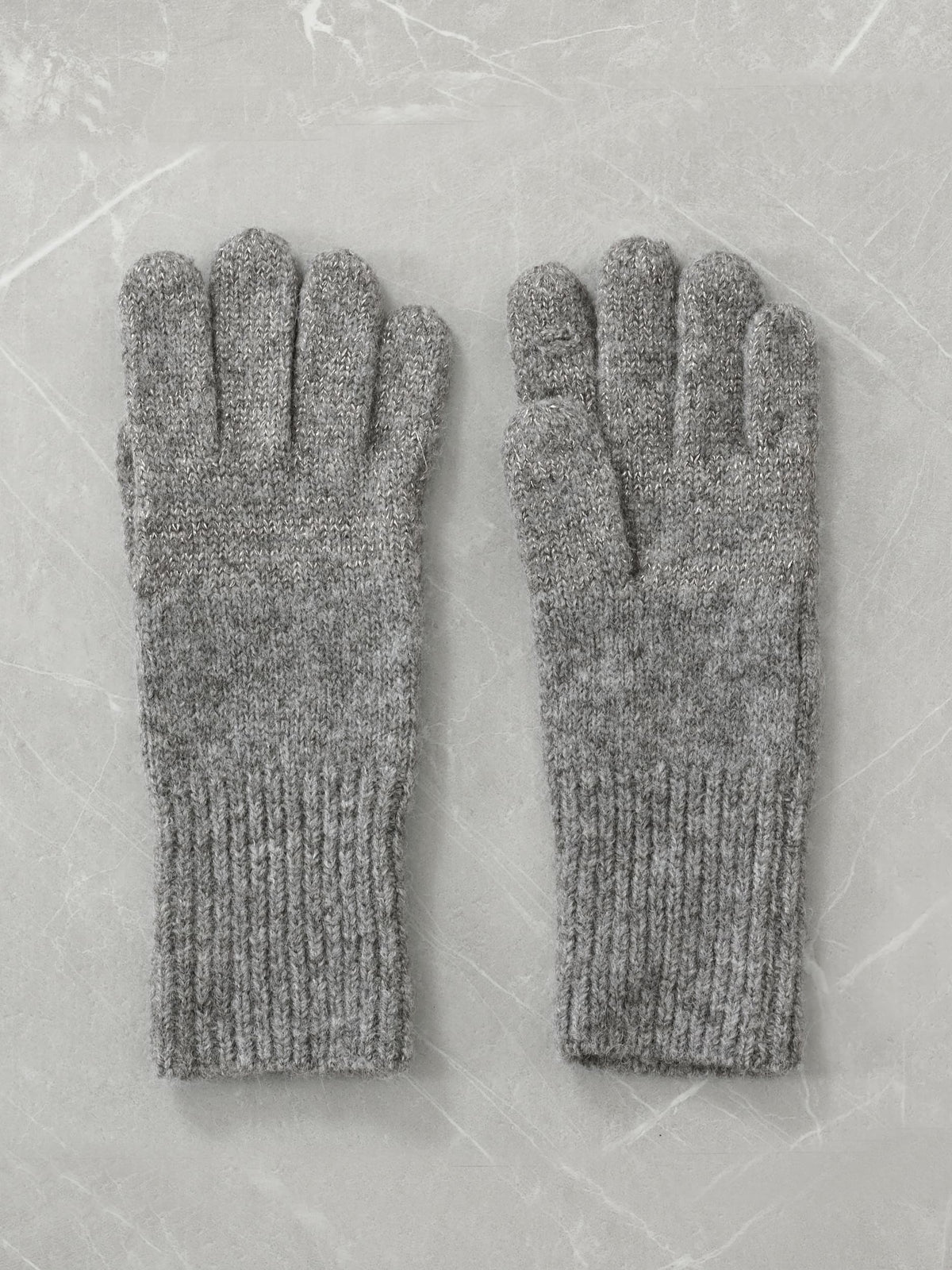 重ねてレイヤードしても、1枚ずつ別々に使っても様になる2WAY仕様。グローブの親指と人差し指にはスマートフォン操作ができるようにアイレットを施しました。手元の動作まで綺麗に見せてくれる、冬のおしゃれの心強い味方。指先まで包まれるあたたかさと、光を受けてさりげなくきらめくアクセサリー感覚のデザインで、冬のスタイリングにリズムをつくります。