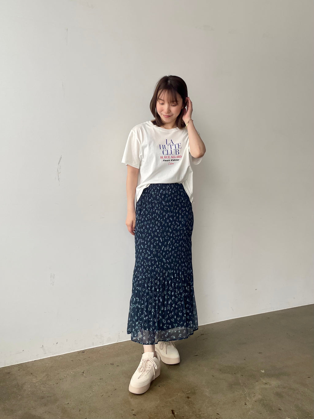 大人っぽい花柄と、着映えシルエットでシンプルなトップスと合わせるだけでスタイリングが決まります。
