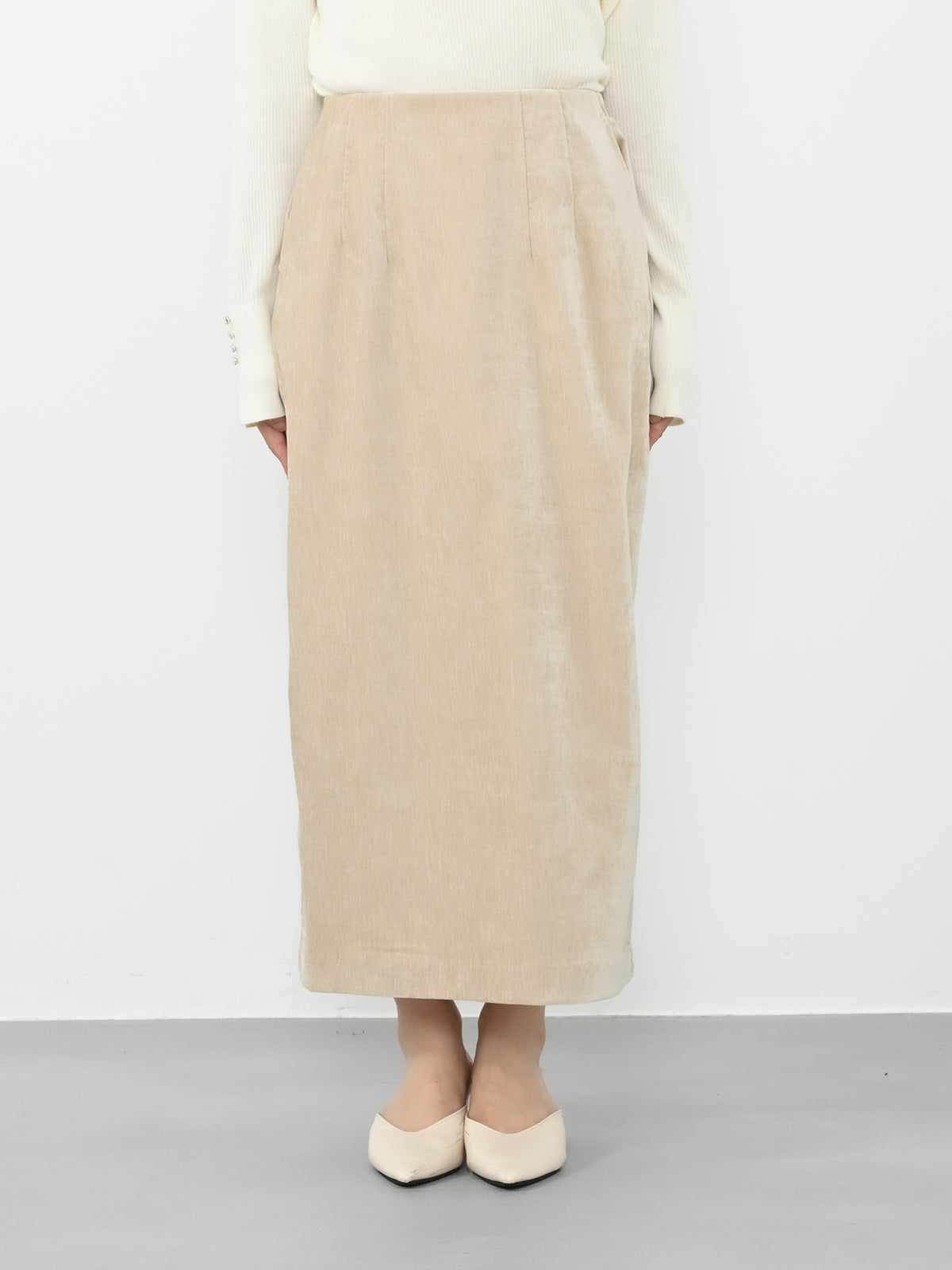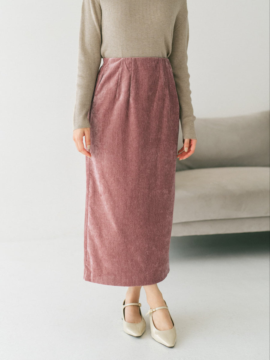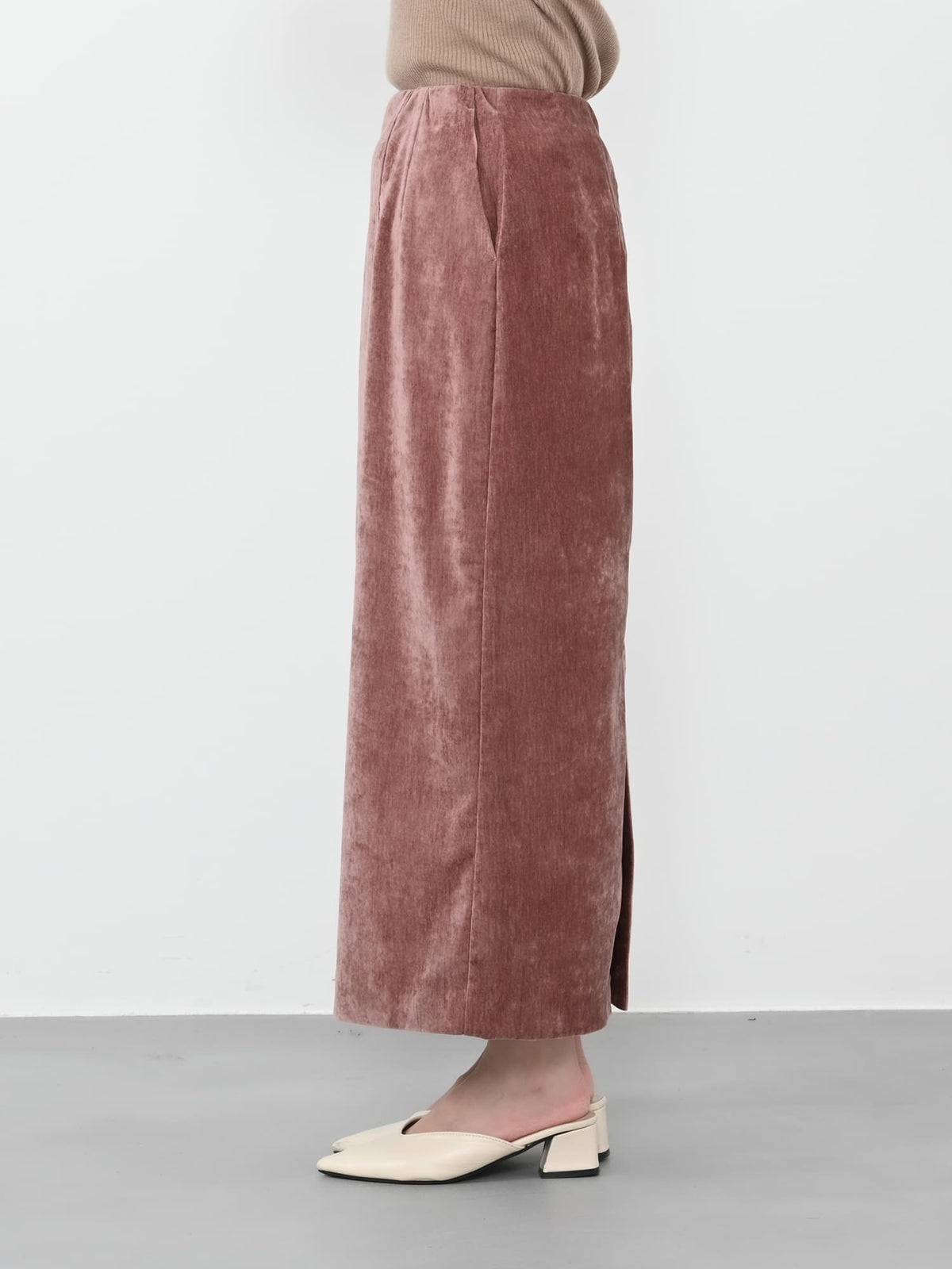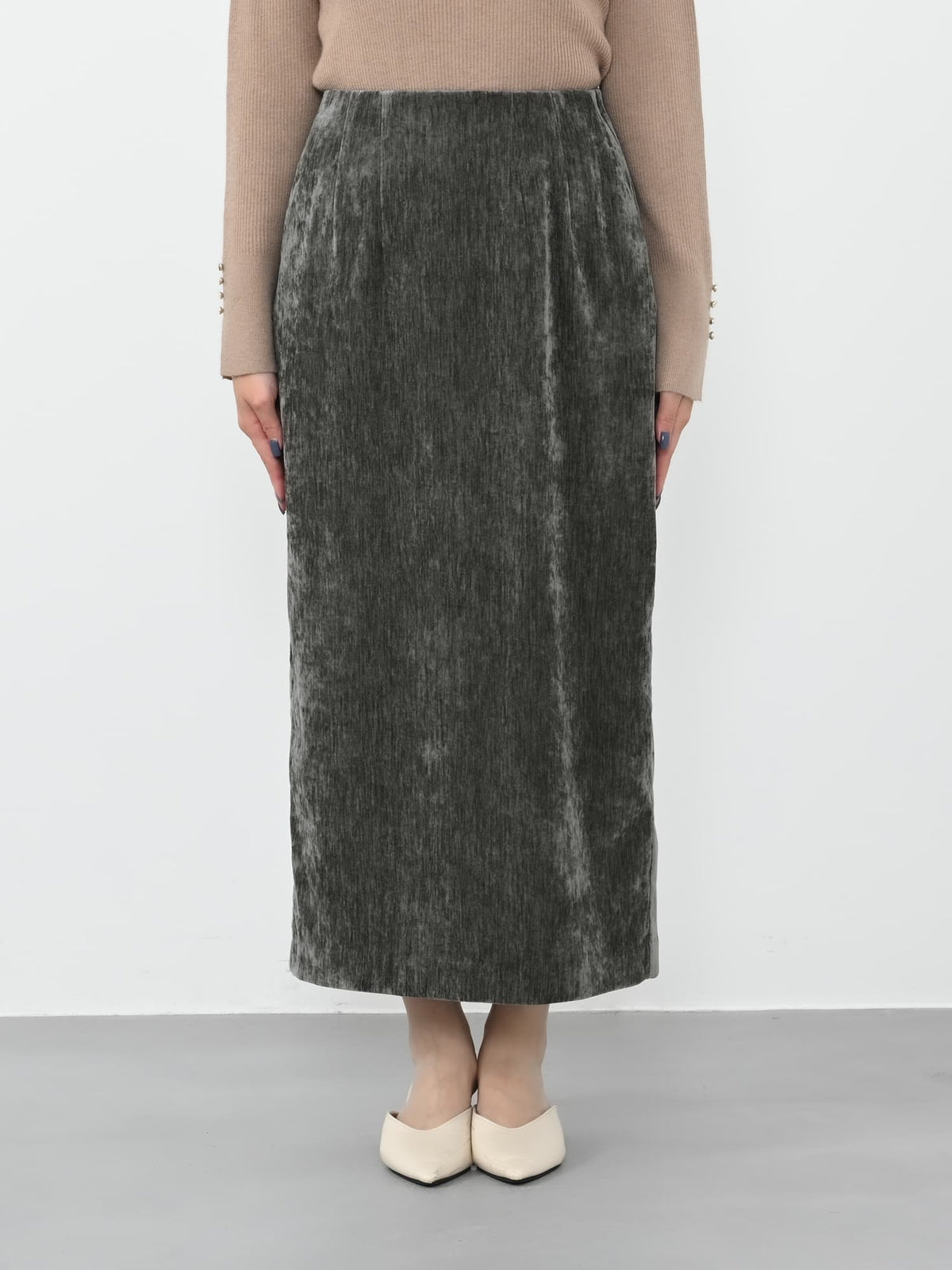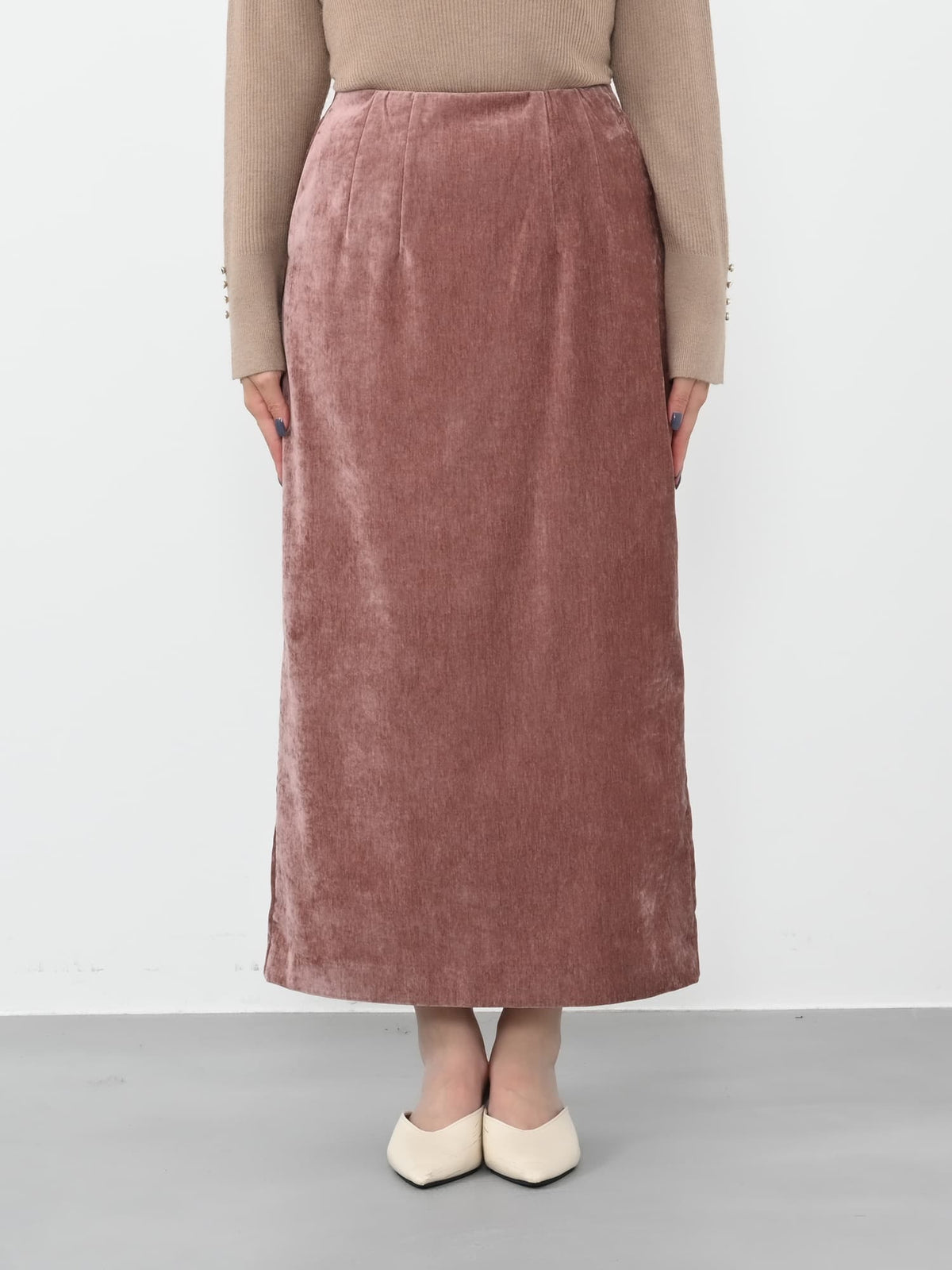 なめらかで上品な光沢が魅力のパウダリーベロア素材を使用したIラインスカート。