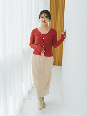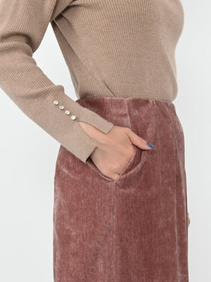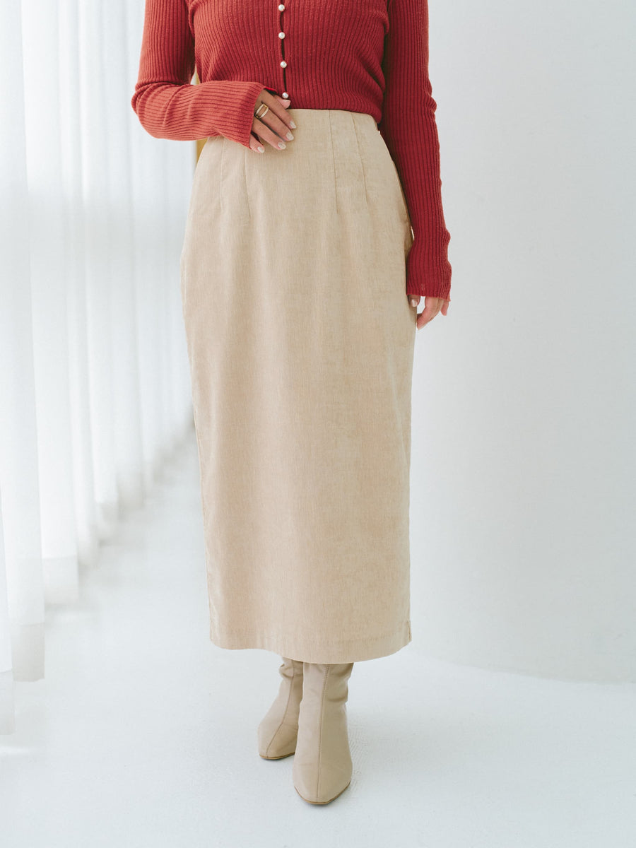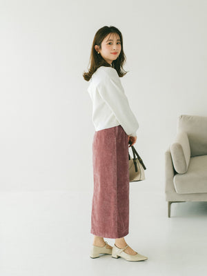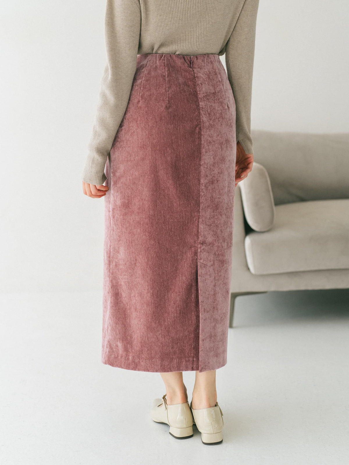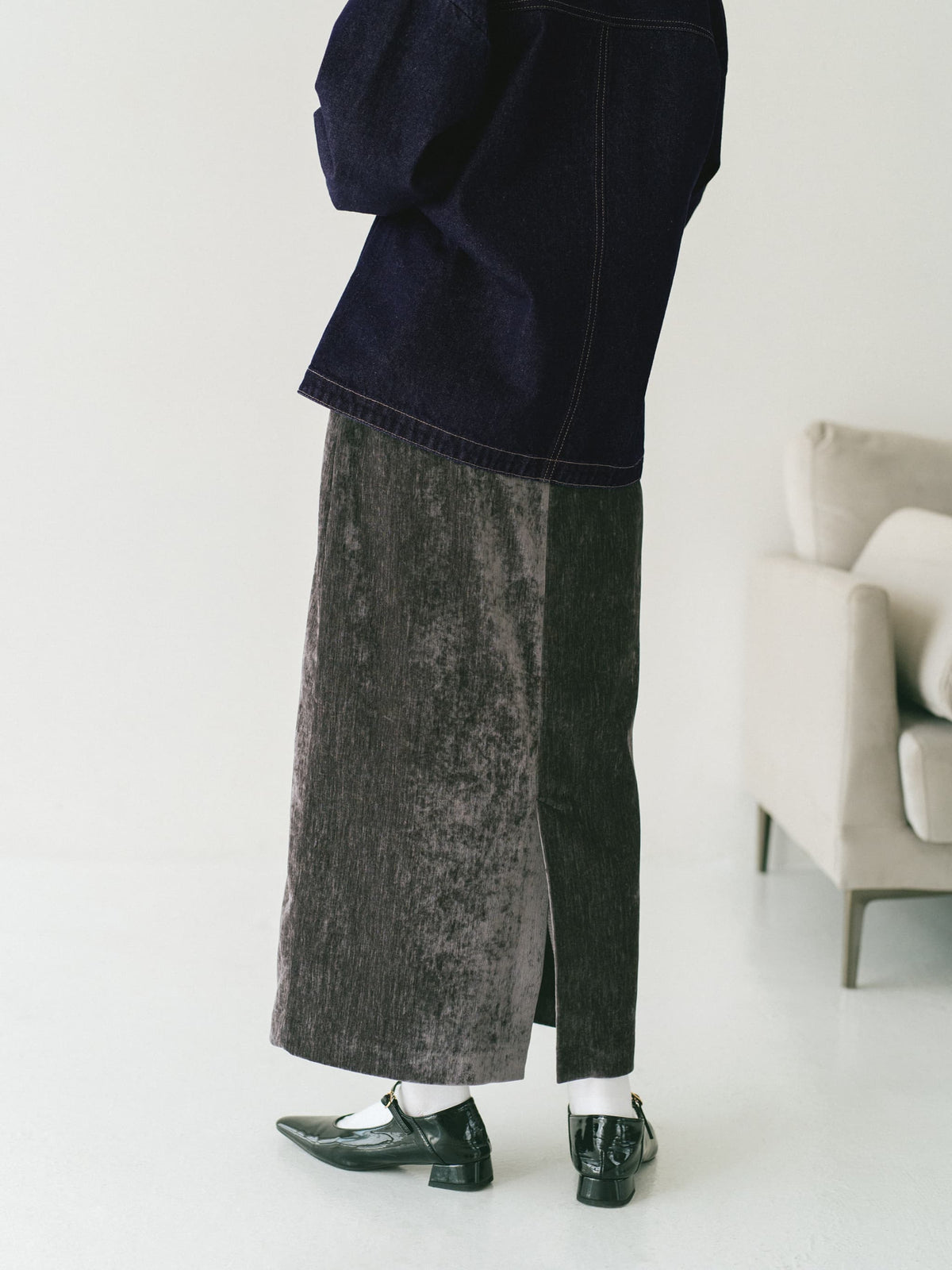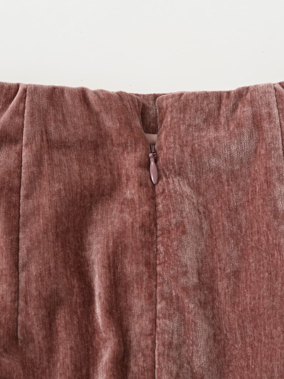 なめらかで上品な光沢が魅力のパウダリーベロア素材を使用したIラインスカート。