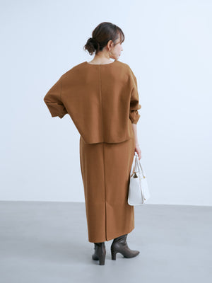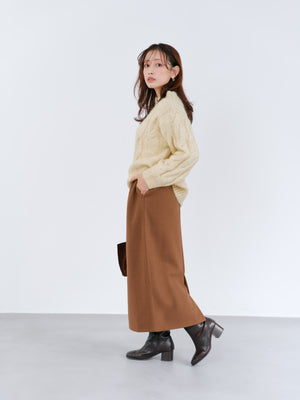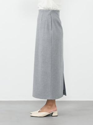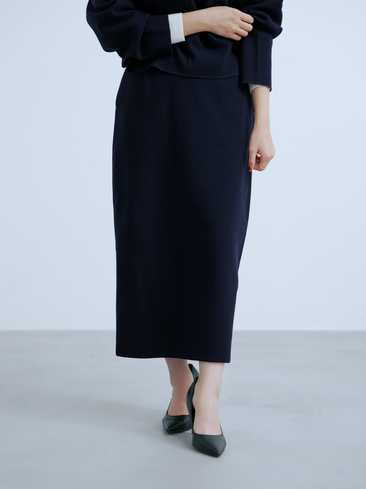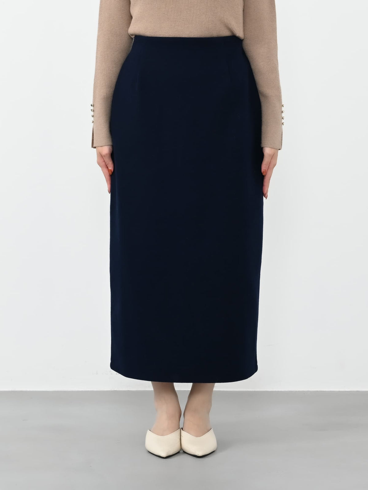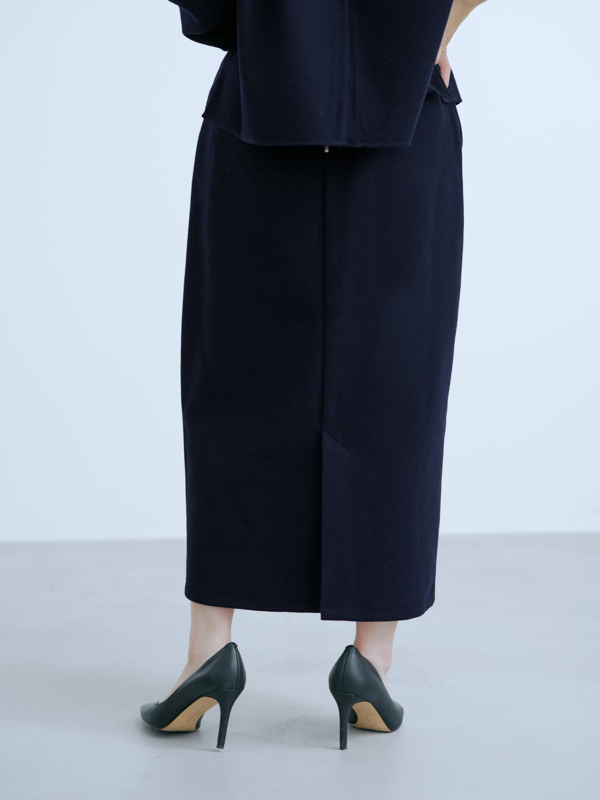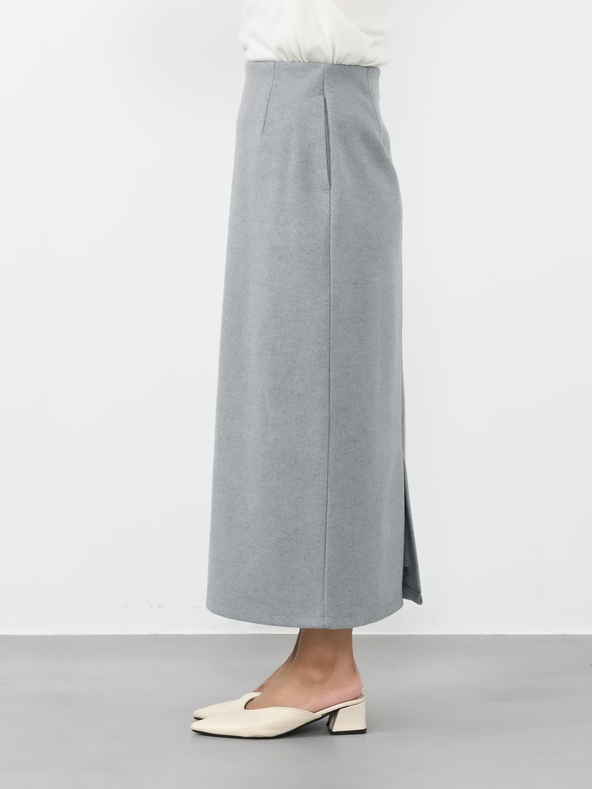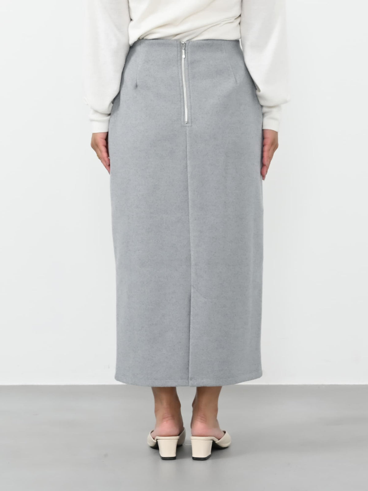 軽くて暖かいウールライクな表情の起毛ジャージーを使用したIラインスカート。