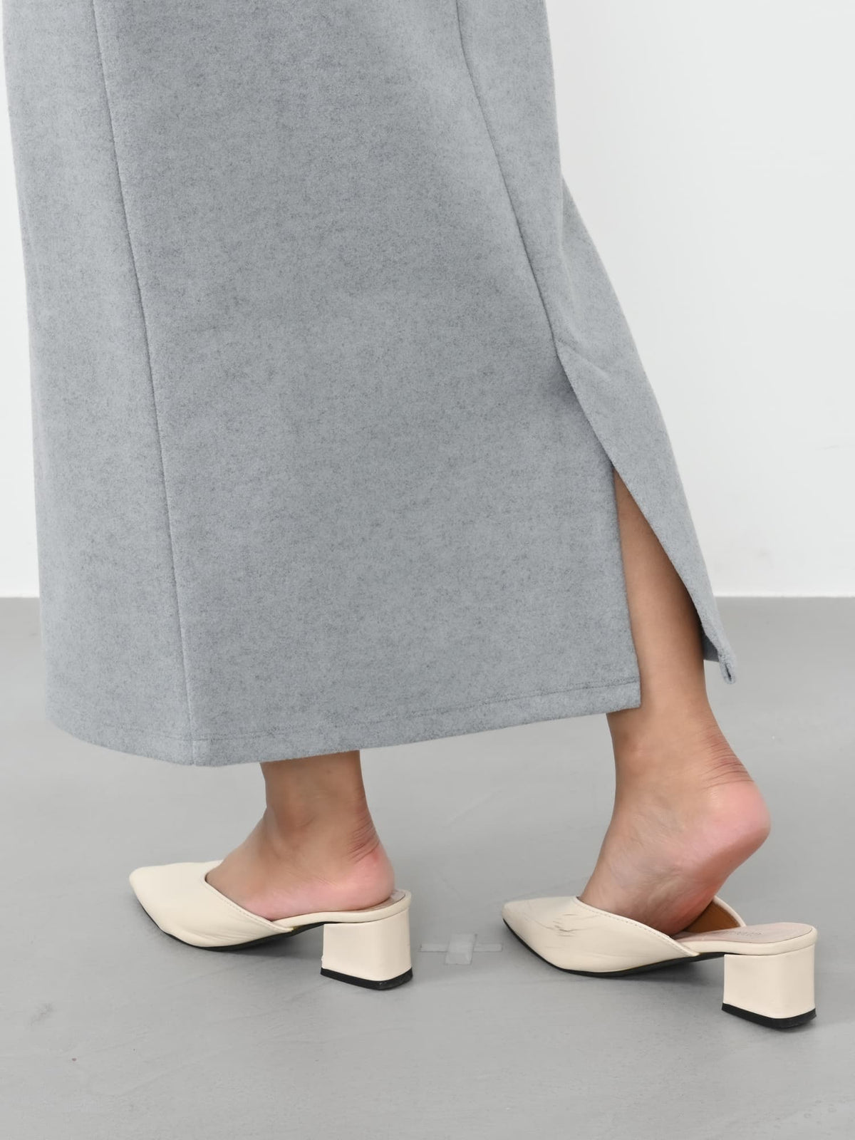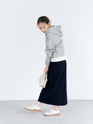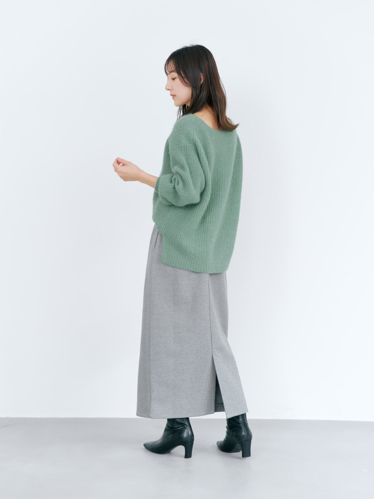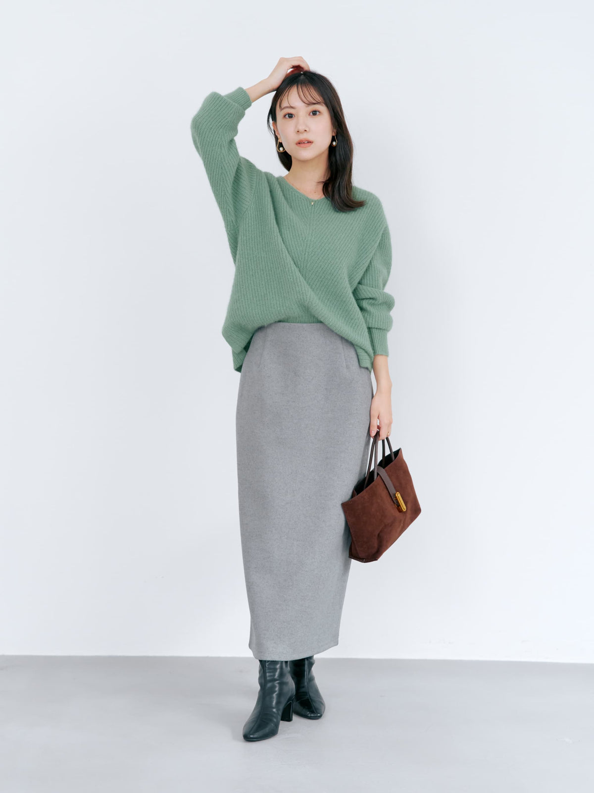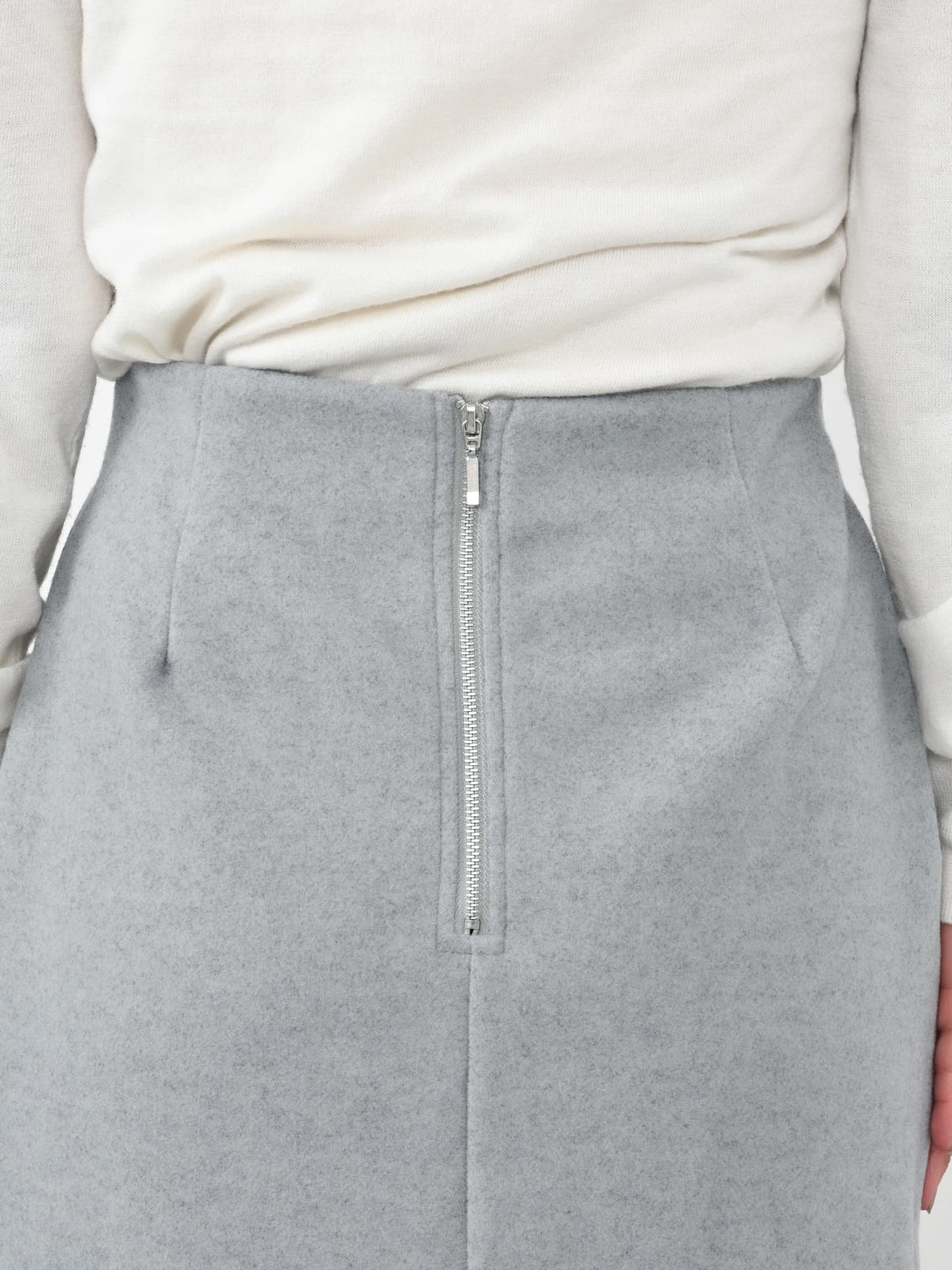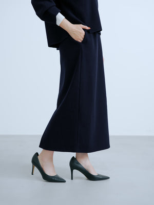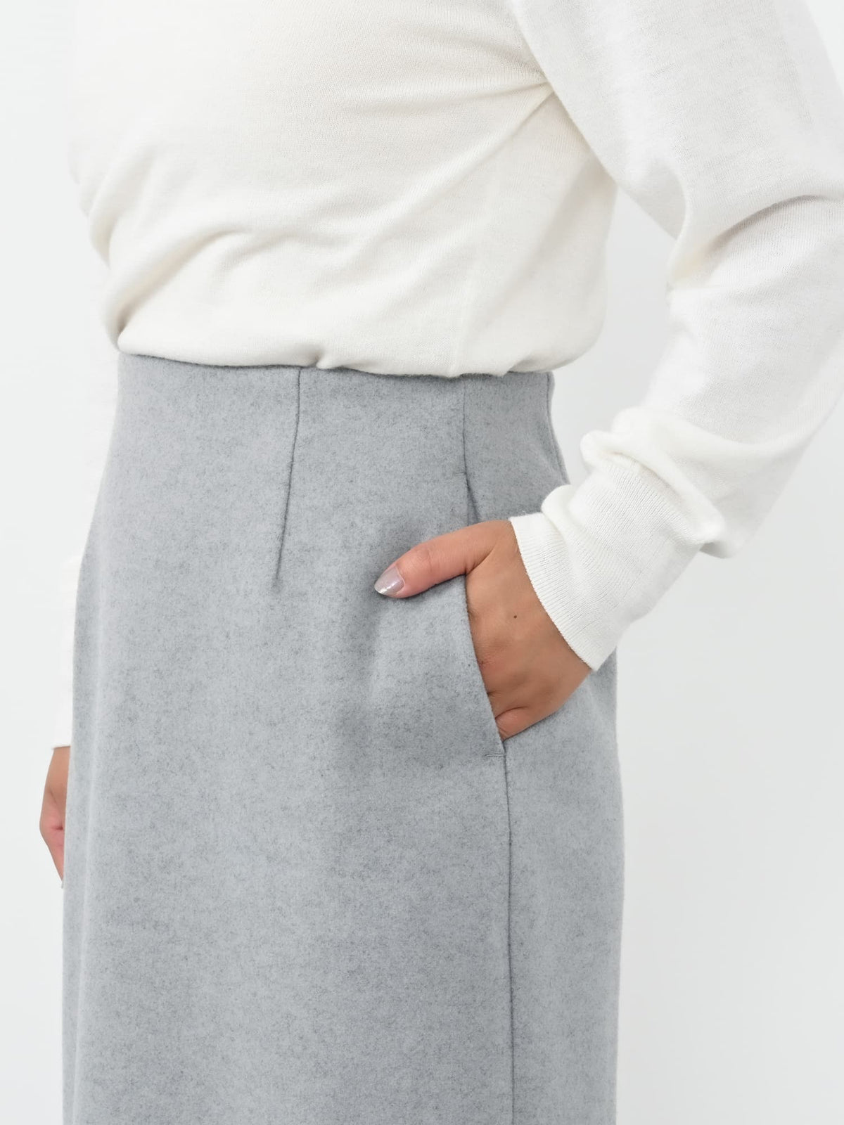 軽くて暖かいウールライクな表情の起毛ジャージーを使用したIラインスカート。
