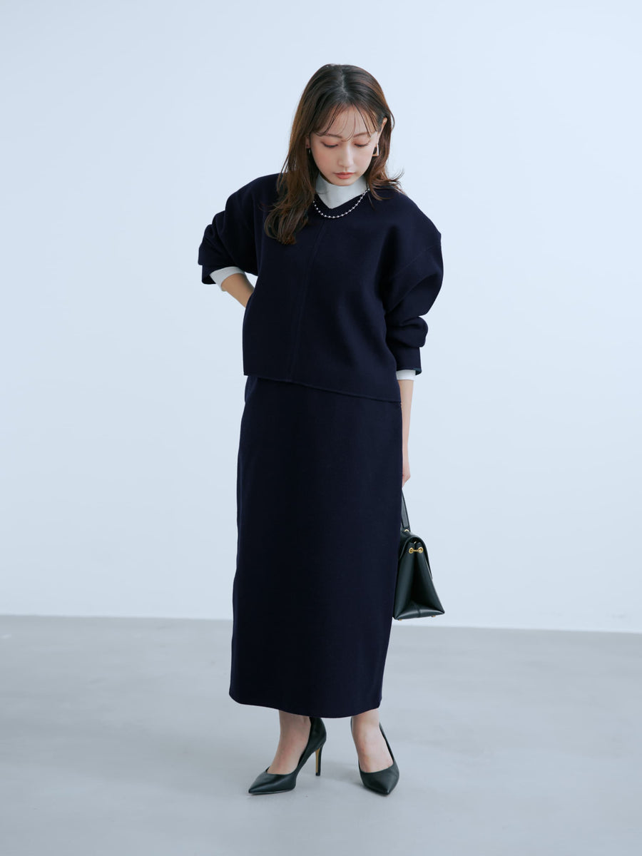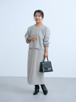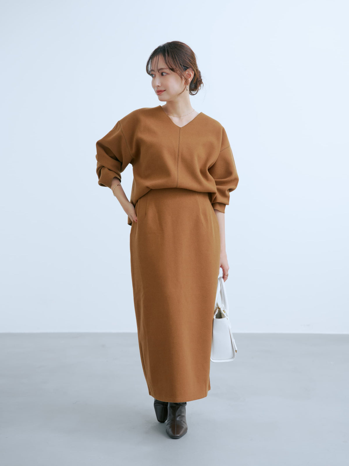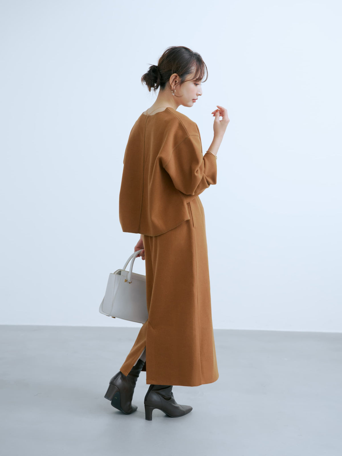 同素材のウールライクジャージートップスとセットアップでの着用がおすすめ。