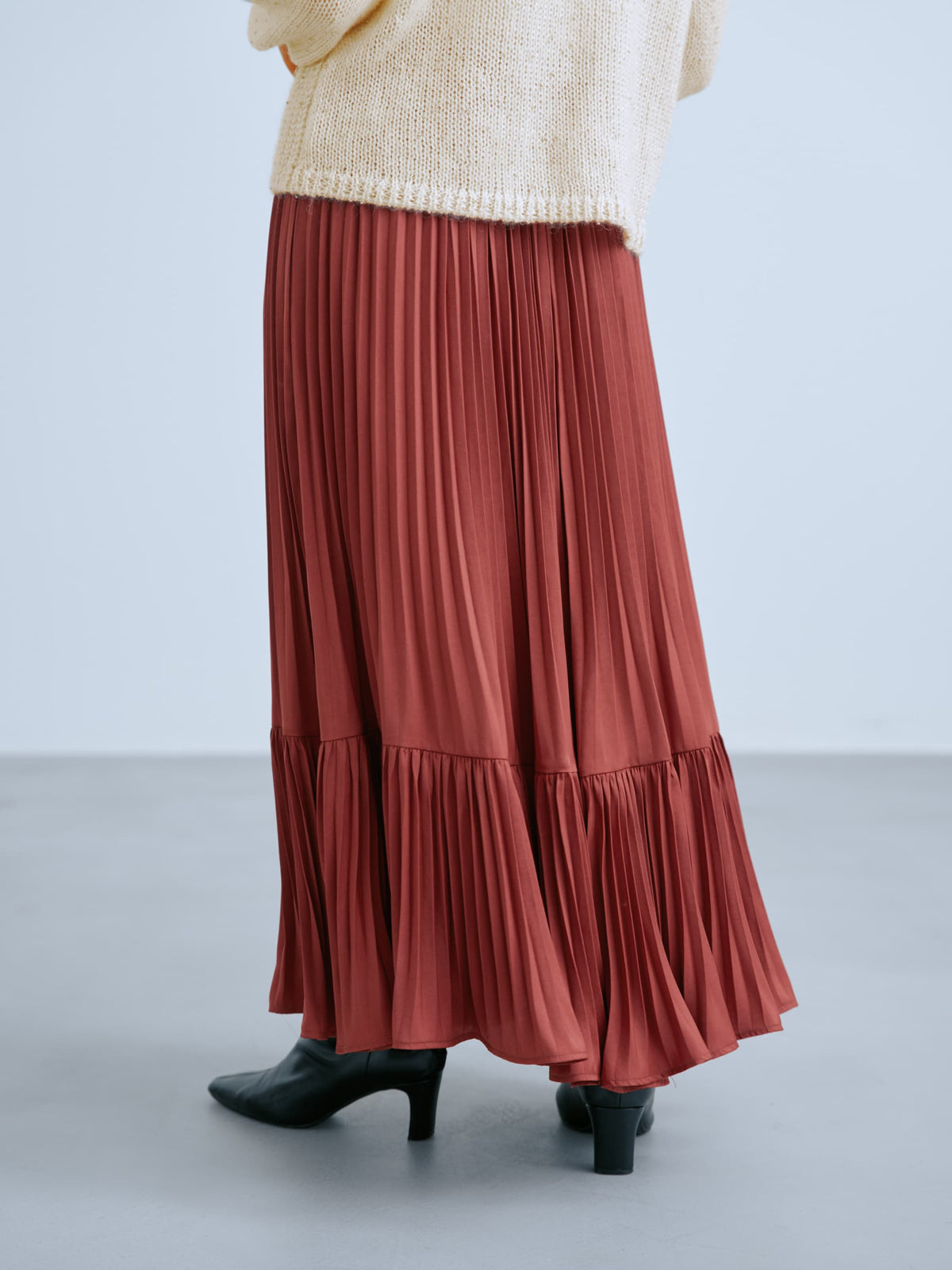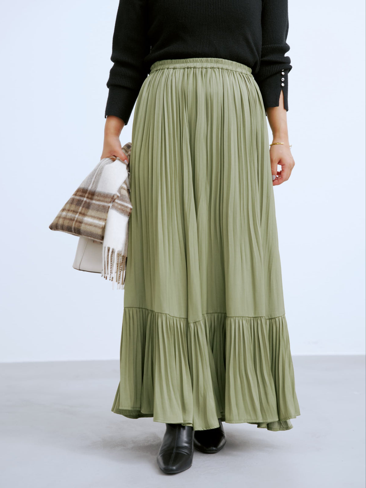 たっぷりとした裾で歩くたびに揺れる着映えプリーツスカート。