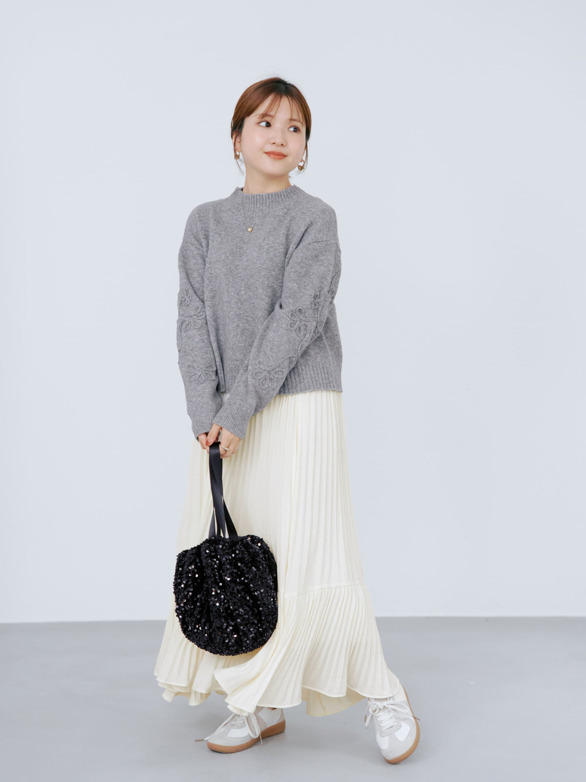 コンパクトなニット合わせはもちろん、シーズンムード高まるふわふわなニットを合わせた着映えコーデもおすすめです。