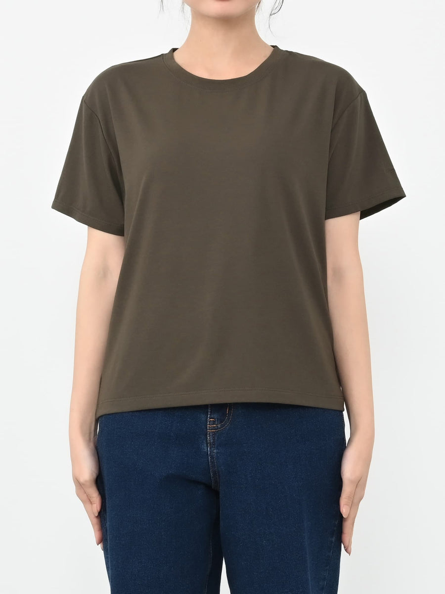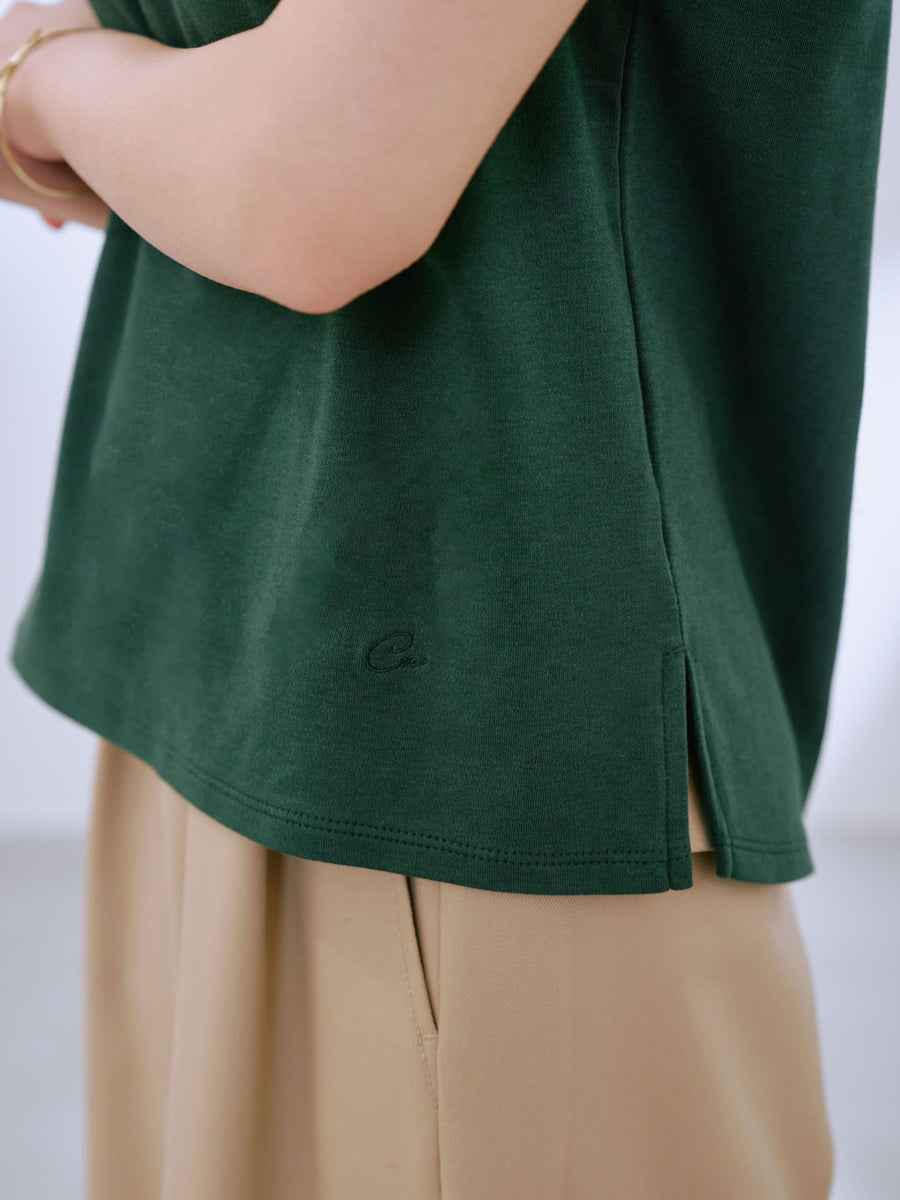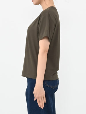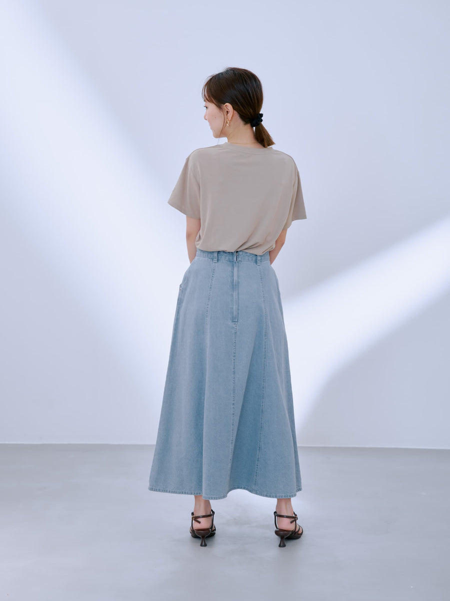 特殊テンセル™繊維と再生ポリエステルを特殊技術で加工。紫外線対策・接触冷感機能・吸水速乾機能を備えています。ほんのりシアー感のあるベア天竺生地は、見た目も着心地も軽やか。柔らかなタッチで肌触りの良さも抜群です。