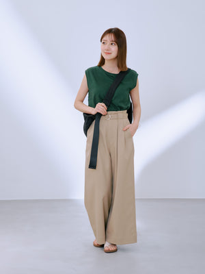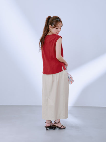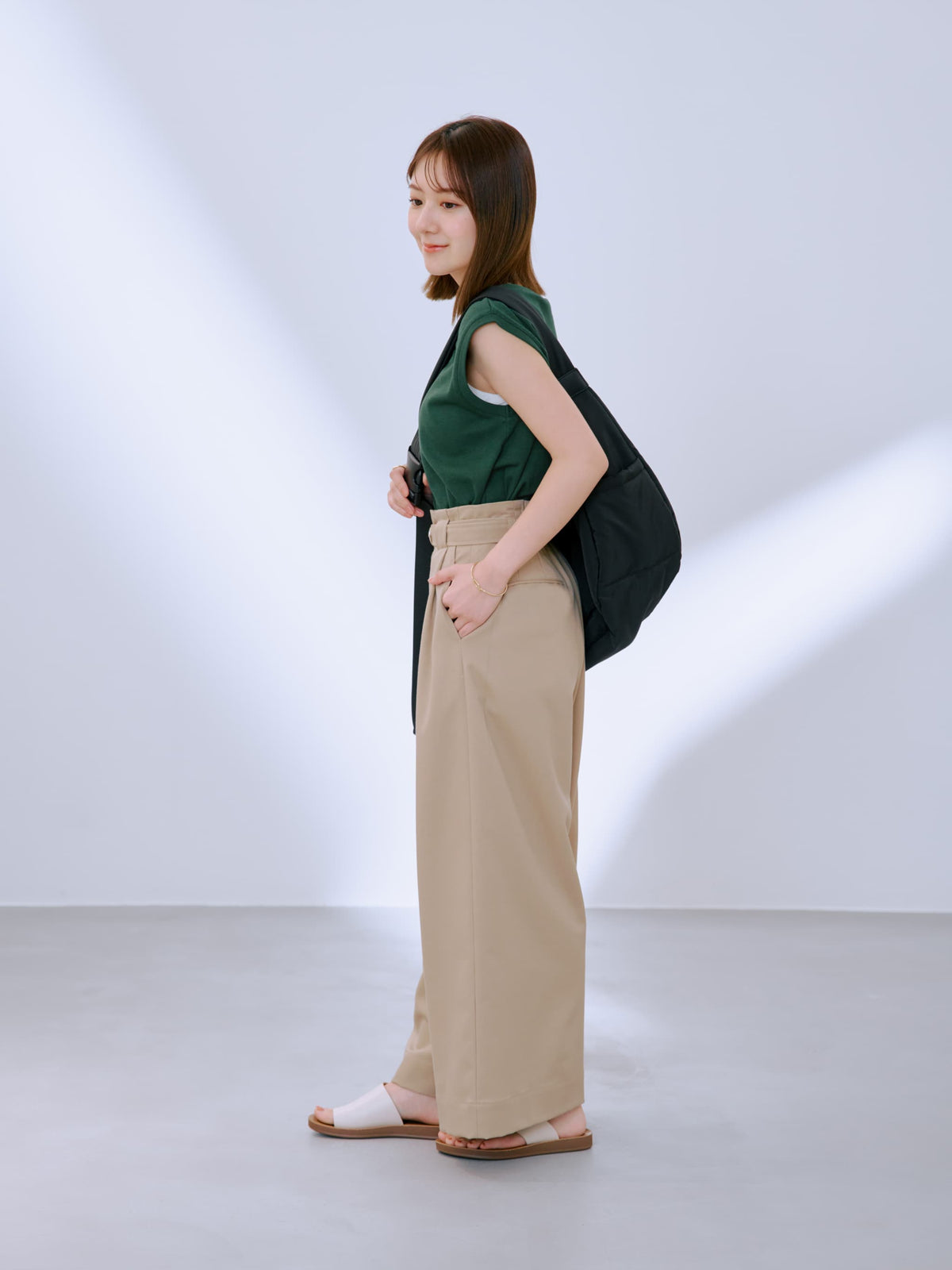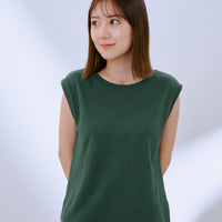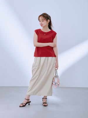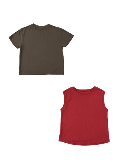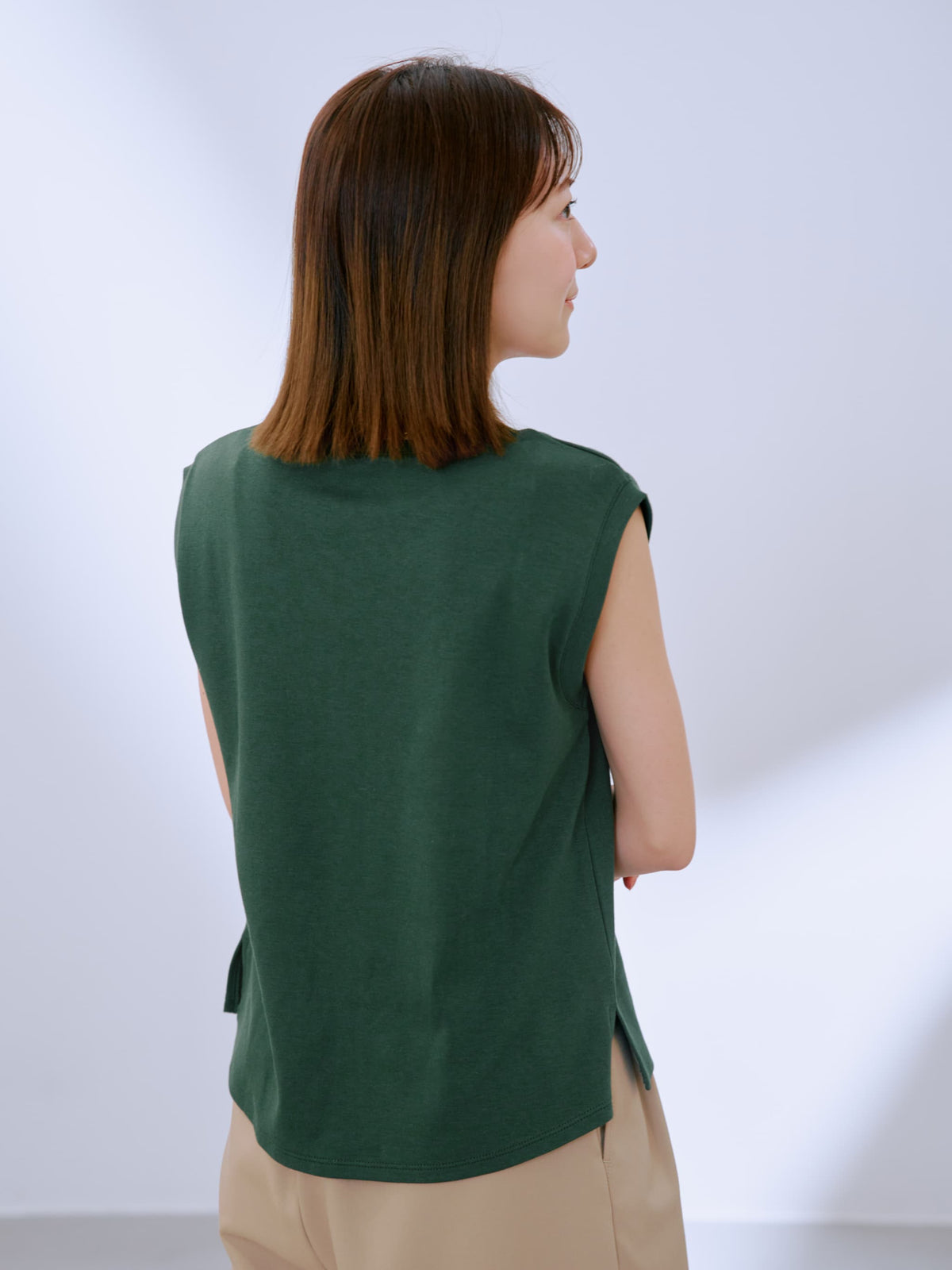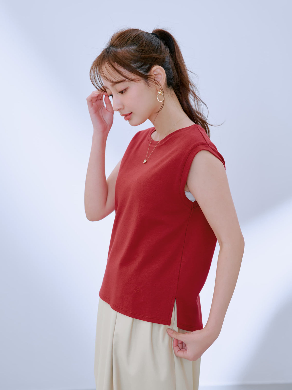 ほんのりボートネックで抜け感があり、肩周りもカバーしてくれる1枚使いしやすいシンプルなノースリーブ、優しいタッチが魅力のゆるっと着られるTシャツが1つのセットに。ベーシックなアイテムだからこそ、サイズ感や襟ぐりのラインにこだわり、絶妙なサイジングに仕上げました。どちらも夏に嬉しい機能性素材を使用した着回しに優れた万能アイテム。