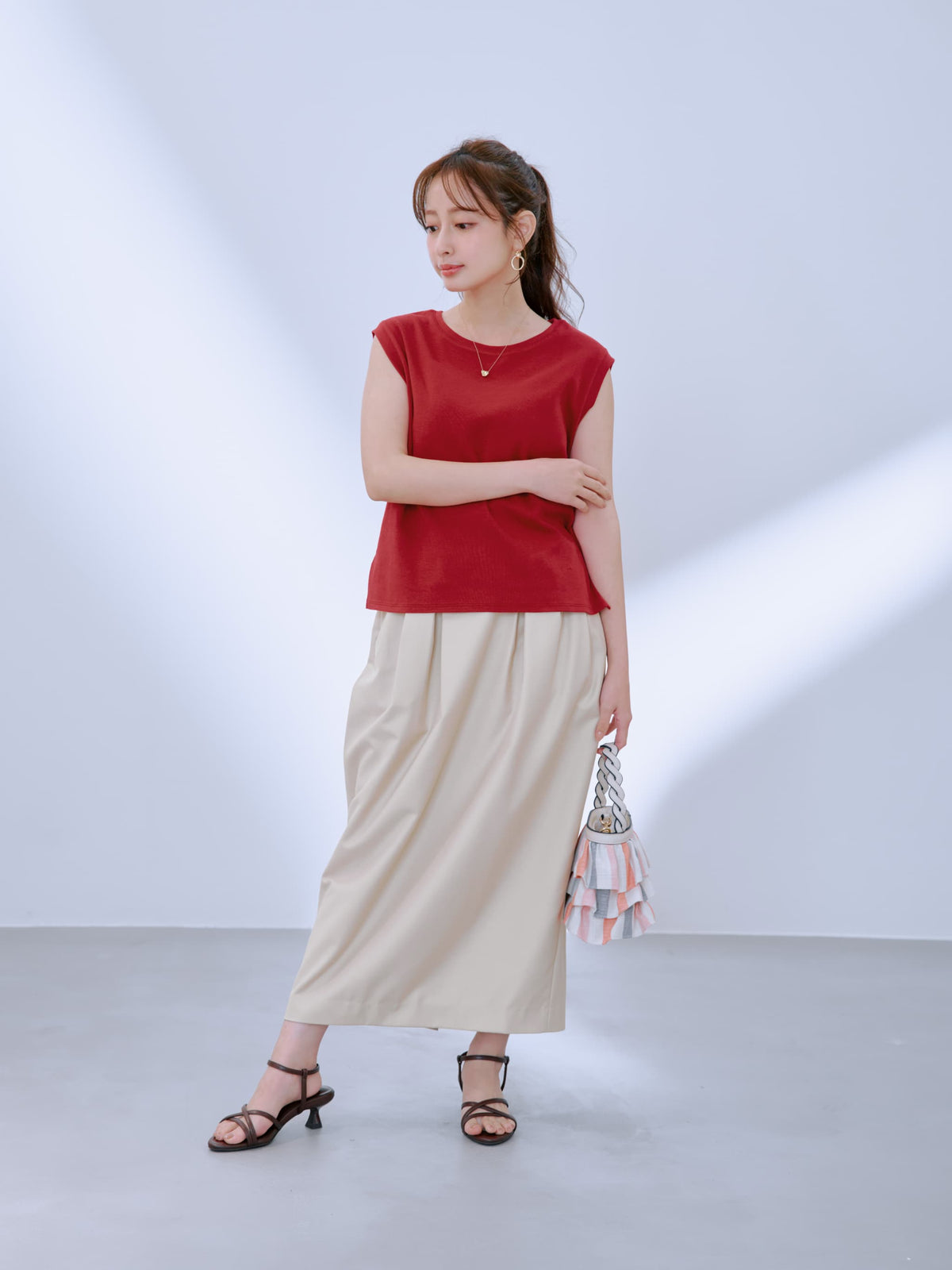 ・抜け感のあるボートネックノースリーブ&ゆったりシルエットのやわらかTシャツのセット
