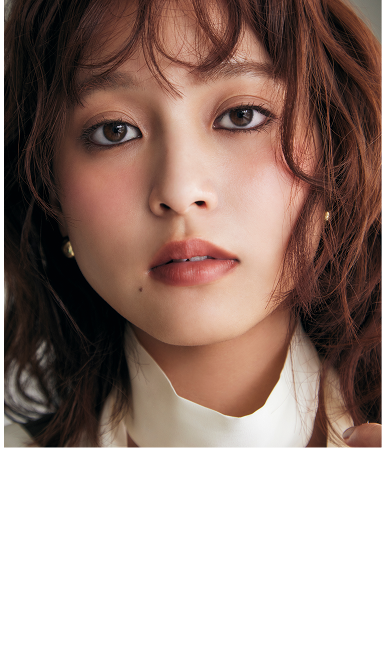 チャレンジしにくい囲み目も、ブラウンを使えば柔らかさのあるモード感でハンサムな印象に。チークに赤みをのせて温かさとかわいさをプラスしたバランスがポイント。