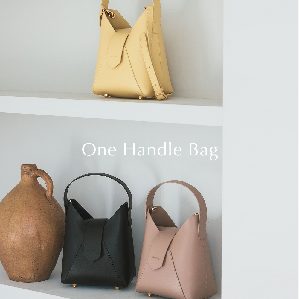 V字カットのシャープなデザインとコロンとした立体的な形が特徴的なワンハンドルバッグ。底鋲付きで自立し、内ポケットもあり、取り出し口が広くて実用性抜群のHASHIBAMIの人気アイテムです。コラボ仕様では、小柄な体型に合わせてマチ幅を調整し、ちょうど良い長さのショルダーベルトも付属。お手入れしやすい牛床革を使用し、カラーは定番のブラックに加え、グレージュと春らしいイエローが別注カラーとして登場。肩掛けや斜め掛け、ハンドバッグとしても使えるため、カジュアルにもきれいめにも合わせやすく、通勤や通学にも最適なバッグです。