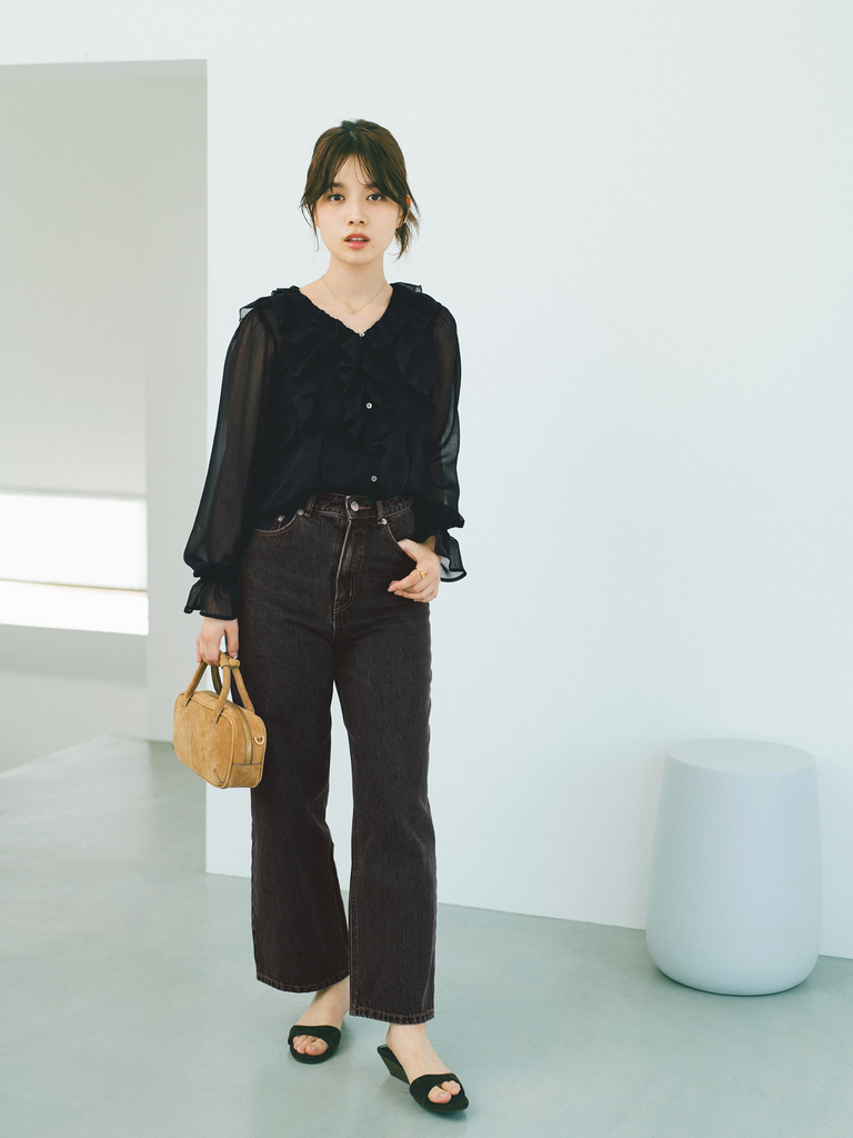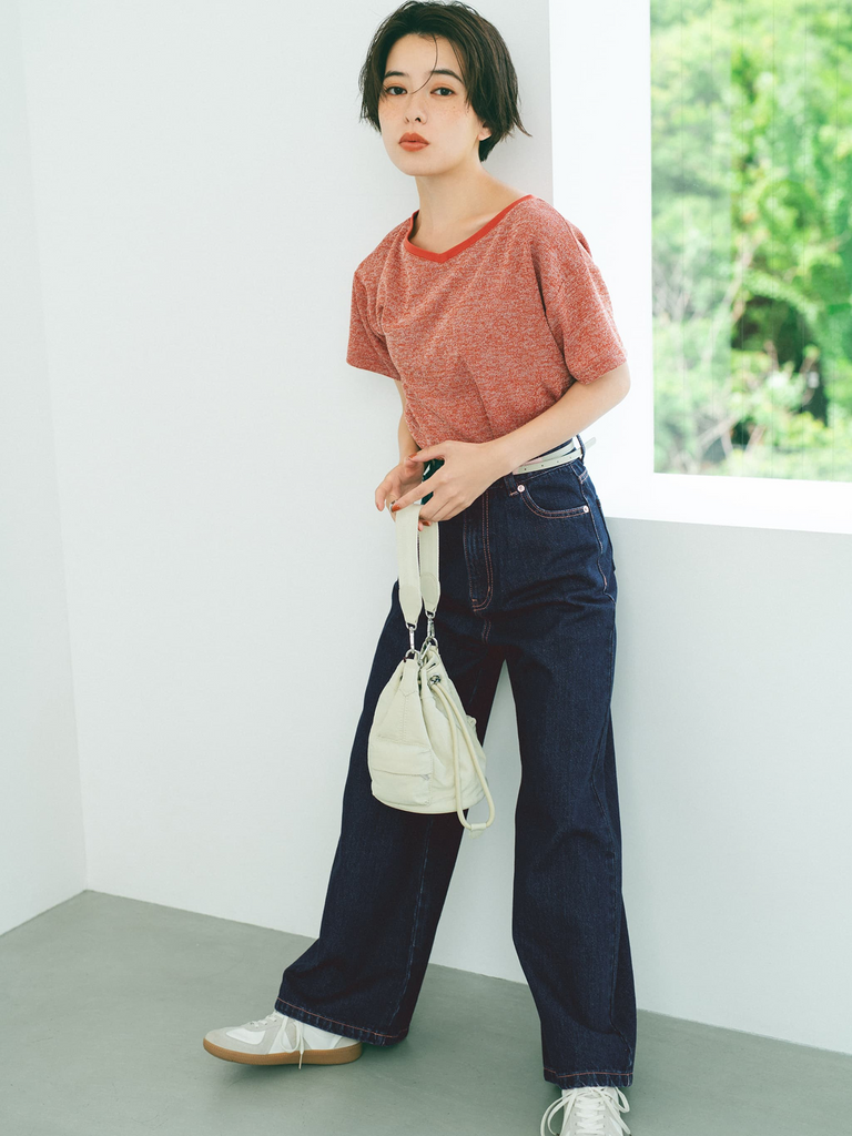 ハイウエスト設計とほどよい太さのストレートシルエットが、脚をまっすぐ美しく見せながら気になる部分をカバーし、スタイルアップを叶えます。小柄女性にフィットするサイジングを追求し、素材・シルエット・履き心地すべてにこだわった1着。