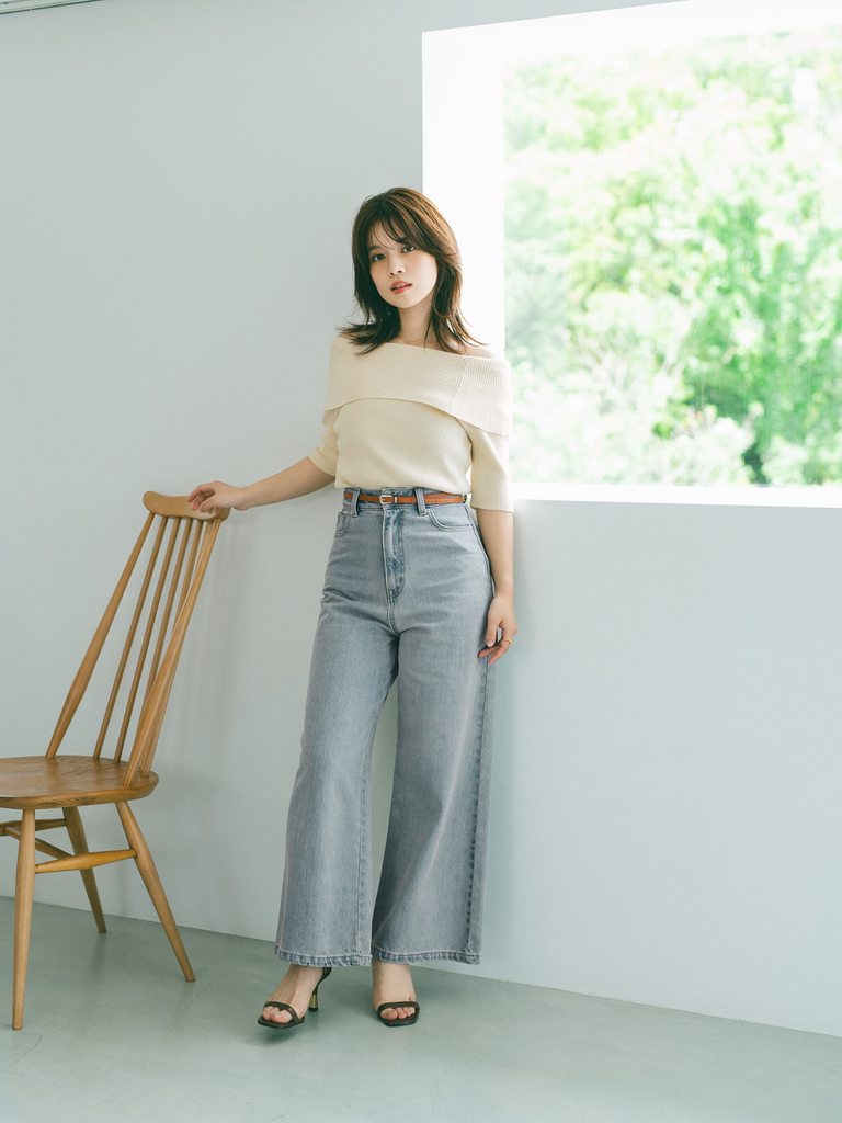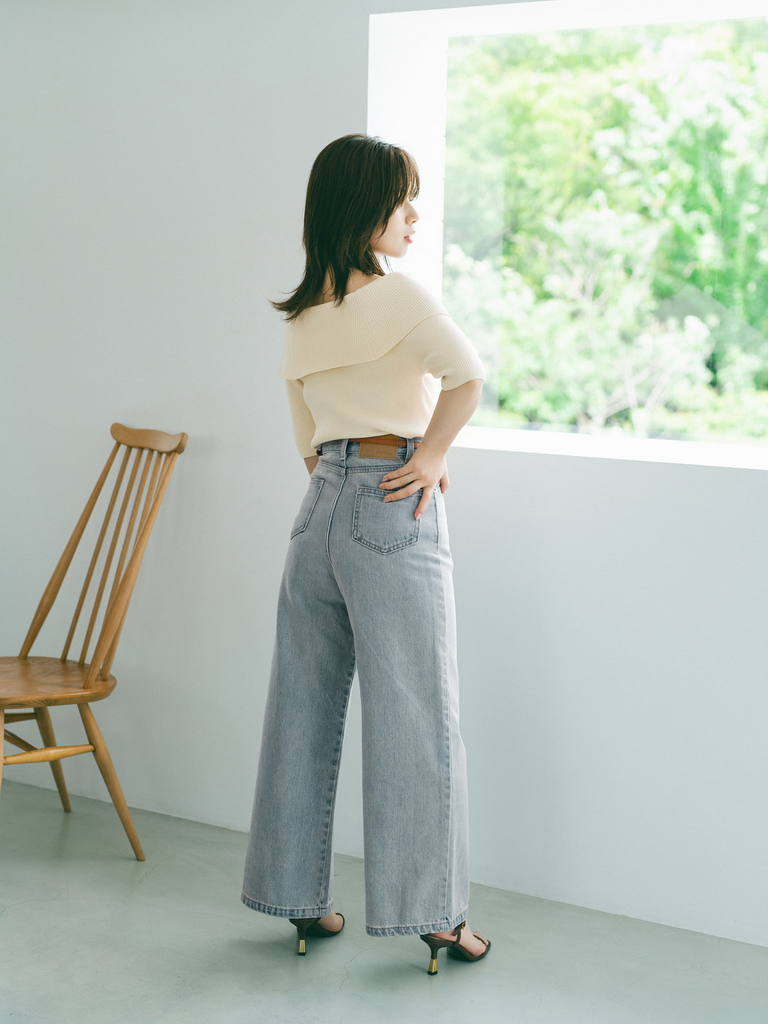 脚のラインを拾わない美しいフレアシルエットと、高めのウエスト設計でスッキリとした脚長効果を実現。膨らみのある国産デニム素材が魅力で、爽やかなライトインディゴ、上品なインディゴ、シックなウォッシュブラックの3色を展開。