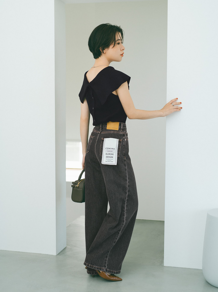 COHINAで人気を誇るデニム。その中でも定番のフレアワイドとセミワイドストレートの2型を、岡山県の老舗デニムメーカー「クロキデニム」の素材を使用して制作しました。国産生地の風合いやカラーなど、「クロキデニム」ならではの魅力はそのままに、小柄女性にフィットするサイジングを追求。さらに既存のカラー展開に新たにウォッシュブラックを追加しました。