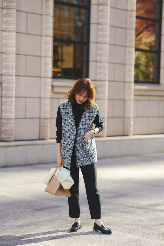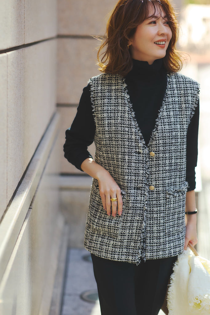 ジャケットはコンパクトに、ジレはややゆとりを持たせ、
