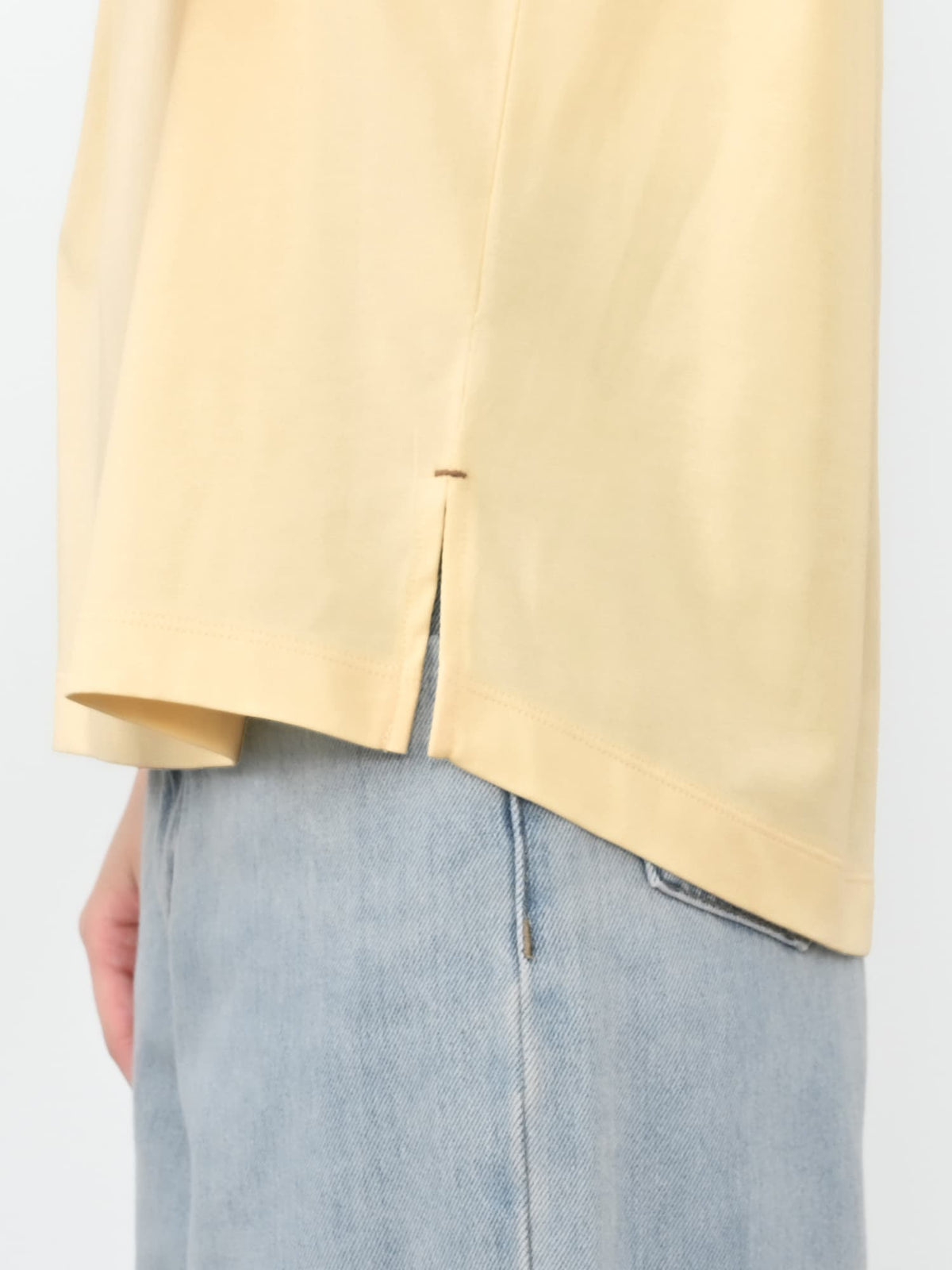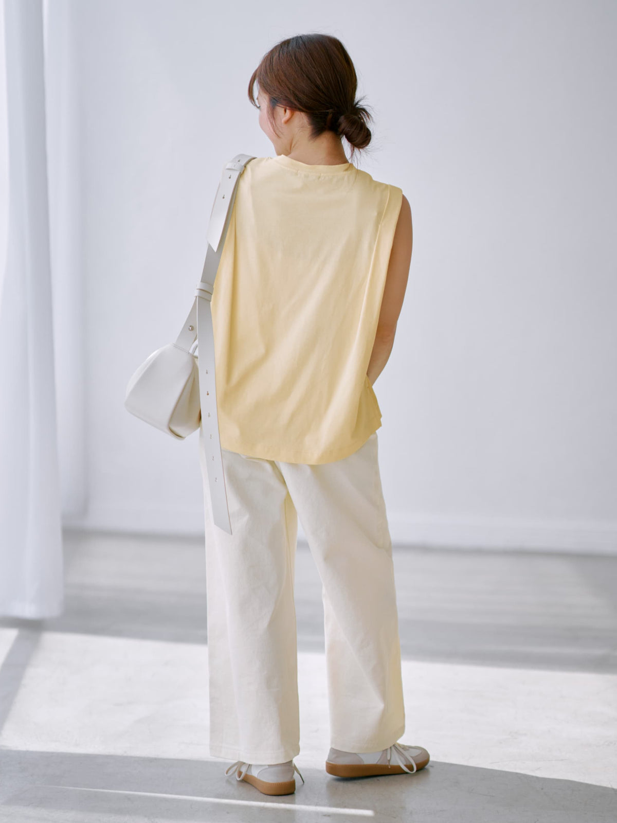 スリットのステッチを配色にすることで、さりげないアクセントに。程よくゆとりのあるデザインで、大人カジュアルな抜け感コーデが決まります◎