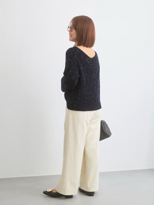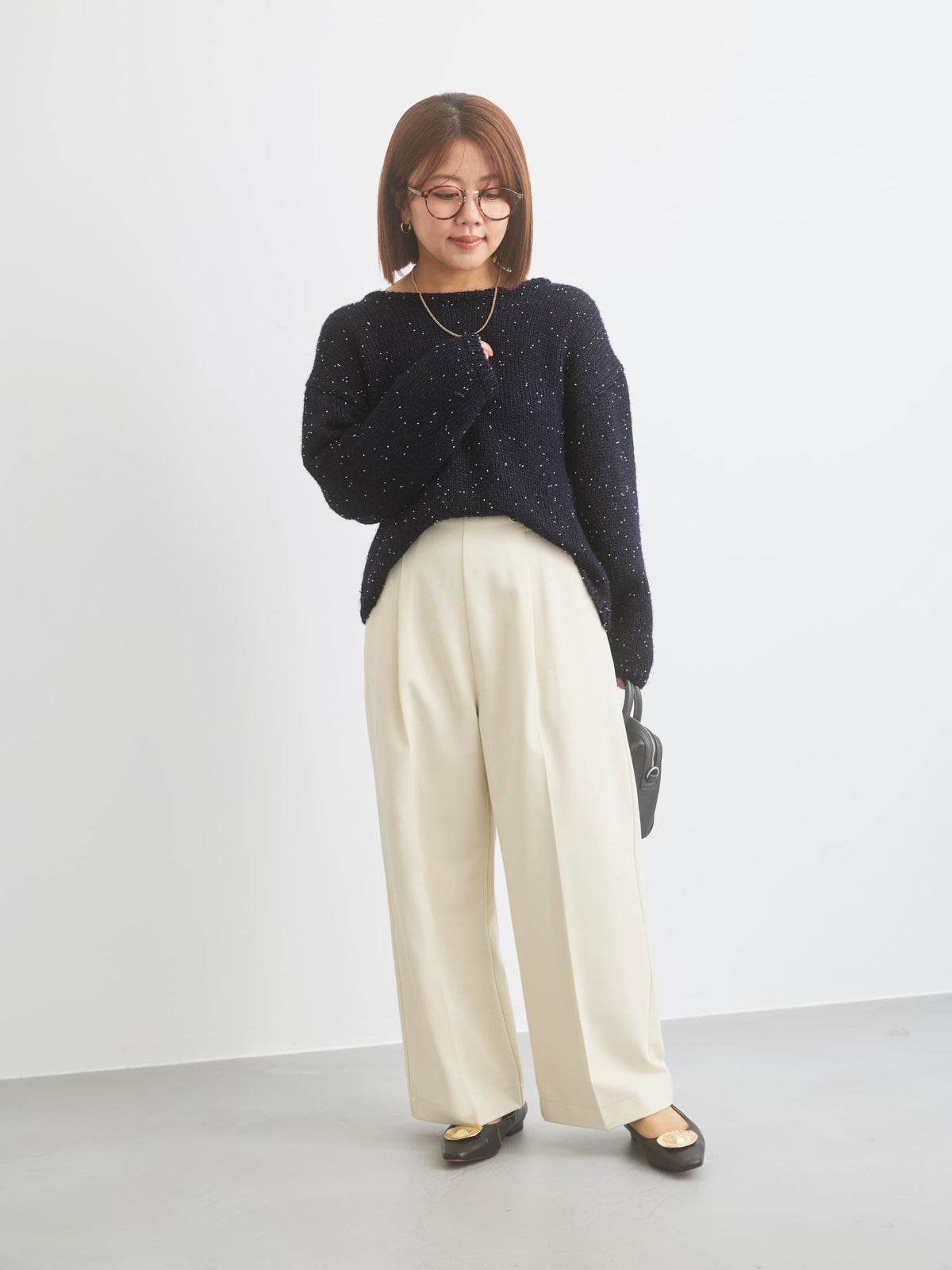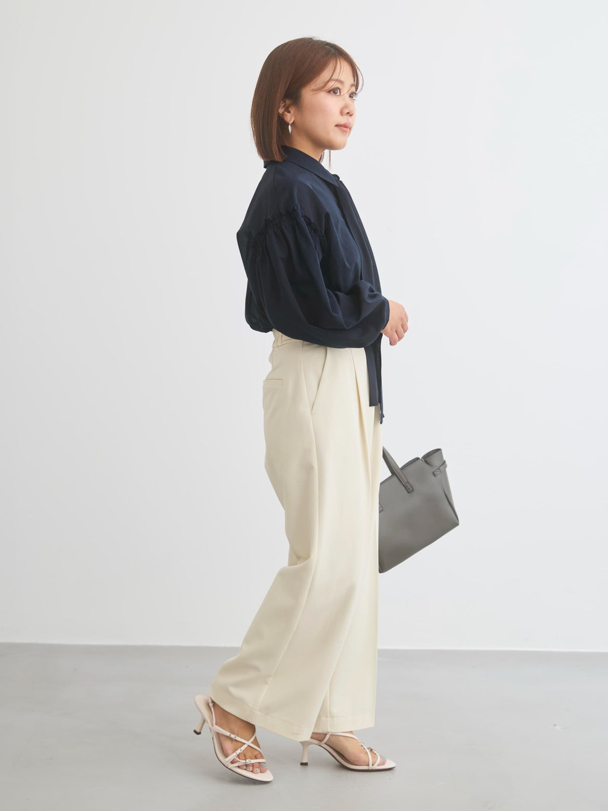 襟付きシャツやジャケットを合わせたハンサムなスタイリングから、綺麗めブラウスやハイゲージニットを合わせて品良くまとめたスタイルなど、様々な着こなしにマッチ。カジュアルなニットやカットソー合わせのデイリー使いも上品にまとまります。