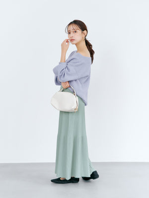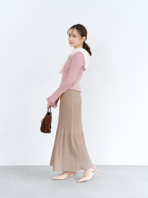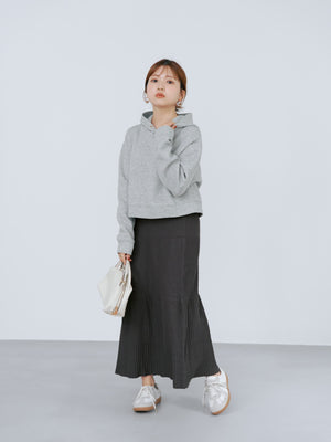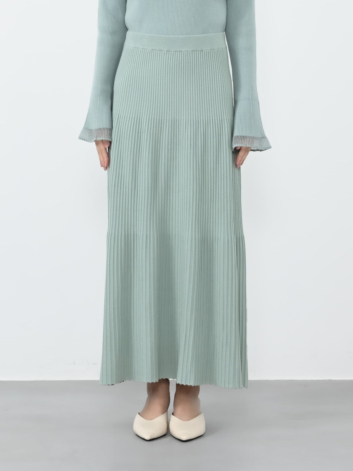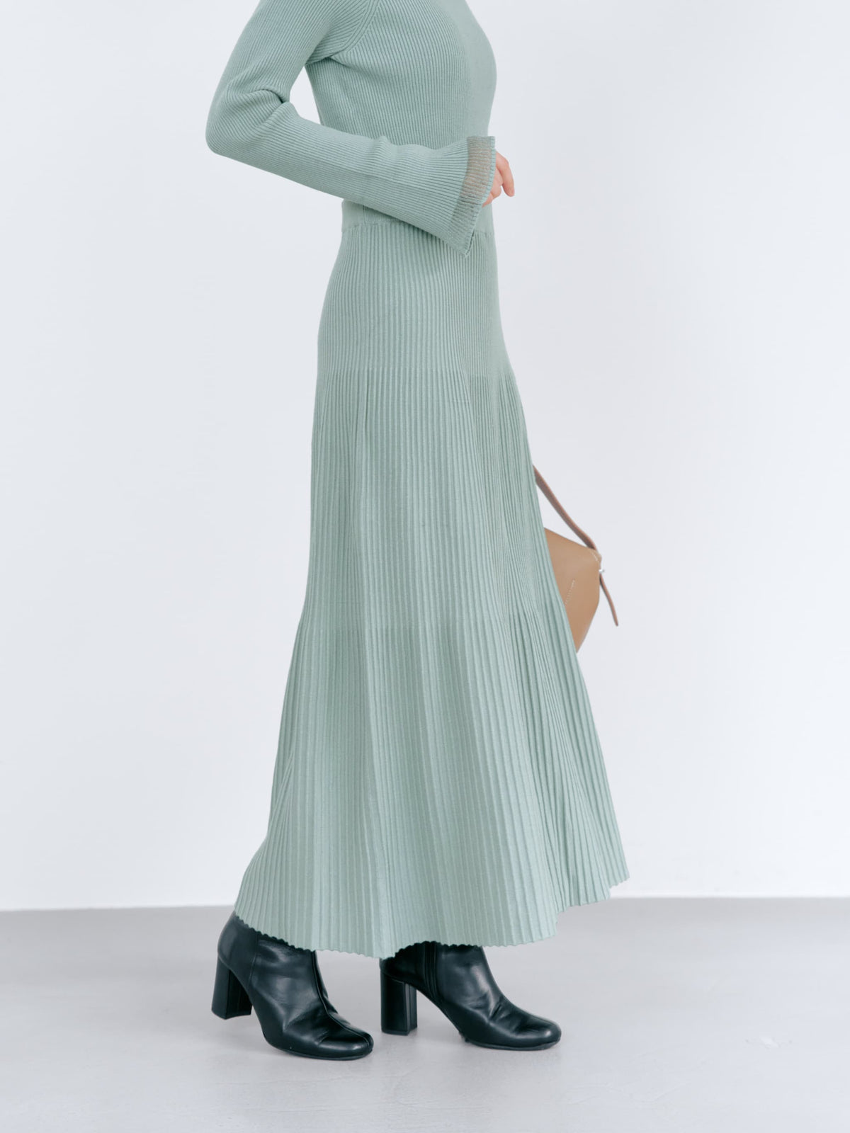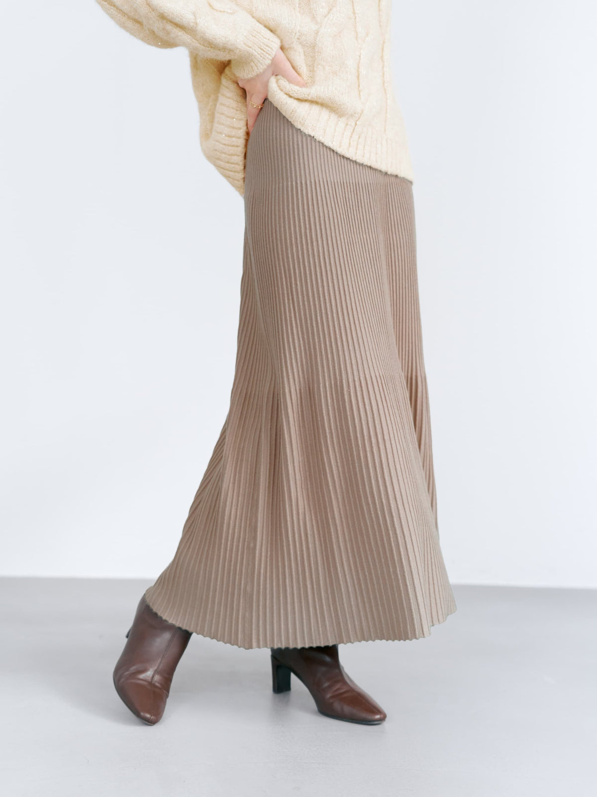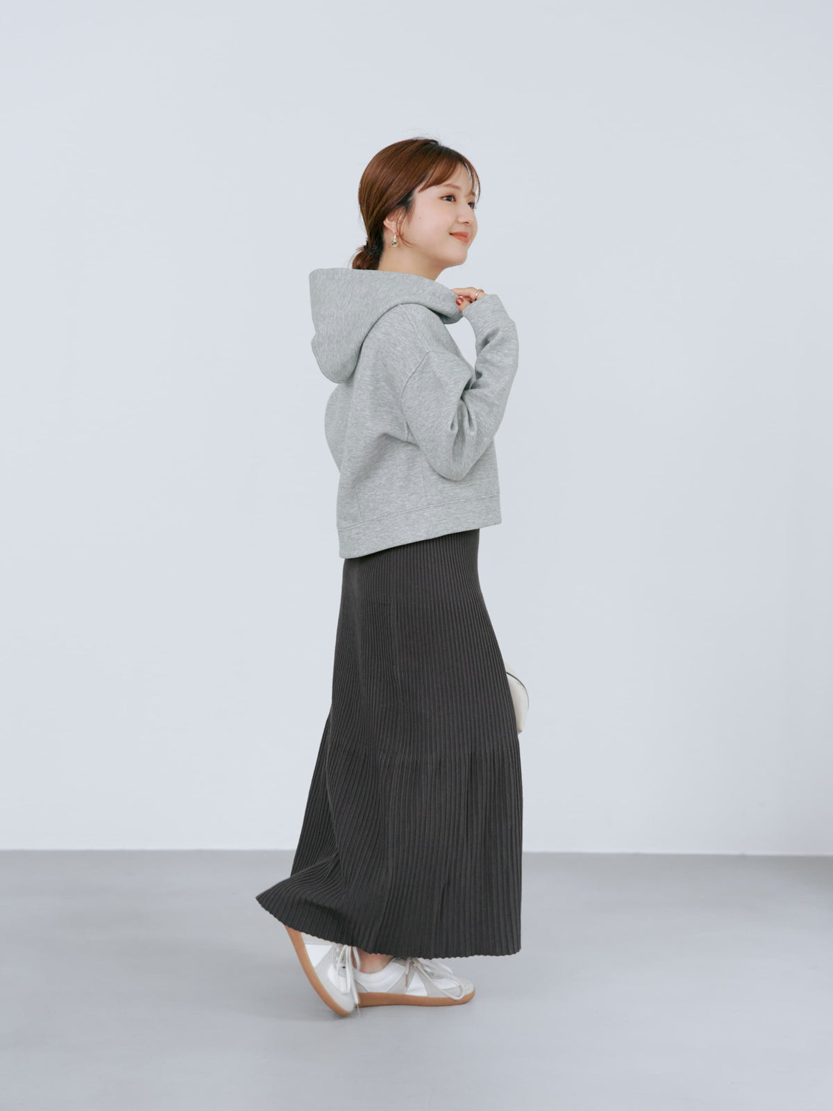 ウエストまわりはすっきりと見える細めのリブ、裾に向かって動くたびに揺れるマーメイドシルエットがさりげなく着映えします。