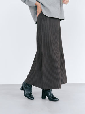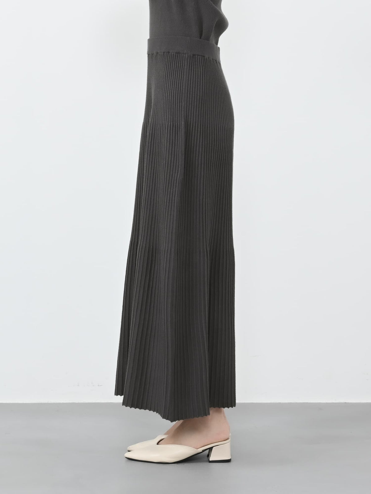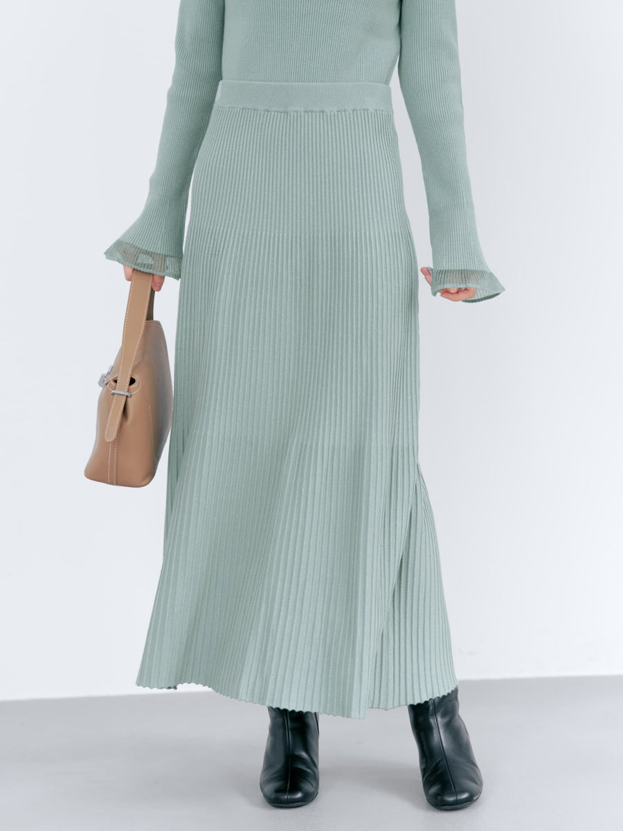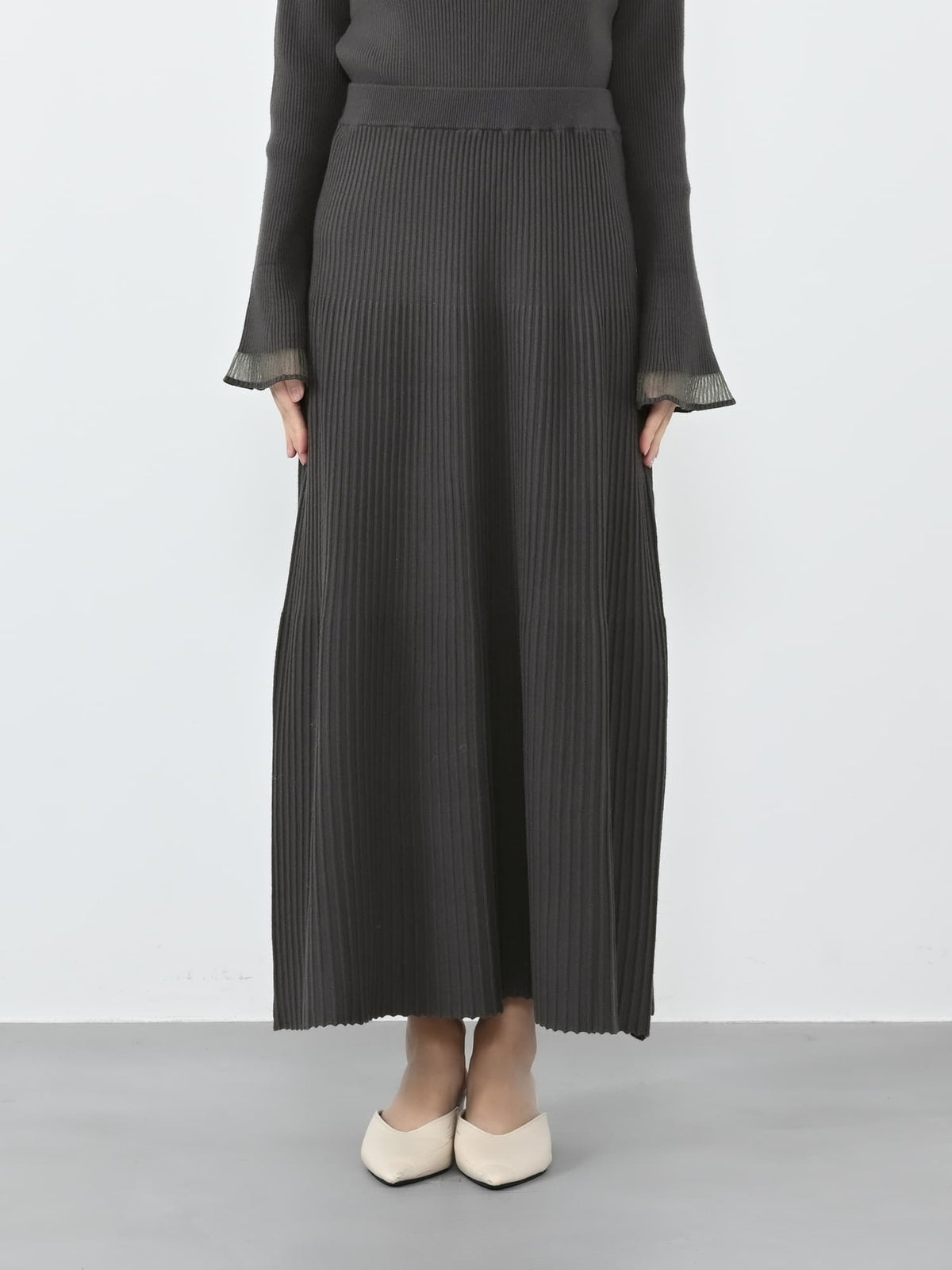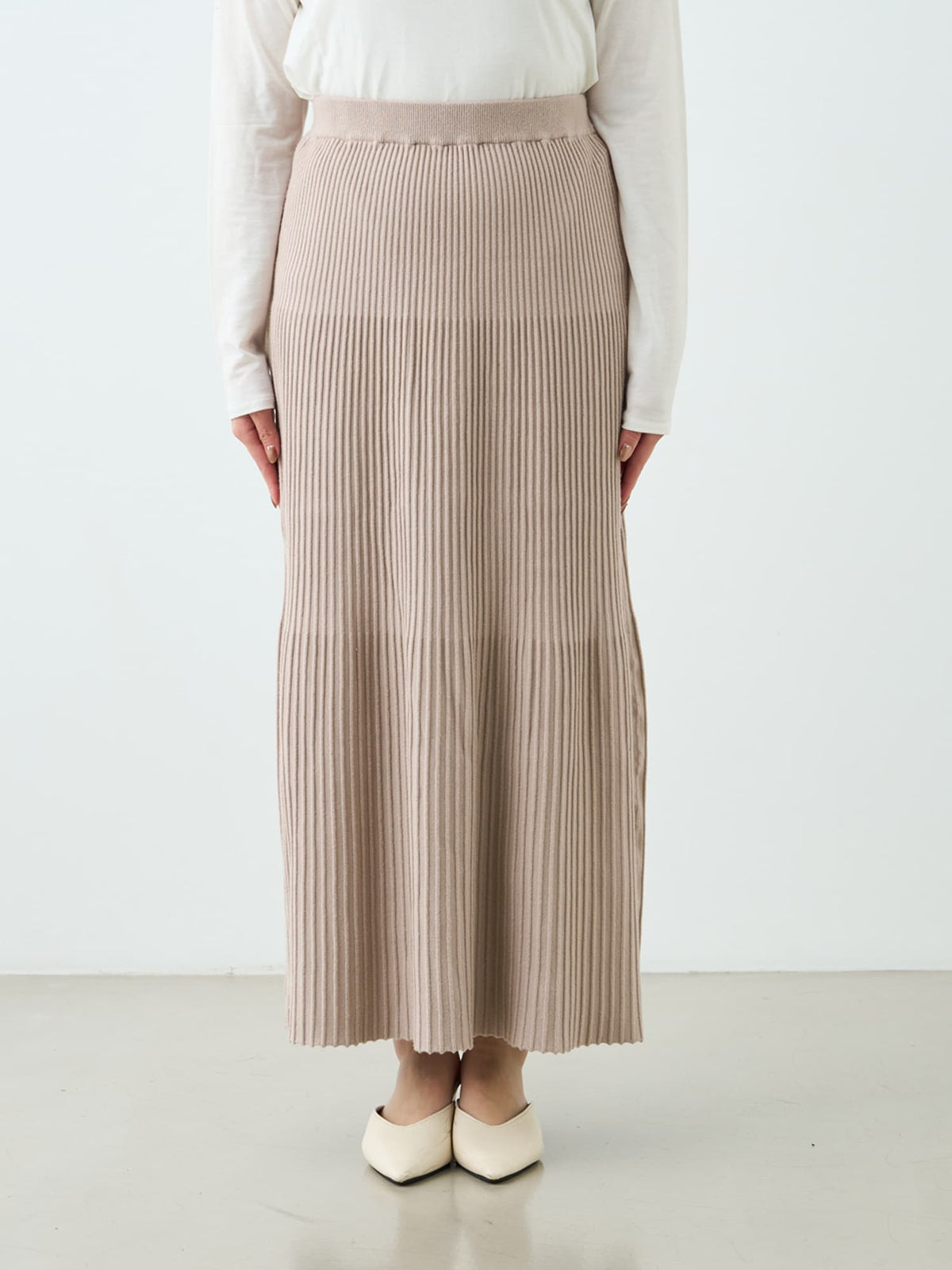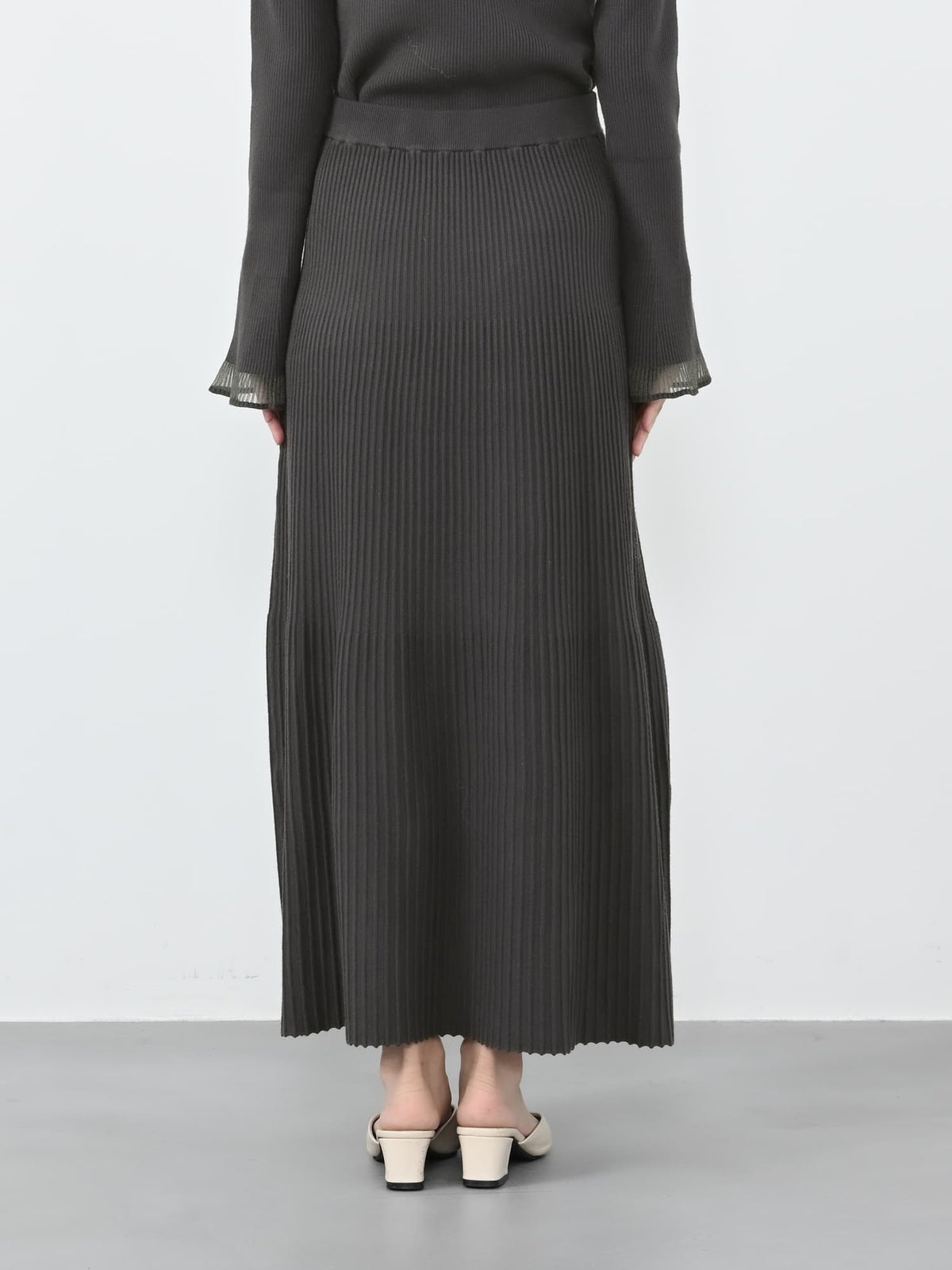 リブピッチに変化をつけた動きのある表情が魅力のニットスカート。リブの切り替えが縦のラインを綺麗に見せてくれ、大人っぽい美シルエットに仕上げました。