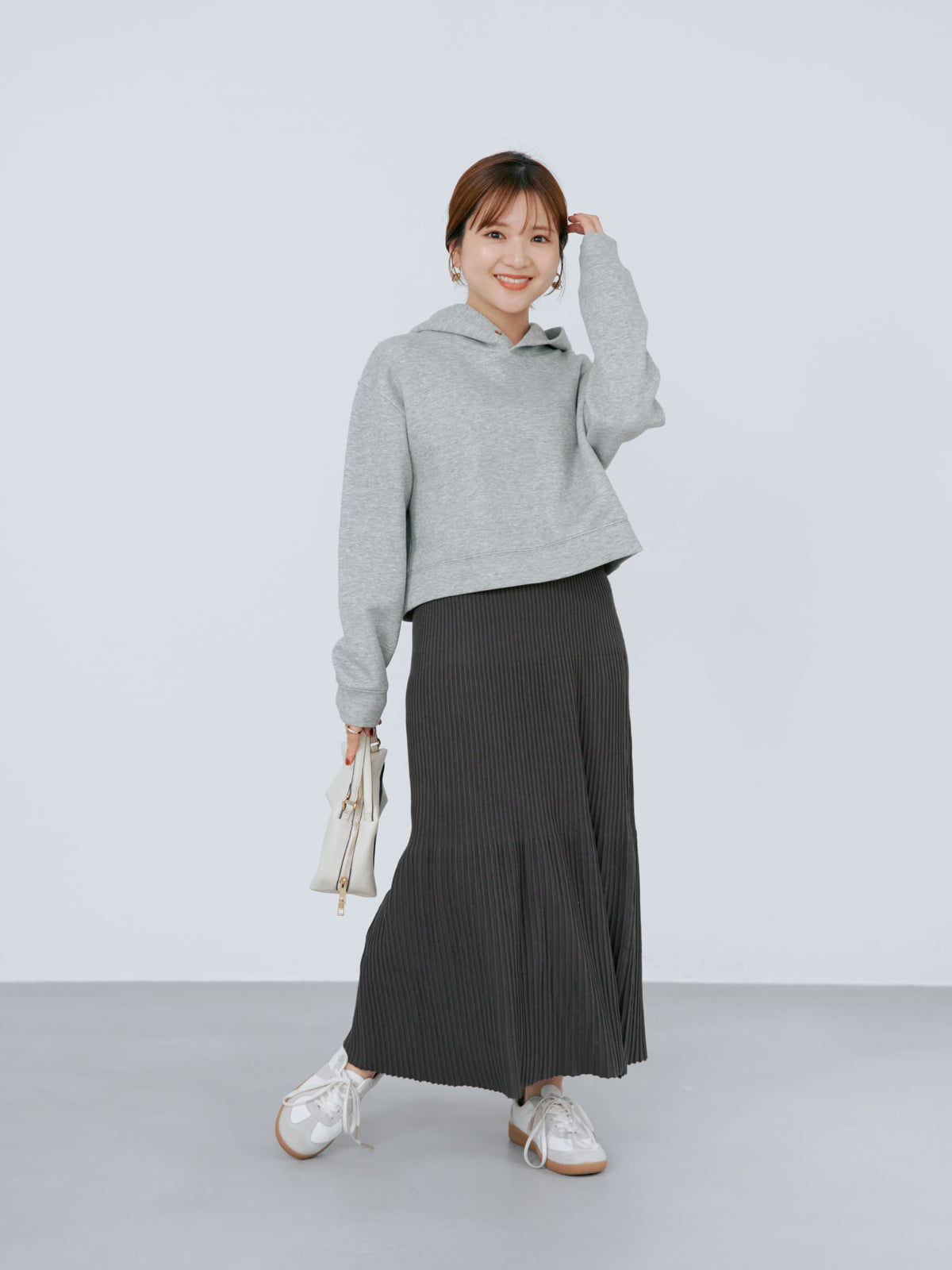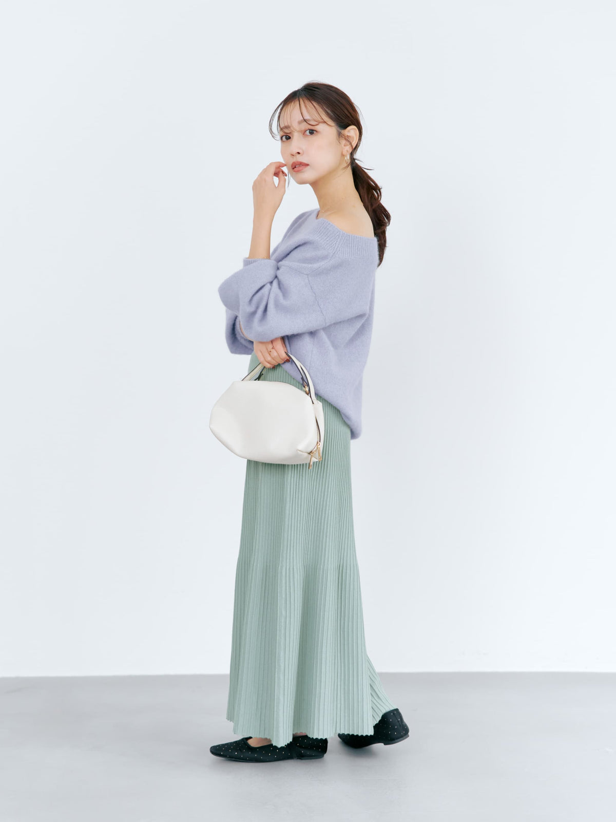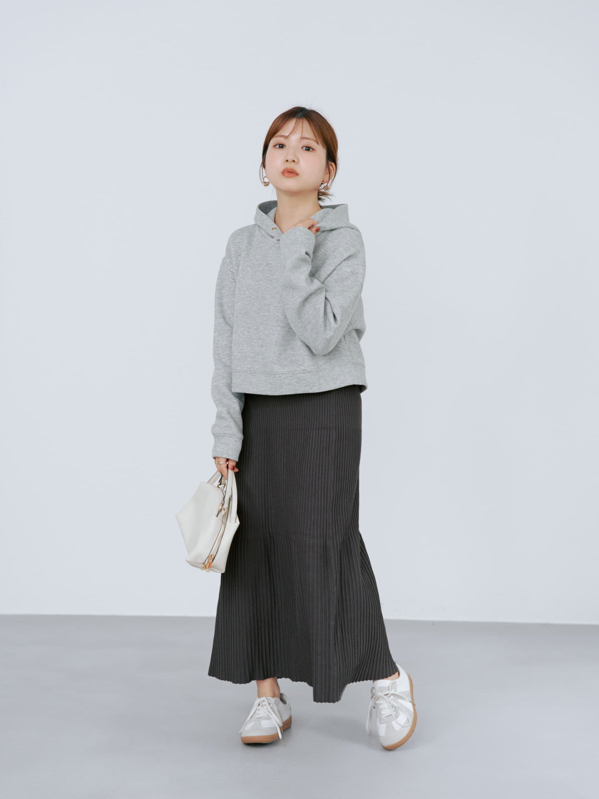 フェミニンなブラウスやふんわりとしたニットを合わせた甘めスタイルが好相性◎スウェットトップスなどカジュアルな着こなしにも馴染みます。